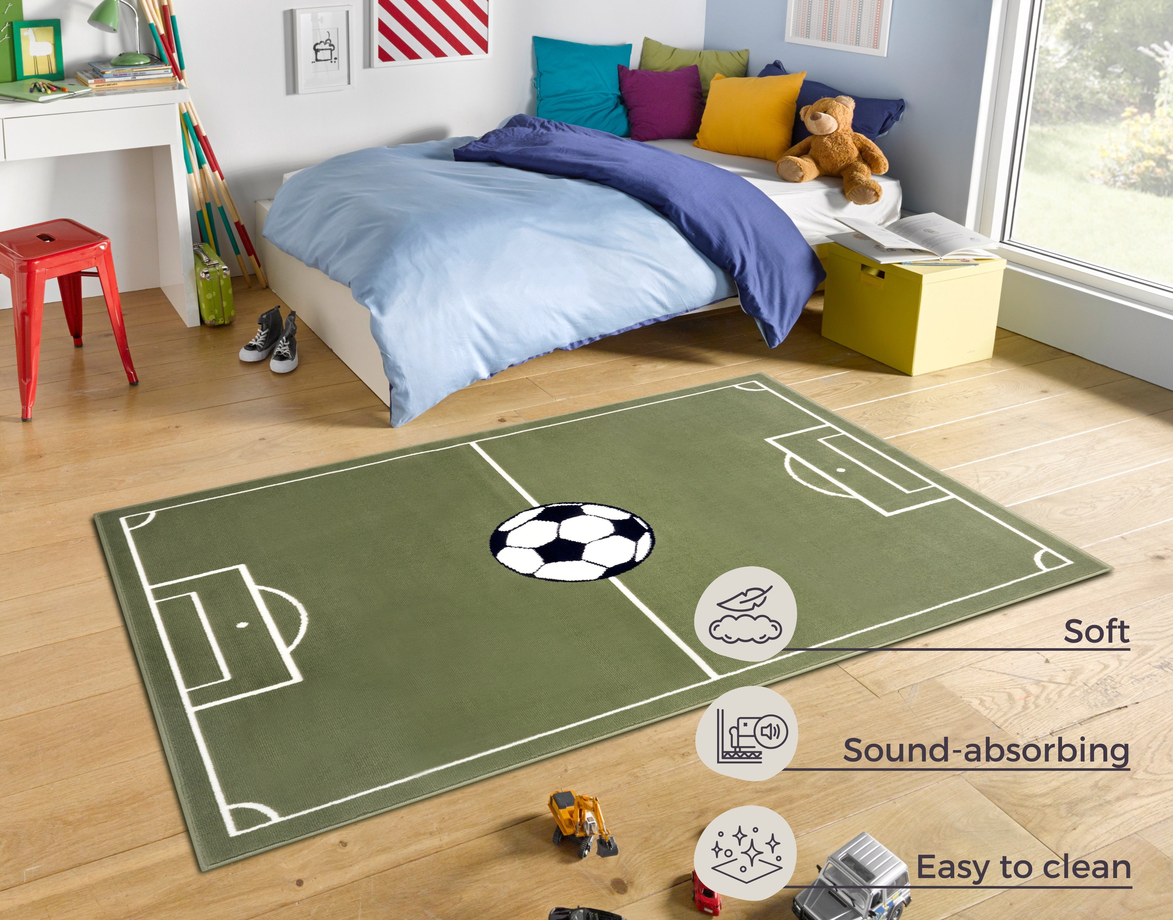 Skab et eventyrligt univers på børneværelset med det fortryllende "Adventures" tæppe fra Hanse Home i en frisk grøn farve. Dette bløde og slidstærke børnetæppe, fremstillet af 100% polypropylen, indbyder til leg og hyggelige stunder.