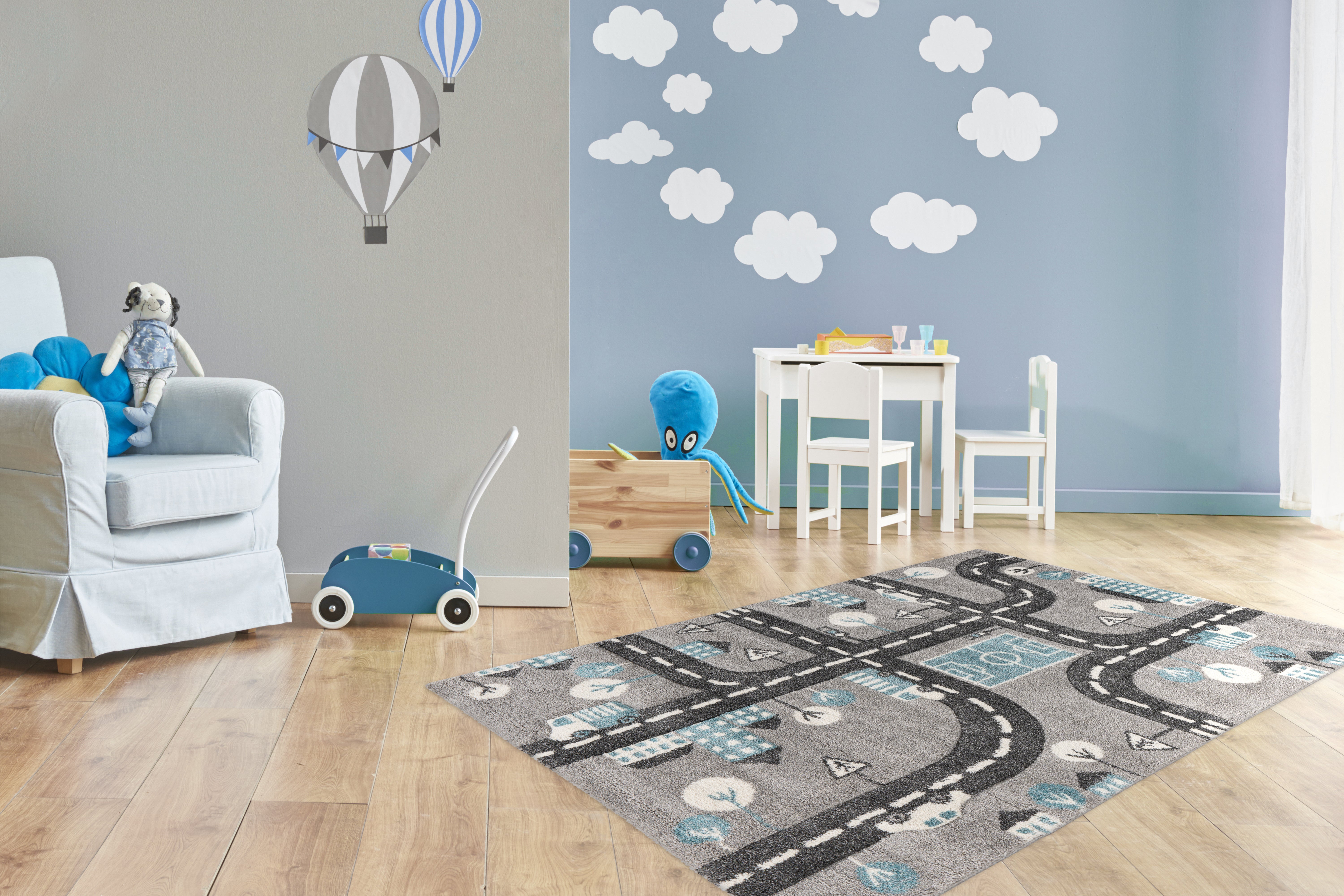 Dette attraktive børnetæppe er ideelt til nutidens børneværelse. Det legende, børnevenlige motiv og de diskrete farver gør det til den perfekte legeflade og vil lyse børnenes øjne op. Placer tæppet som en blød legeflade i dit barns værelse og nyd ikke kun dets søde udseende, men også dine børns synlige glæde. En anden stor fordel er tæppets plejevenlige materiale, som sikrer dets robuste kvalitet. Disse egenskaber er især vigtige for et tæppe i et børneværelse, da de sikrer, at tæppet kan modstå kraftig brug og snavs, og dine børn vil have glæde af deres nye gulv i lang tid.