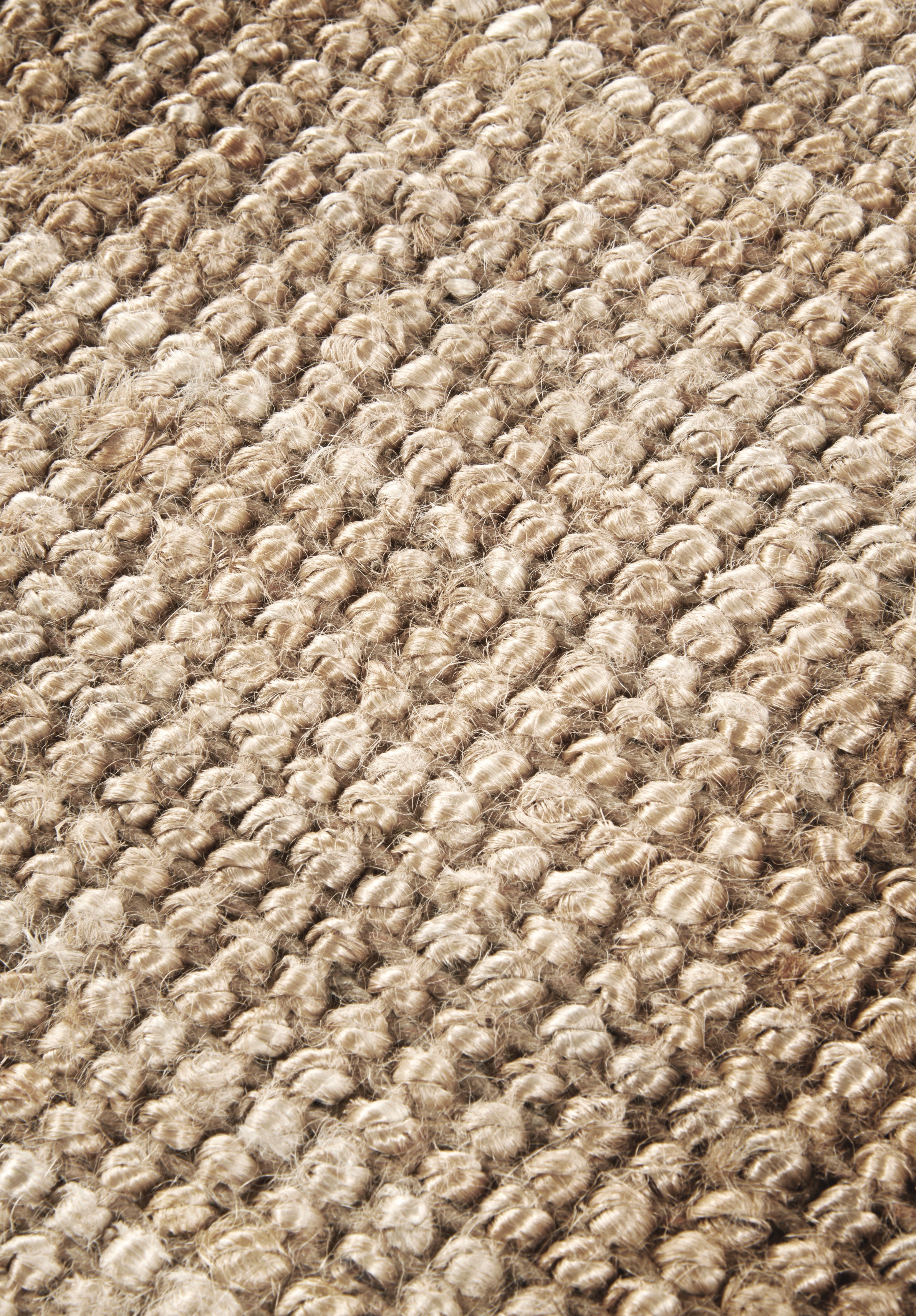 Jutens naturlige farver og den tidløse håndvævede struktur giver tæppet et unikt og sofistikeret udtryk. Den robuste jutefiber er utrolig slidstærk og nem at rengøre, hvilket gør tæppet perfekt til hverdagsbrug. Bagsiden er ligeledes fremstillet af 100% jute, hvilket bidrager til tæppets holdbarhed og stabilitet. Den håndvævede kantafslutning (handwoven) tilføjer et autentisk touch og understreger tæppets unikke karakter. Da tæppet er fremstillet af naturmaterialer, er hvert eksemplar unikt i sin farvesammensætning, hvilket giver dig et helt særligt stykke kunsthåndværk til dit hjem.