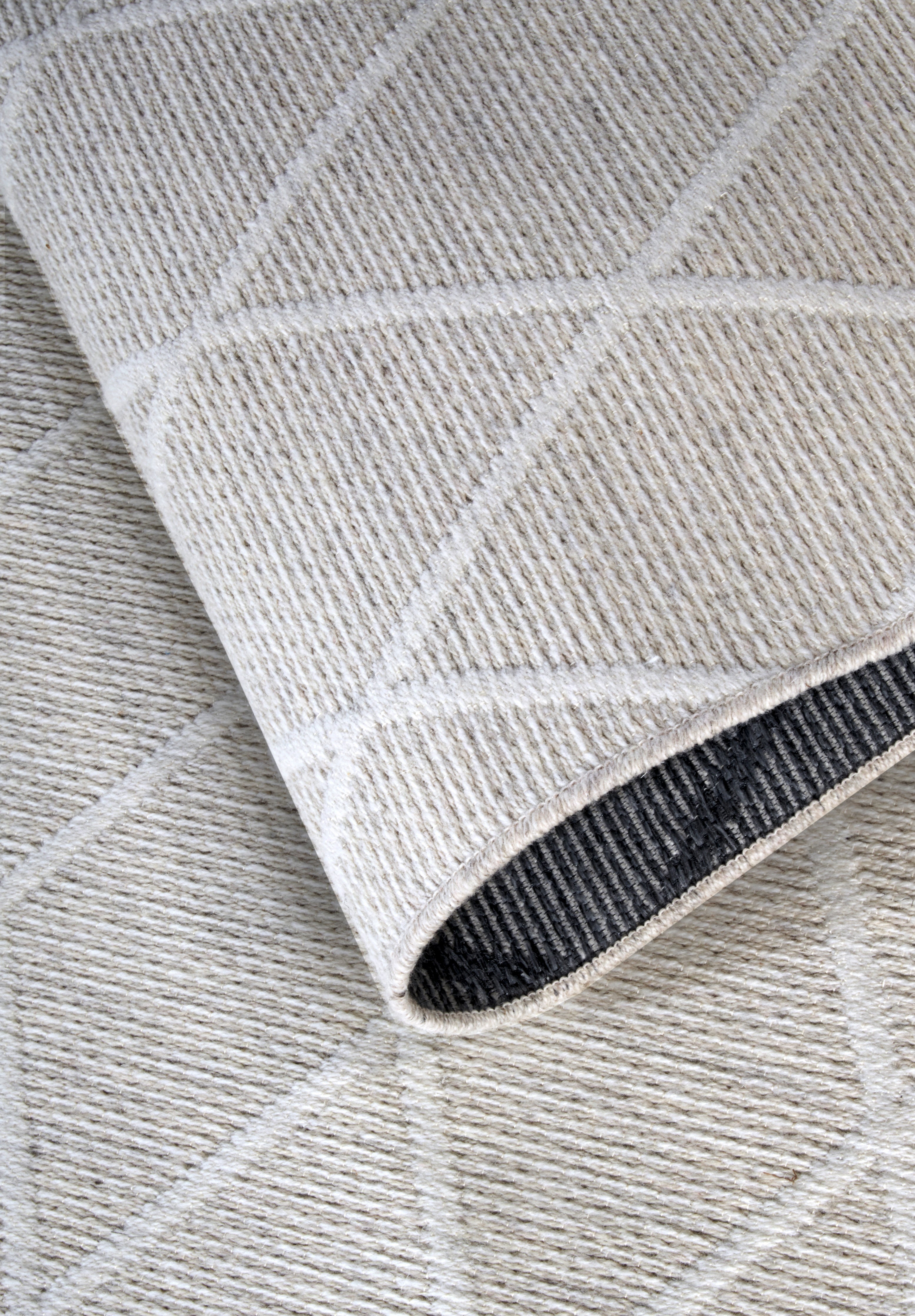 Dette tæppe er ikke kun smukt, men også praktisk og holdbart. Bagsiden, bestående af en blanding af polyester og polypropylen (51.4% polyester, 48.6% PP), giver tæppet stabilitet og forhindrer det i at glide. Den naturlige uld er robust og nem at vedligeholde, samtidig med at den er velegnet til gulvvarme. Hvert tæppe er unikt i sin farvesammensætning takket være de naturlige materialer, hvilket tilføjer et autentisk præg til dit hjem. Den europæiske produktion garanterer høj kvalitet og bæredygtighed.