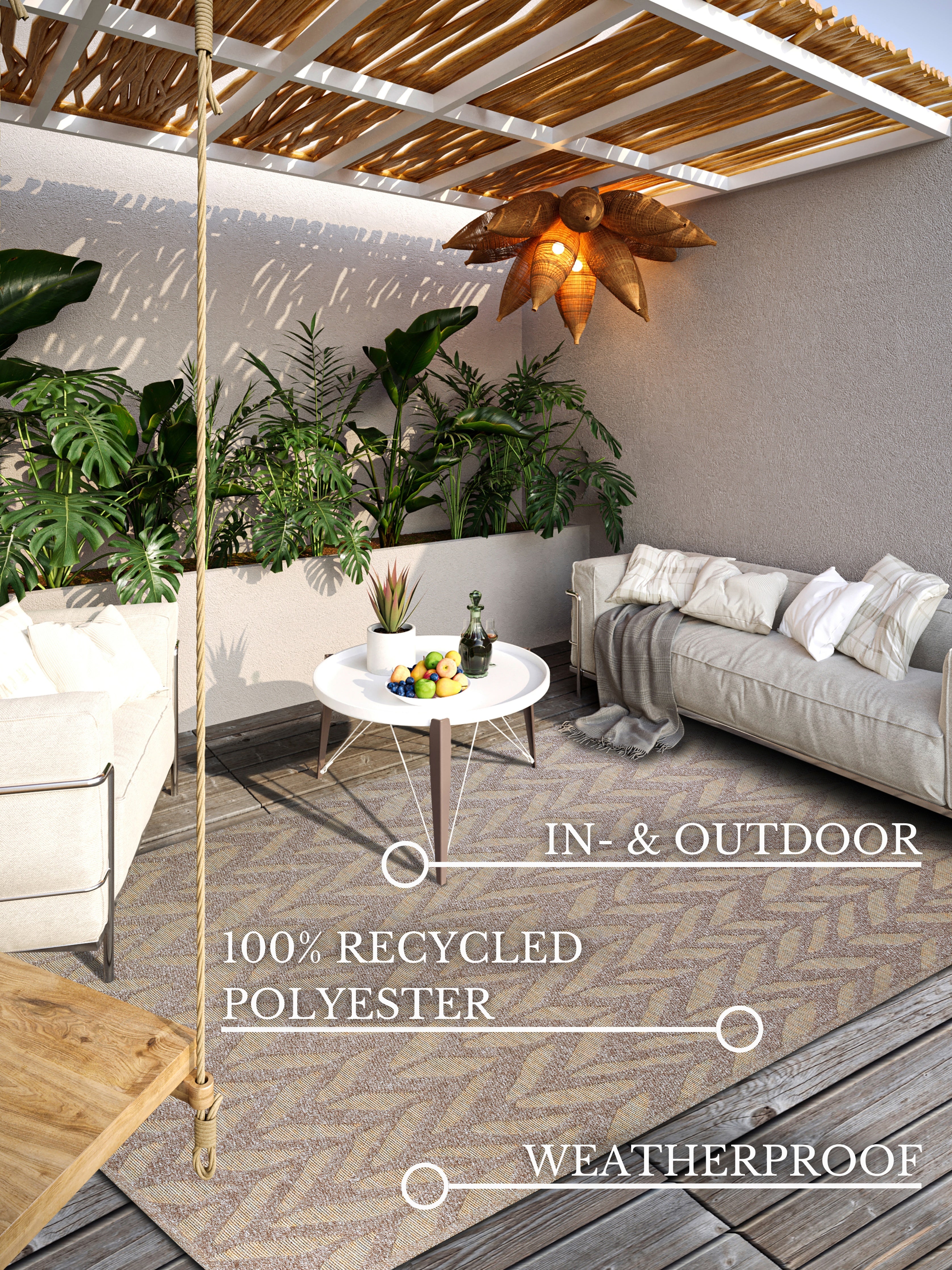 Forkæl dit hjem med den tidløse elegance fra Villeroy & Boch. Dette smukke inde- og udendørstæppe fra Kollektion 1883 i en varm beige farve er fremstillet af 100% genanvendt polyester, der giver en blød struktur og et moderne, geometrisk design, som vil tiltrække beundrende blikke, uanset om det pryder din stue eller terrasse.