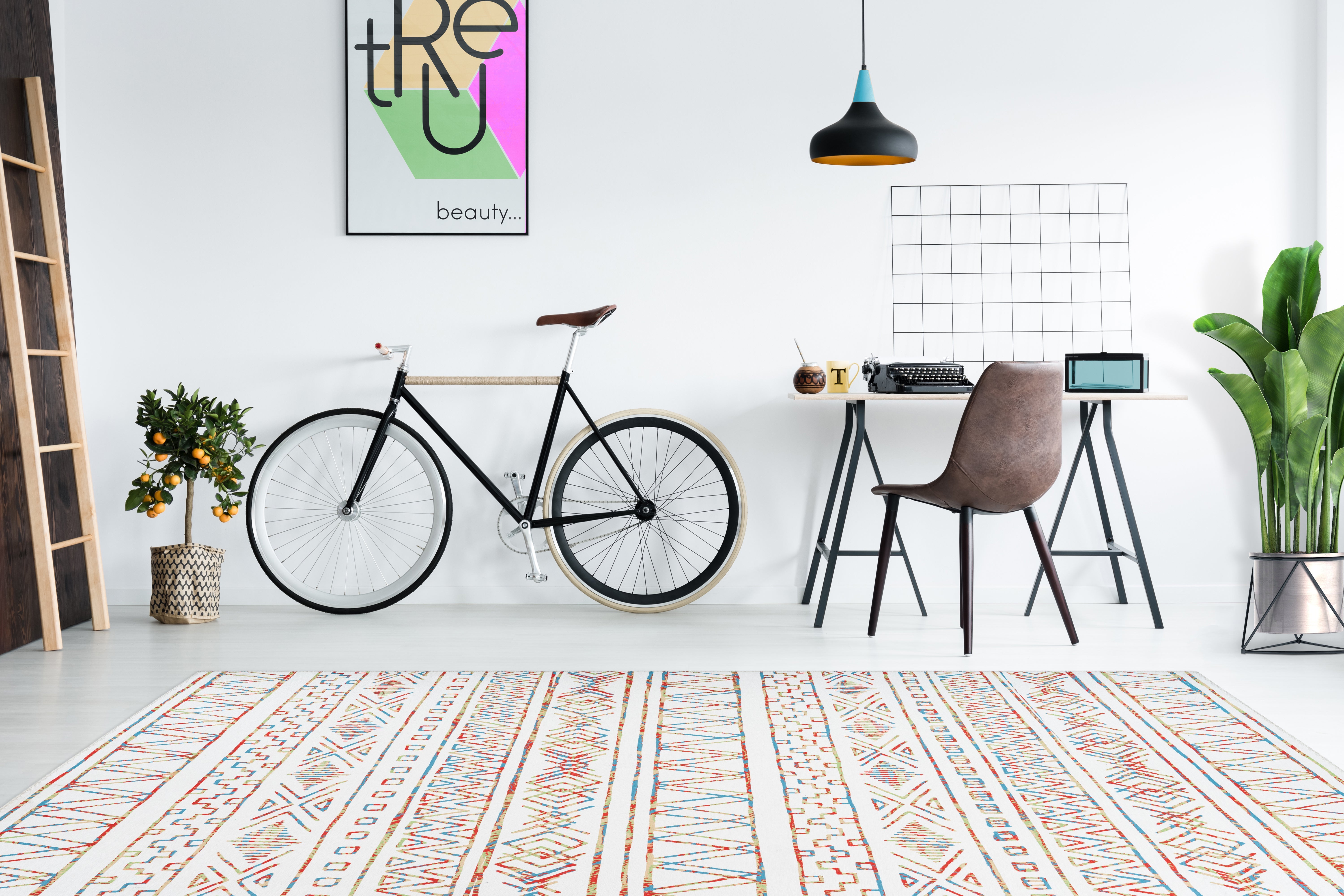 Galaxy fladvævet tæppe er et sandt blikfang med vintage-charme. Farvetoner og en harmonisk kombination af koordinerede farver gør dette tæppe til en drømmegulvbelægning. Denne tæppemodel er særligt velegnet til moderne og neutrale indretningsstile. Det er også et værdifuldt supplement til mere klassisk inspirerede interiører. Vintage-karakteren kan yderligere forstærkes ved at kombinere den med andre detaljer i vintage-stil. Det letplejede, fladvævede materiale holder længe, selv ved hyppig brug. Tæppet kan også placeres i rum med gulvvarme. En filtbagside forstærker luven og beskytter samtidig gulvet.