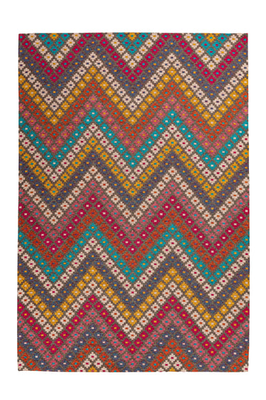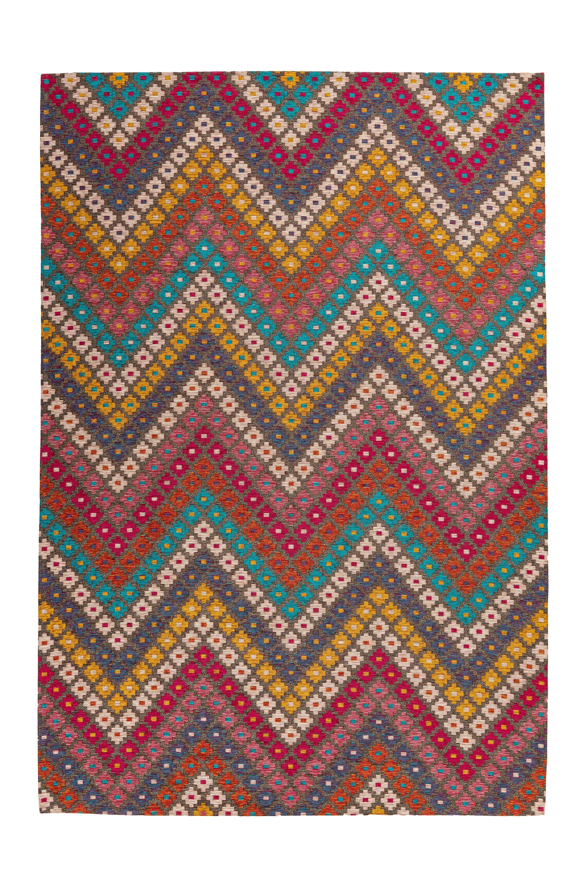 Dette lavluvede tæppe imponerer med sit farverige og moderne design. Giv dit hjem et unikt look, der vil forbløffe gæster i mange år fremover. De moderigtige mønstre og farver forbedrer enhver indretningsstil yderligere og fungerer som et farverigt blikfang. Forstærk farvernes intensitet med puder eller andre dekorationer. De anvendte materialer sikrer, at du kan nyde dit nye tæppe i lang tid, og den flade luv gør dit farverige yndlingsmøbel nemt at pleje. Desuden imponerer dette farverige tæppe med sin lette vægt, hvilket gør det nemt at flytte og fremvise. Selv i en lejlighed med gulvvarme kan du nyde dette farverige dekorative stykke. Ændring af lysvinklen eller luvens retning kan forårsage ændringer i farvenuancerne, men det vil stadig forblive smukt levende og farverigt.