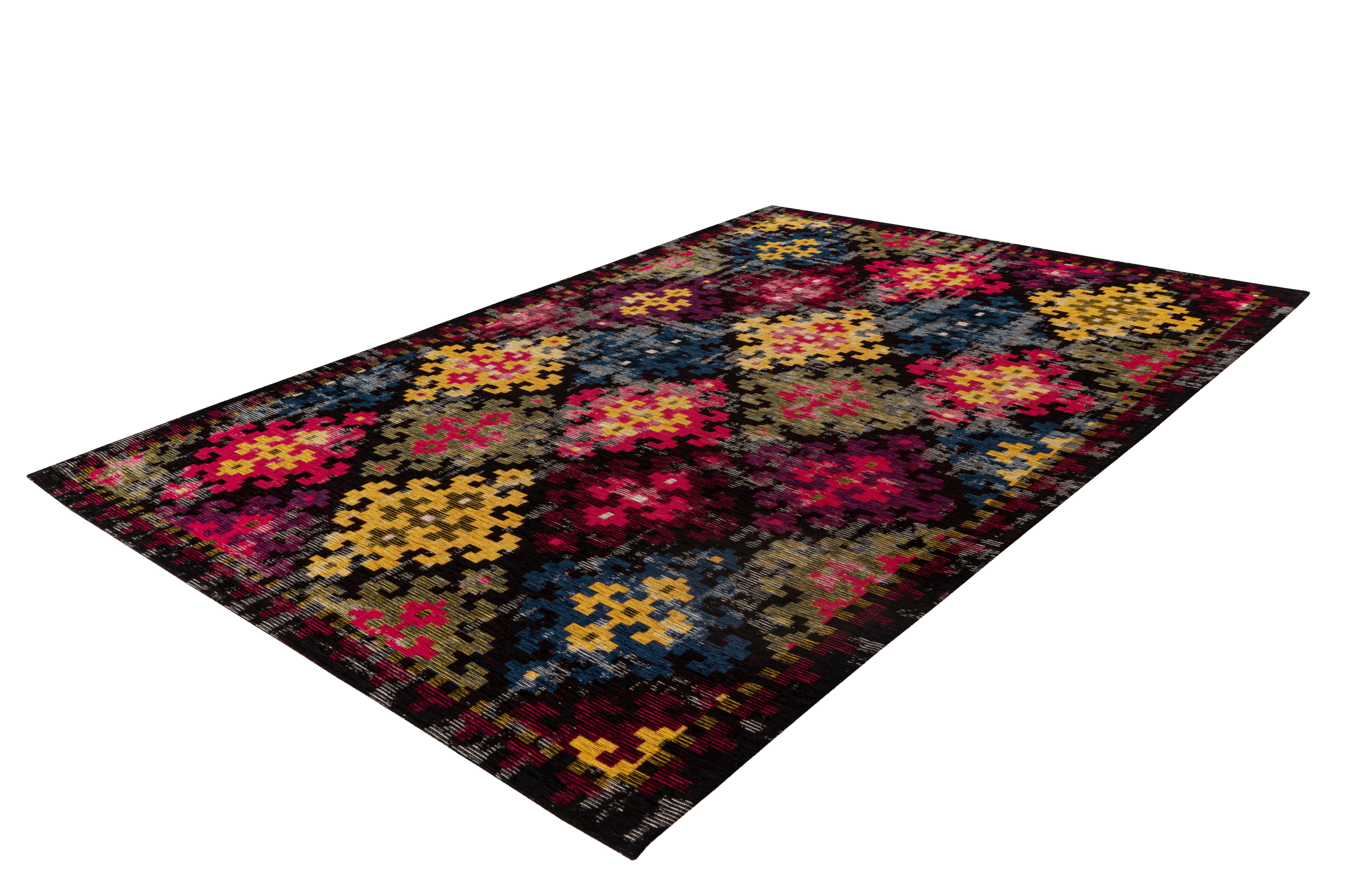 Dette lavluvede tæppe imponerer med sit farverige og moderne design. Giv dit hjem et unikt look, der vil forbløffe gæster i mange år fremover. De moderigtige mønstre og farver forbedrer enhver indretningsstil yderligere og fungerer som et farverigt blikfang. Forstærk farvernes intensitet med puder eller andre dekorationer. De anvendte materialer sikrer, at du kan nyde dit nye tæppe i lang tid, og den flade luv gør dit farverige yndlingsmøbel nemt at pleje. Desuden imponerer dette farverige tæppe med sin lette vægt, hvilket gør det nemt at flytte og fremvise. Selv i en lejlighed med gulvvarme kan du nyde dette farverige dekorative stykke. Ændring af lysvinklen eller luvens retning kan forårsage ændringer i farvenuancerne, men det vil stadig forblive smukt levende og farverigt.