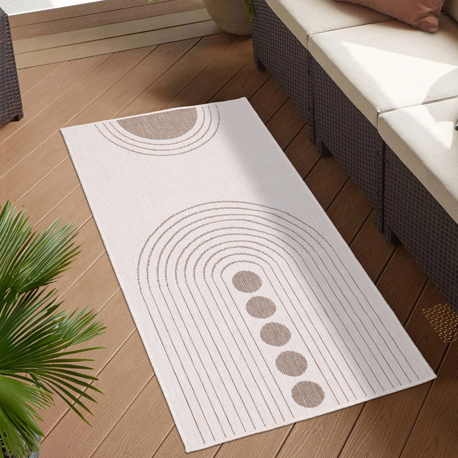 Med sine vejrbestandige egenskaber kan det fladvævede tæppe modstå en lang række vejrforhold som sol og regn. Uanset om det er på terrassen, altanen, i haven eller ved poolen - "DuoRug"-tæppet giver udendørsområdet et strejf af hygge og charme.