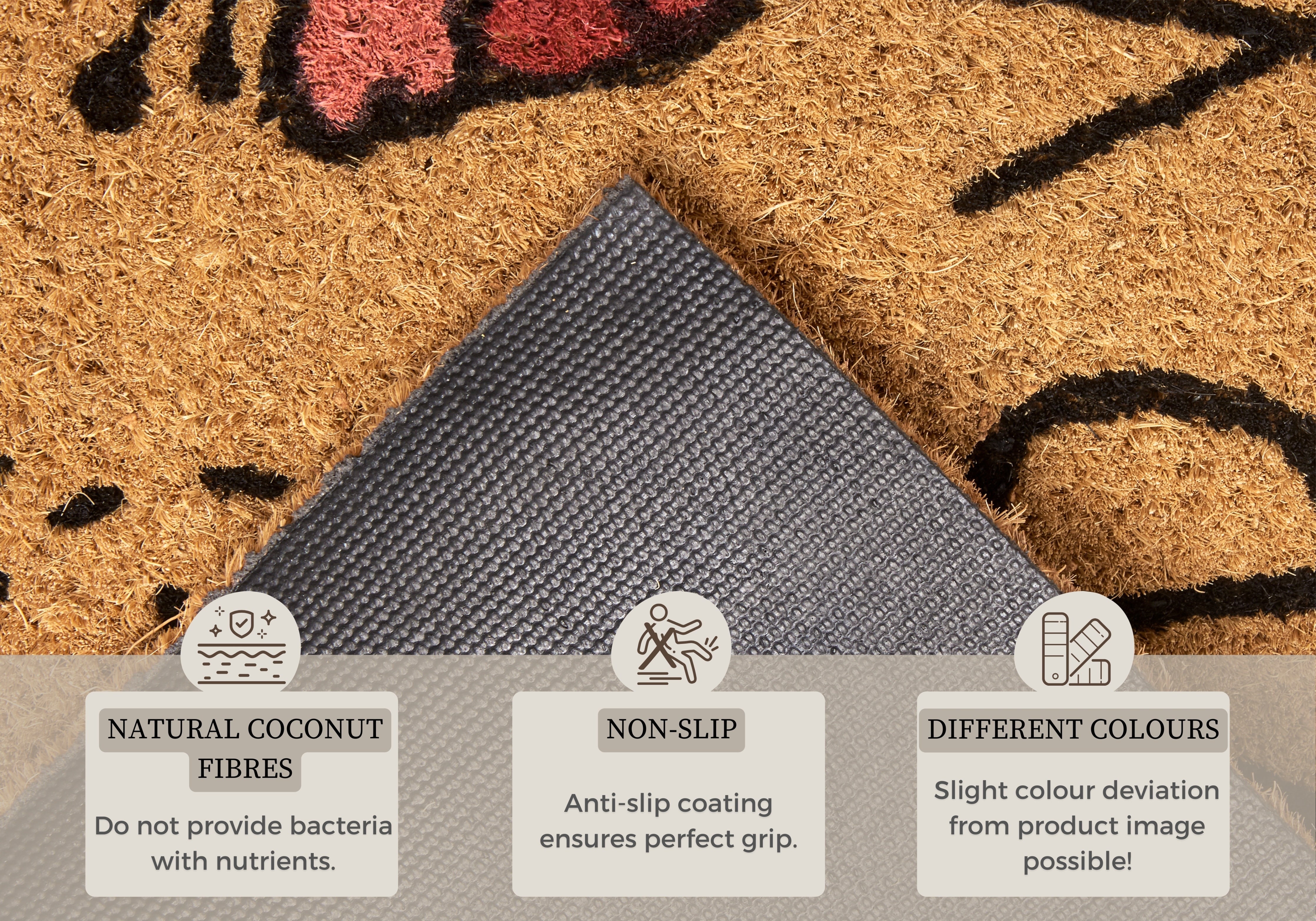 Kokosmåttens naturlige kokosfibre er ikke blot smukke, de er også utroligt praktiske. Fibrene giver ikke næring til bakterier, hvilket betyder, at både snavs og bakterier forbliver på måtten og ikke transporteres ind i din bolig. Den skridsikre PVC-bagside sikrer, at måtten ligger stabilt, selv på glat underlag, og den er nem at rengøre. Kokosmåtten er velegnet til både indendørs og beskyttet udendørs brug, så den kan placeres i entréen, på terrassen eller altanen.