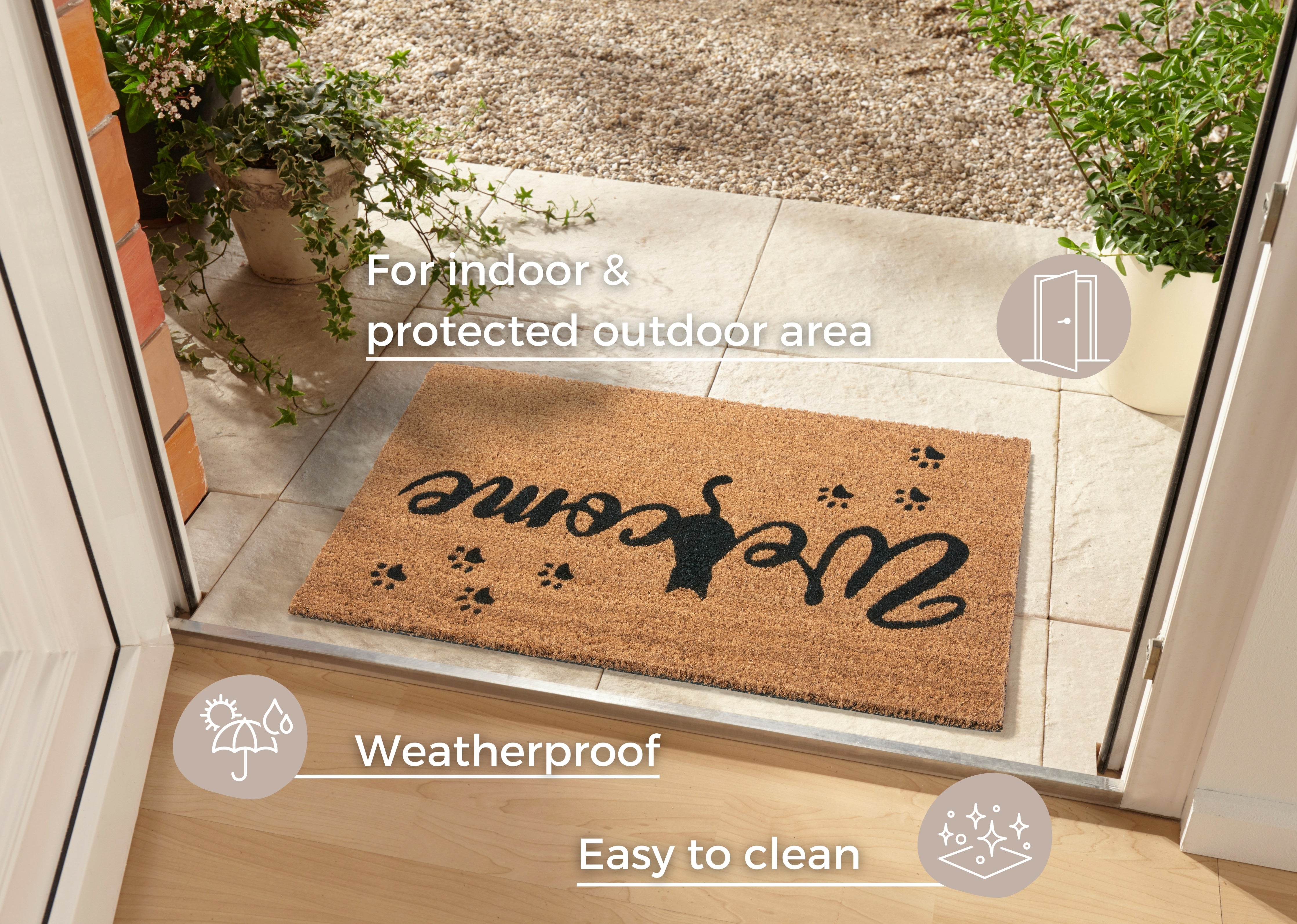 Kokosmåttens luvhøjde på 1,5 mm giver en behagelig og robust følelse under fødderne. For at bevare måttens flotte udseende anbefales rengøring med tæpperens.