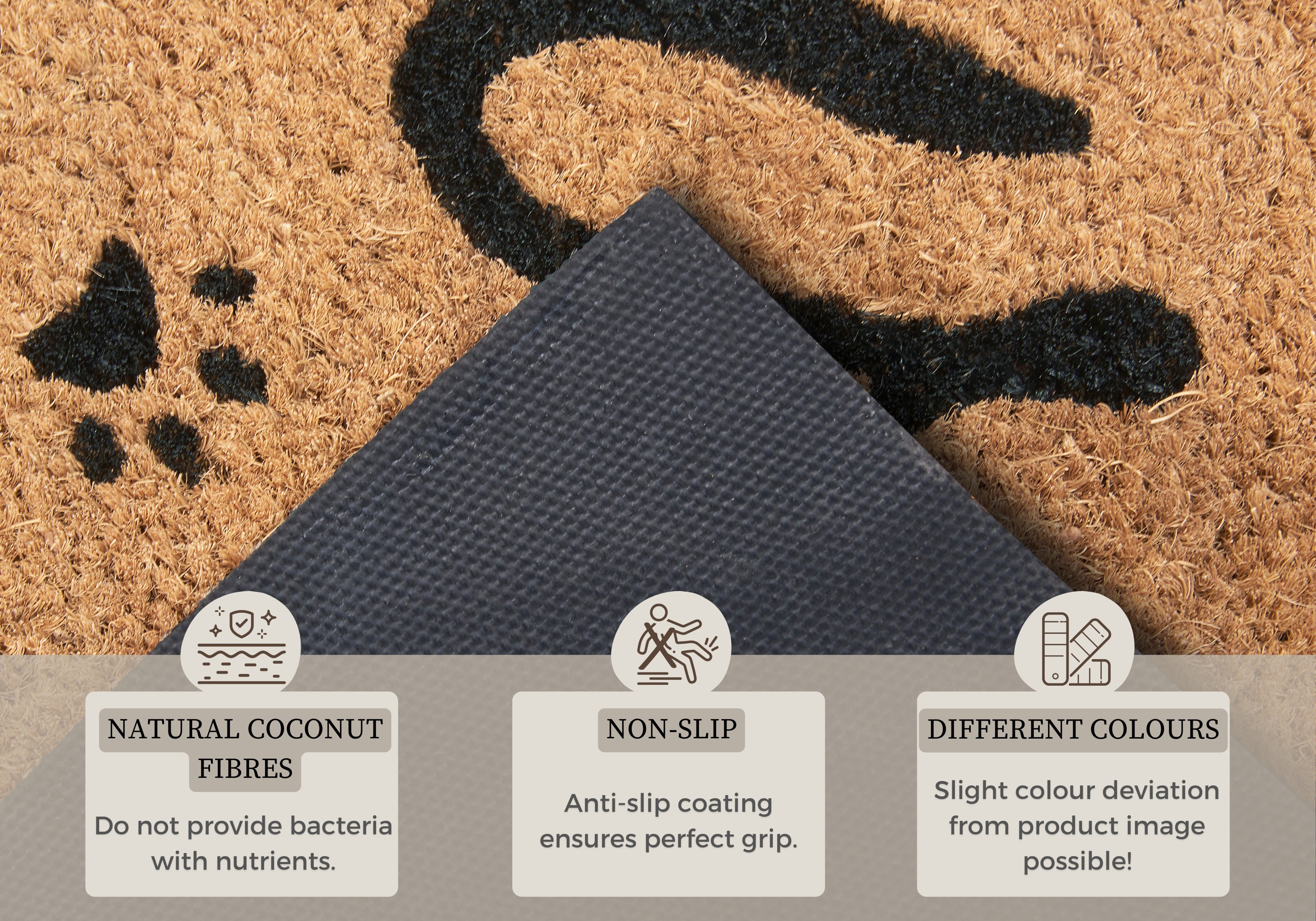 Kokosfibrene er ikke blot æstetisk tiltalende, de er også utroligt praktiske. De naturlige fibre giver en skridsikker overflade takket være bagsiden af 100% latex, så du kan føle dig tryg ved indgangen. Kokosfibrene er desuden naturligt resistente over for bakterier og snavs, hvilket betyder, at urenheder forbliver på måtten og ikke transporteres ind i din bolig. Dette gør den nem at holde ren og ideel til at fange snavs og skidt fra skoene. Den er velegnet til både indendørs og beskyttet udendørs brug.