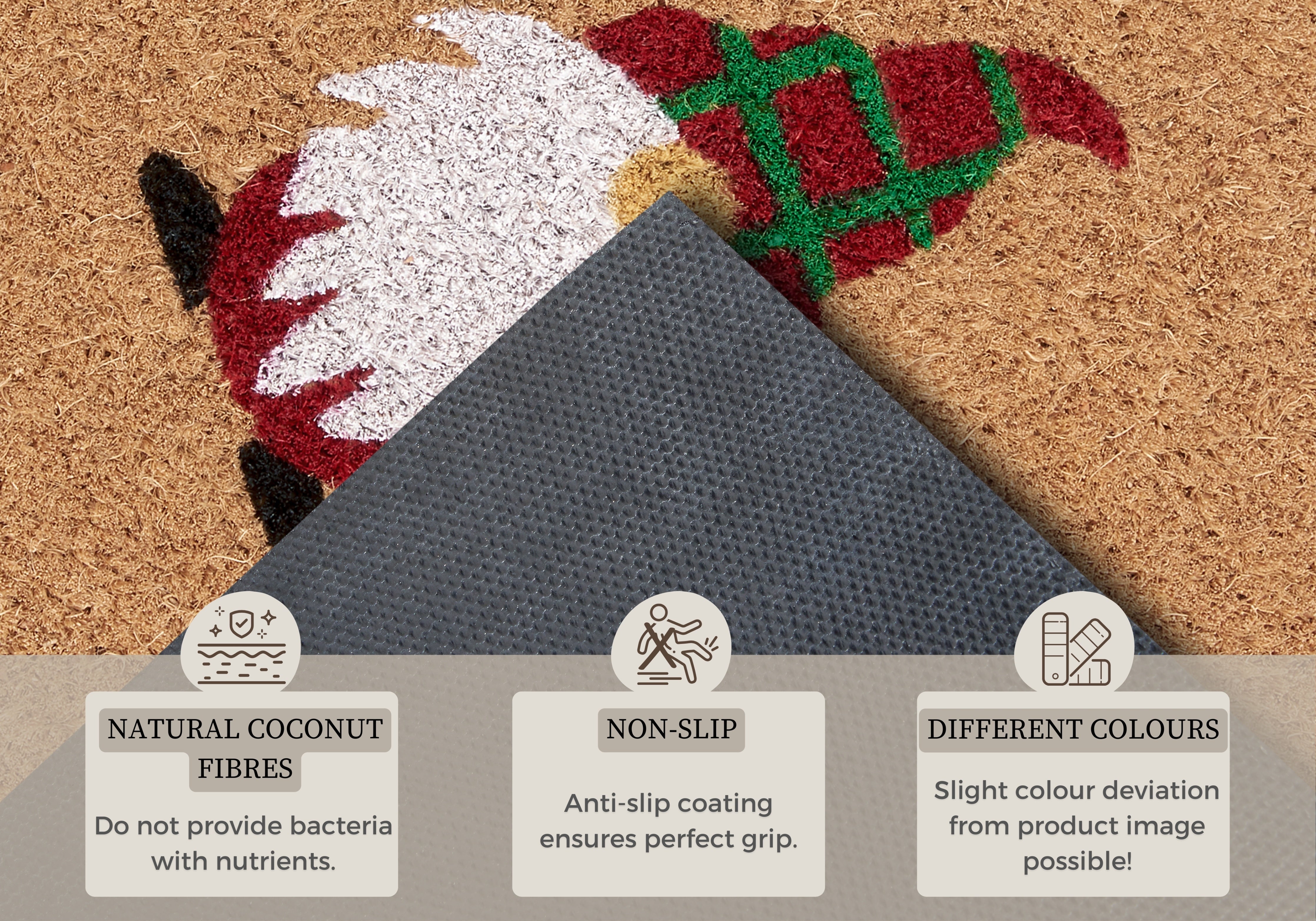 Kokosfibrene er ikke blot æstetisk tiltalende, de har også den fantastiske egenskab, at de ikke giver næring til bakterier. Dette betyder, at bakterier og snavs forbliver på måtten og ikke transporteres ind i boligen. Måtten er velegnet til både indendørs og beskyttet udendørs brug, og den skridsikre bagside af 100% PVC sørger for, at den ligger stabilt på plads. Den er let at rengøre, hvilket gør den til et praktisk valg for en travl hverdag.