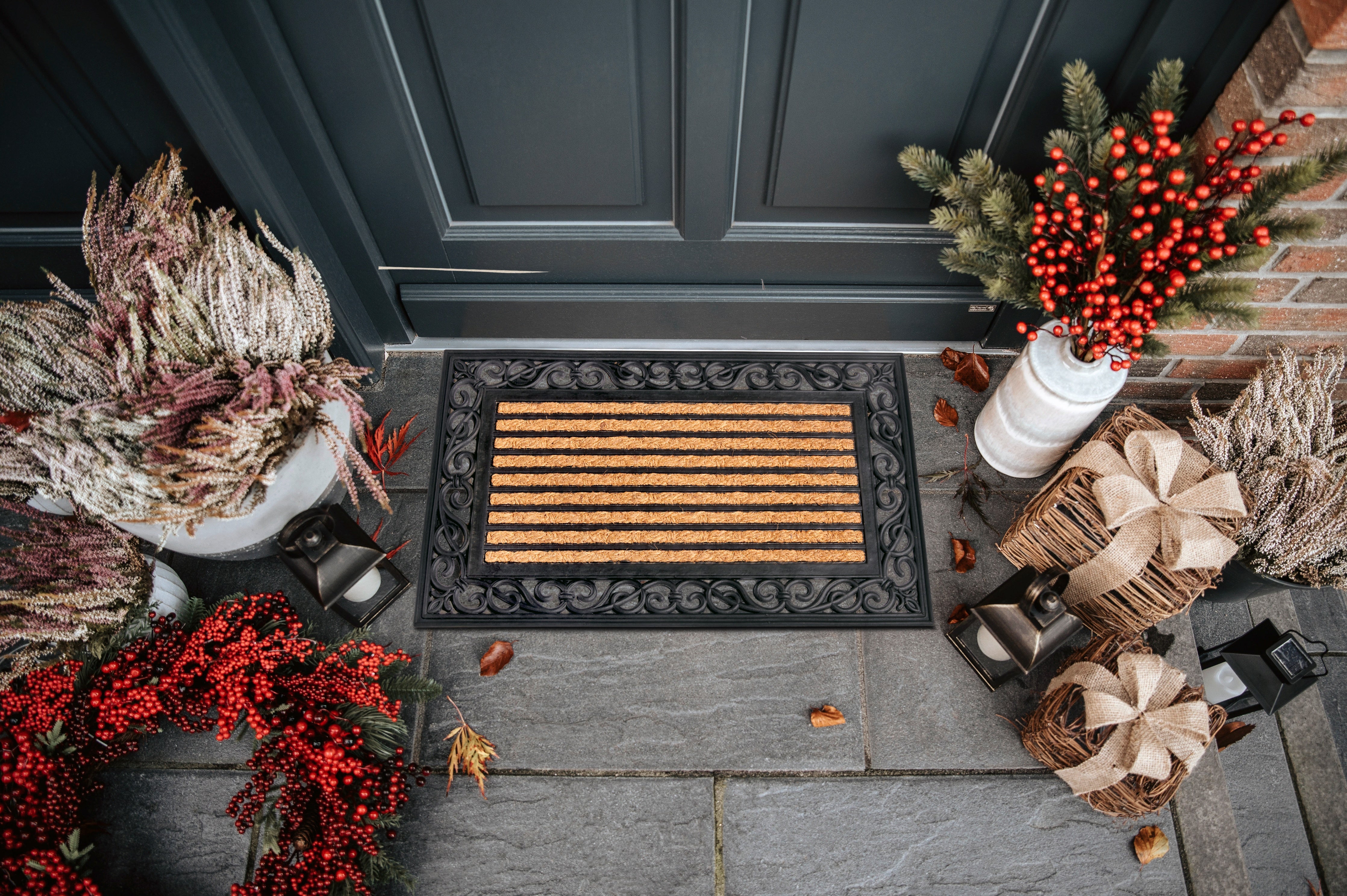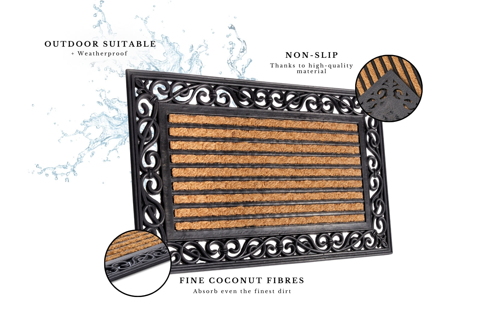 Kokos Måtte - Mix Mats er ikke kun smuk, men også utrolig praktisk. Den skridsikre bagside i 100% gummi holder måtten sikkert på plads og forhindrer uheld. De robuste kokosfibre er naturligt antibakterielle, da de ikke giver næring til bakterier, hvilket betyder at snavs og bakterier bliver på måtten og ikke slæbes med ind i huset. Måtten er velegnet til både indendørs og beskyttet udendørs brug, og dens slidstærke konstruktion sikrer lang tids holdbarhed.