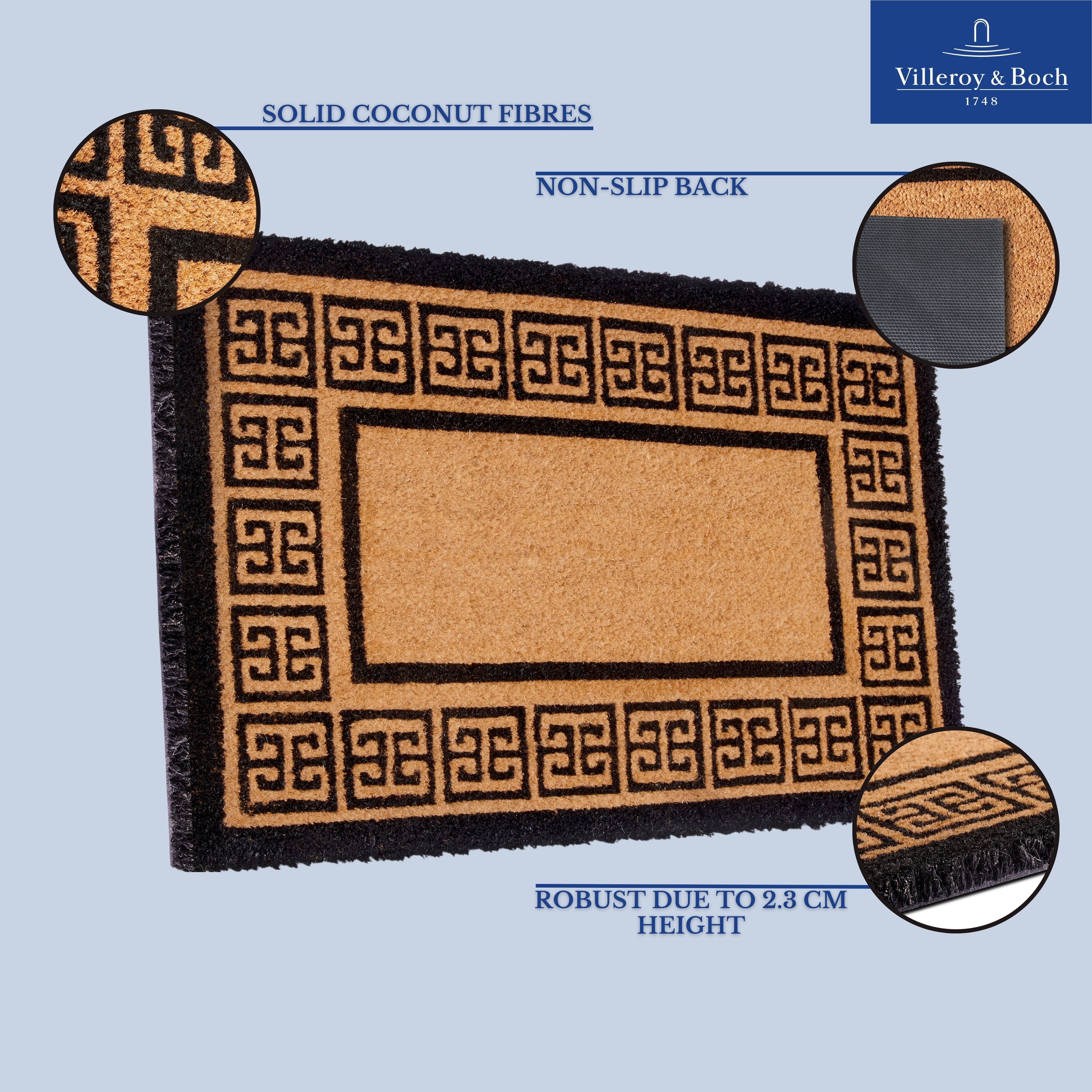 Velkommen hjem med den stilfulde og praktiske Villeroy & Boch Kokos Måtte fra Kollektion 1856. Denne robuste måtte i 100% kokosfibre skaber en indbydende atmosfære i din entré og tilføjer et strejf af naturlig elegance.