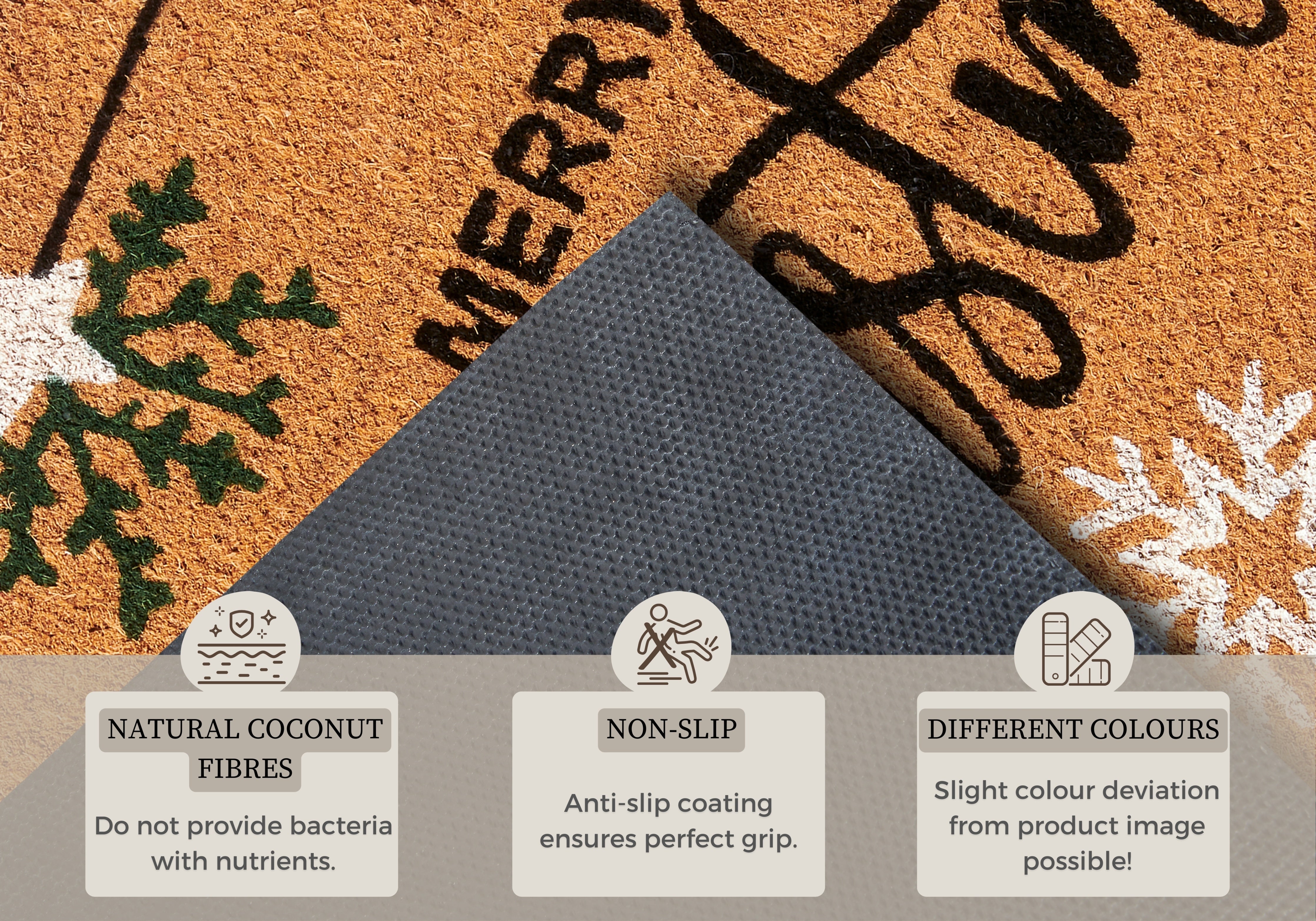 Kokos Måtte - Mix Mats er ikke kun smuk, men også utrolig praktisk. Kokosfibrene er naturligt resistente overfor bakterier, så snavs og bakterier bliver på måtten og transporteres ikke ind i dit hjem. Den skridsikre bagside i 100% PVC sørger for, at måtten ligger stabilt på gulvet, selv ved hyppig brug. Måtten er velegnet til både indendørs og beskyttet udendørs brug, hvilket gør den til en alsidig løsning til ethvert hjem. Den er desuden nem at rengøre, så du kan bevare dens friske udseende i lang tid.