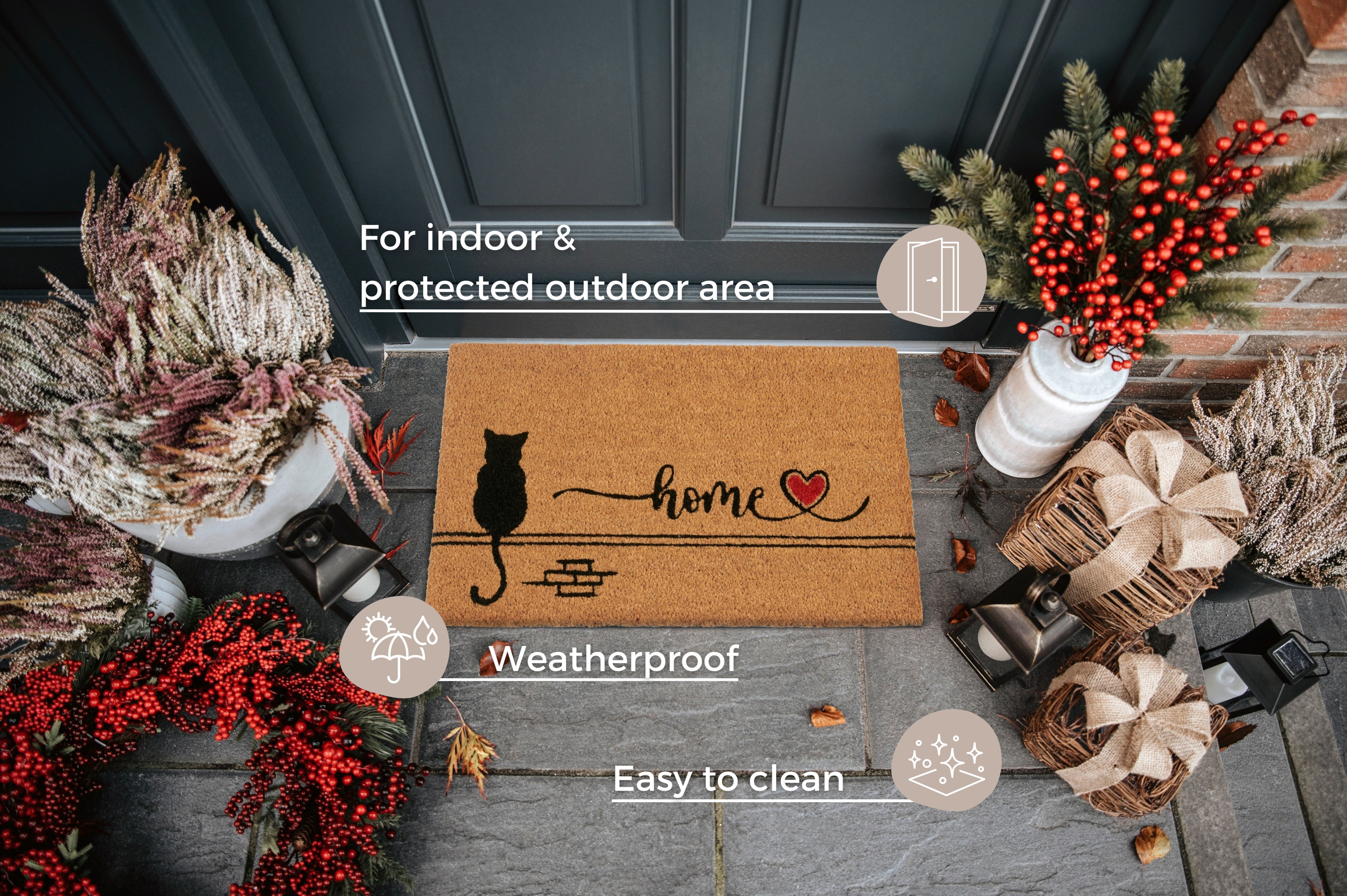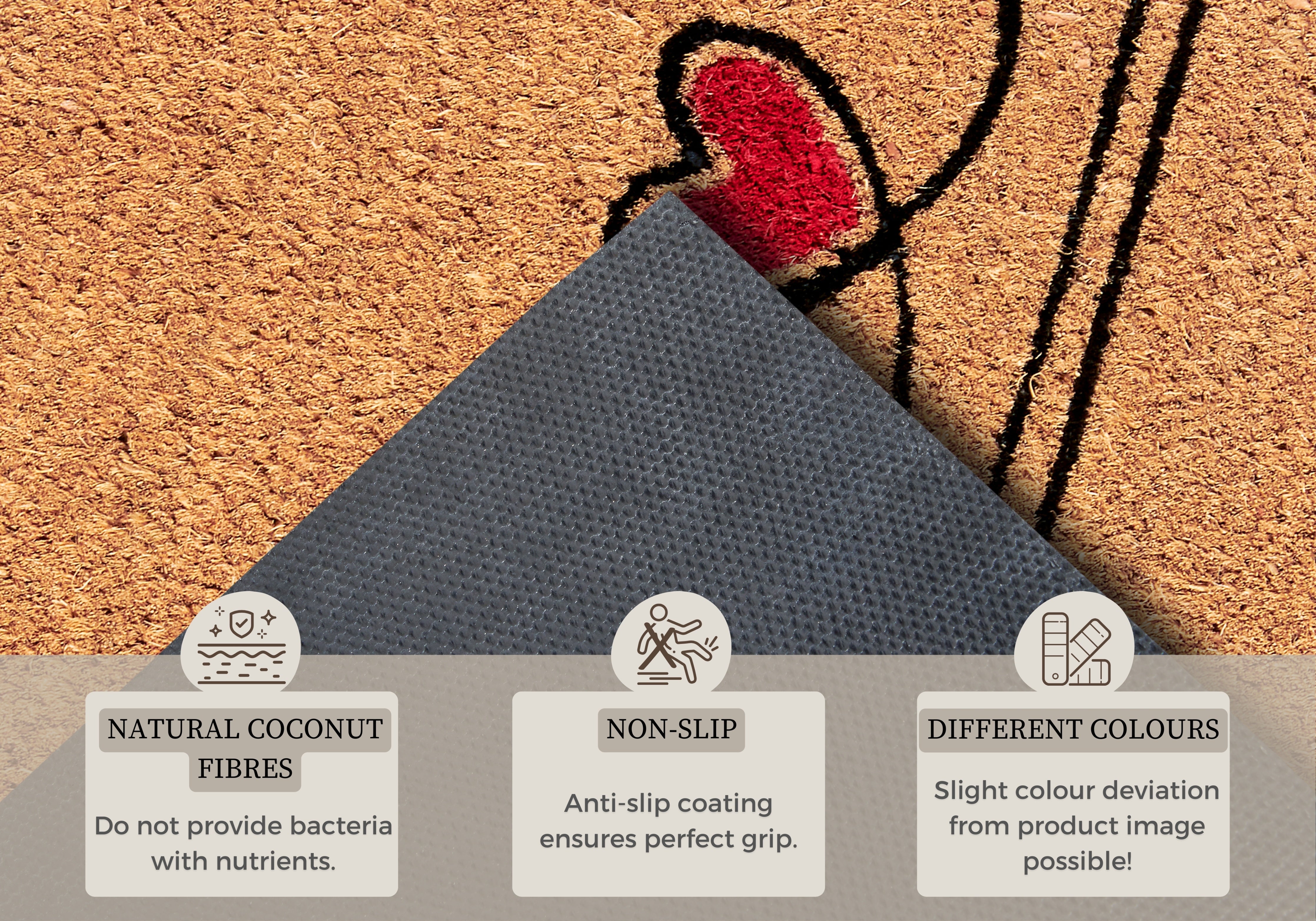 Kokosmåttens unikke egenskaber gør den ideel til både indendørs og overdækket udendørs brug. Den skridsikre PVC-bagside sørger for, at måtten bliver liggende, hvor den skal, og beskytter samtidig dit gulv. Kokosfibrene er naturligt resistente over for bakterier og snavs, hvilket betyder, at urenheder bliver på måtten og ikke transporteres ind i din bolig. Den praktiske måtte er desuden nem at rengøre, så du kan bevare dens friske udseende i lang tid.