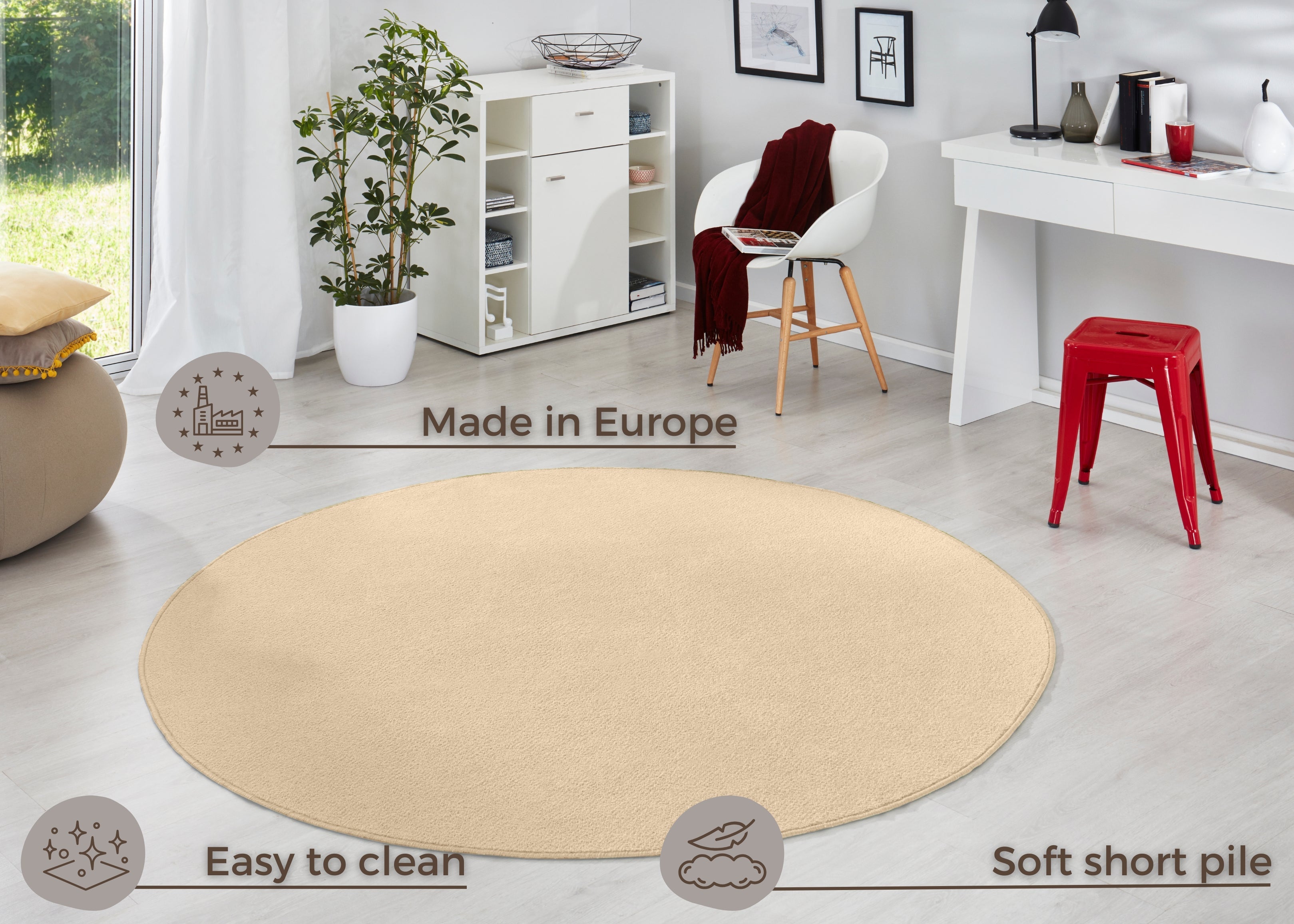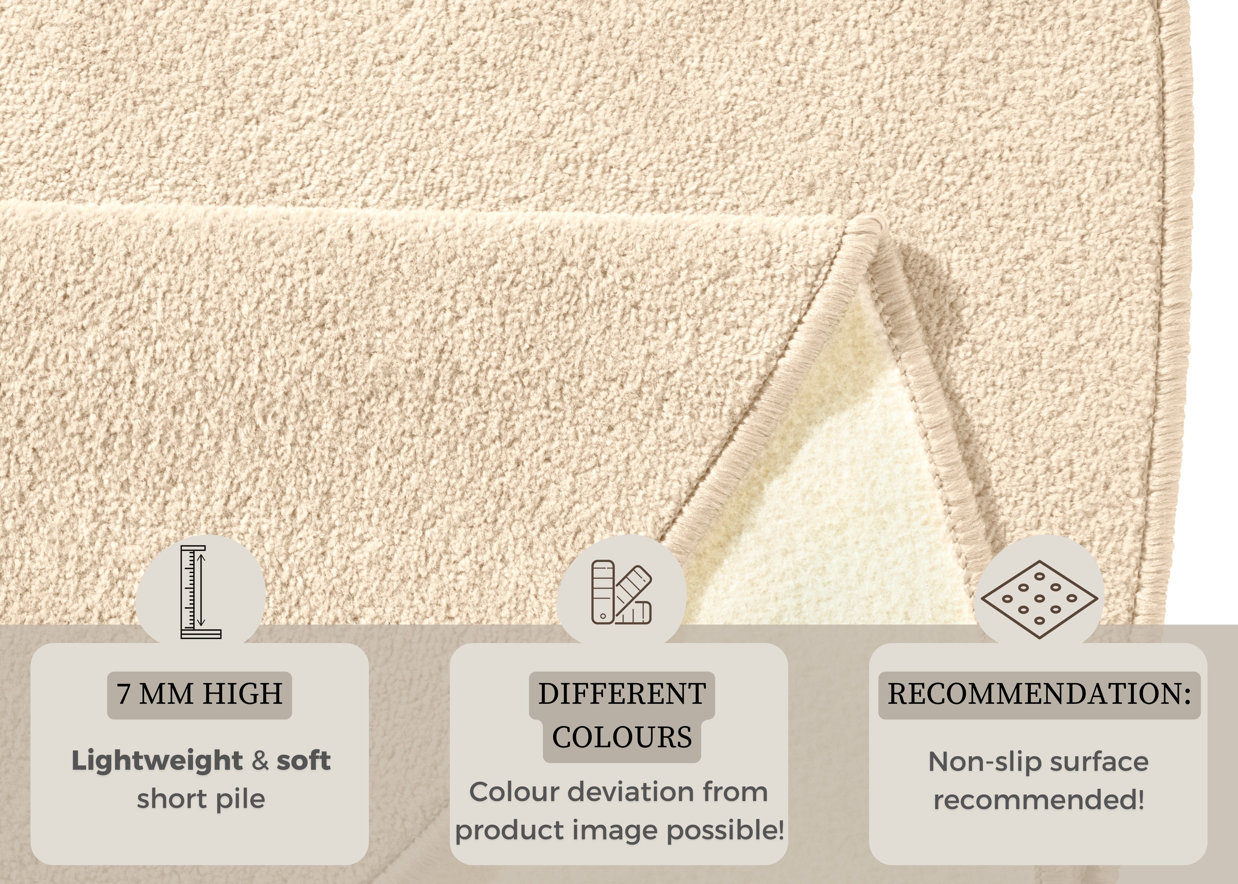 Med sin høje kvalitet og robuste konstruktion er "Fancy" tæppet skabt til at holde. De syntetiske fibre gør det utroligt slidstærkt og nemt at rengøre, perfekt til en travl hverdag. Den bløde fleecebagside tilføjer ekstra komfort under fødderne og beskytter samtidig dit gulv. Det moderne, ensfarvede design passer smukt ind i enhver indretning og er endda velegnet til gulvvarme. Uanset størrelse, tilføjer "Fancy" et touch af elegance til dit hjem.