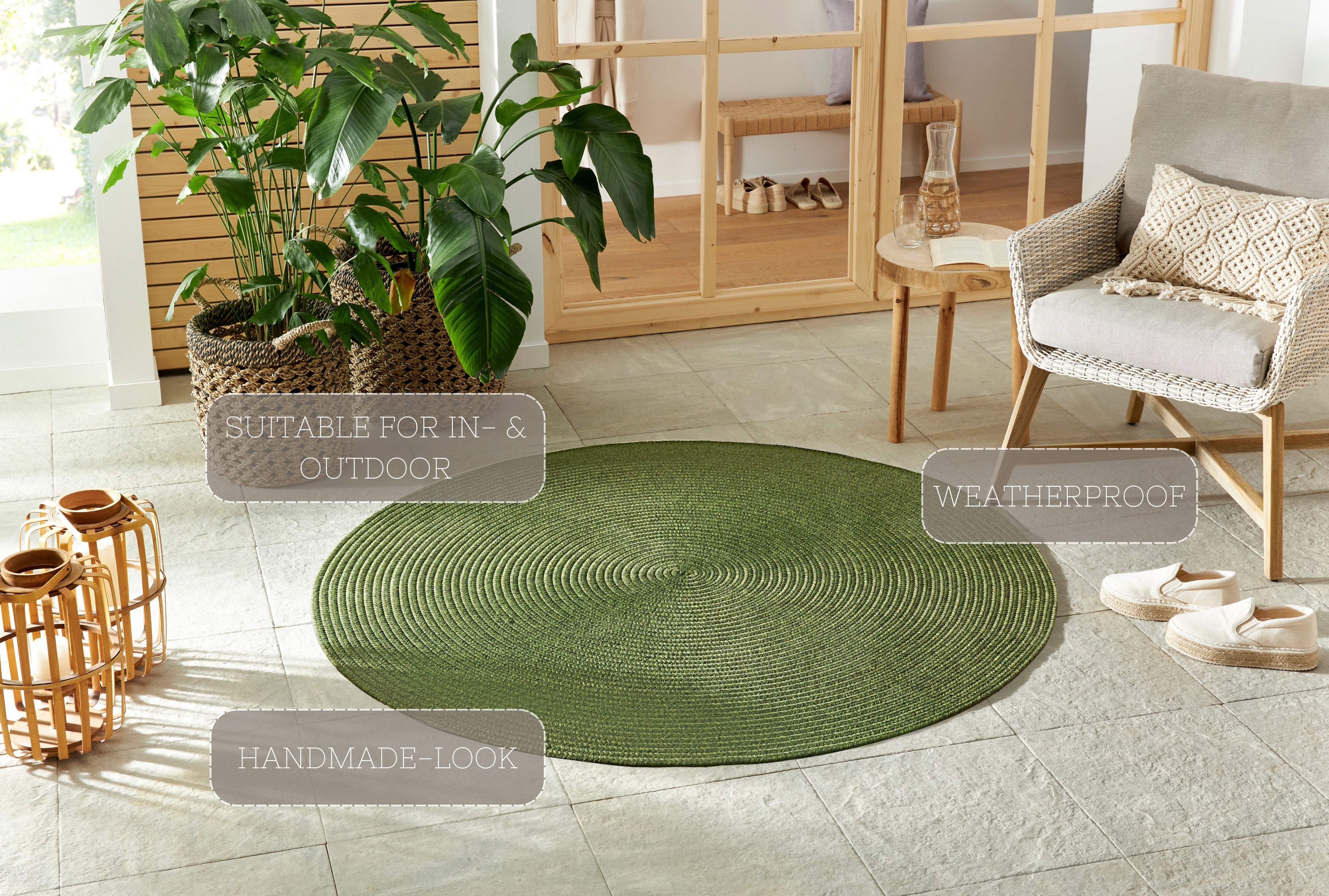 Inde&Udendørs Tæppe - Braided - 105554 Grøn - Rundt
