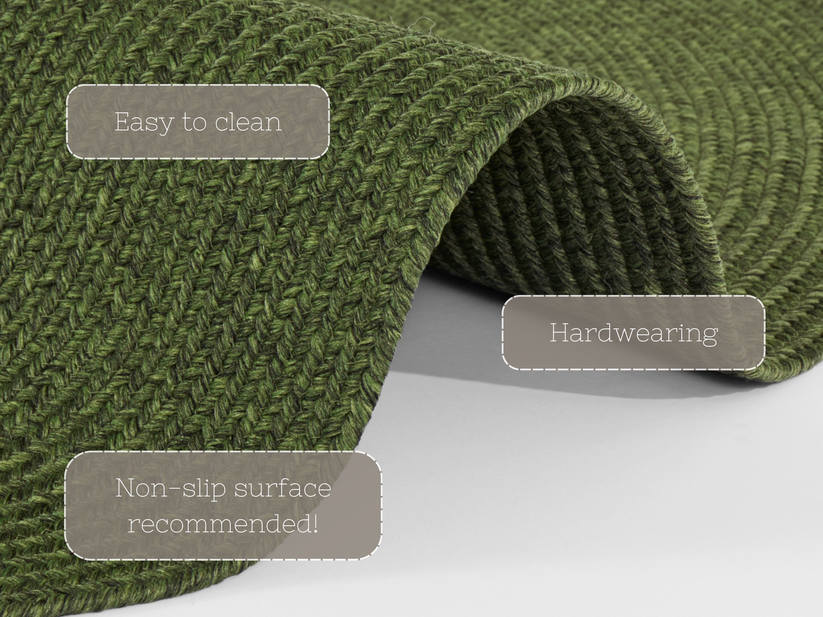 Tæppets flettede design giver det et charmerende, håndlavet look, der tilføjer et strejf af personlighed til ethvert rum. Den robuste polypropylen konstruktion gør det yderst modstandsdygtigt overfor vind og vejr, samtidig med at det er nemt at rengøre – perfekt til en aktiv livsstil. Tæppet er velegnet til alle gulvtyper, inklusive gulvvarme, så du kan nyde dets bløde komfort overalt i dit hjem. Den praktiske polypropylen bagside sikrer god stabilitet på gulvet.