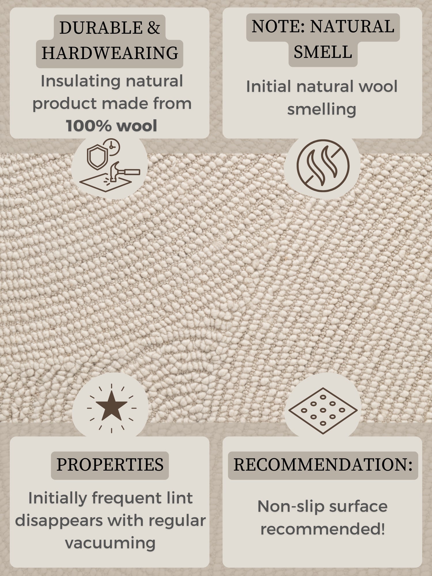 Vær opmærksom på, at nye tæpper kan have en midlertidig lugt ved udpakning, som stammer fra produktionen og indpakningen. Dette er normalt og aftager typisk inden for 1–2 uger efter udpakning, især ved god udluftning. Denne lugt betragtes ikke som en produktfejl.