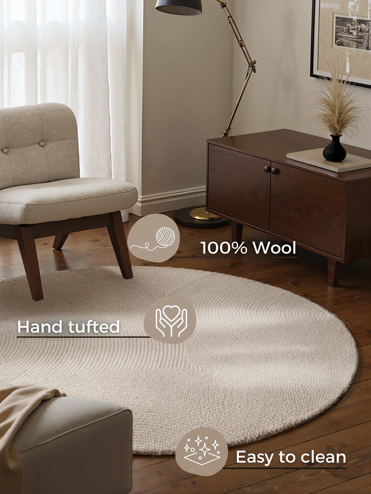 Tilføj et strejf af tidløs elegance til dit hjem med Eleni-tæppet. Dette smukke, runde tæppe i 100% uld fra Hanse Home skaber en varm og indbydende atmosfære i ethvert rum med sit enkle, geometriske design.
