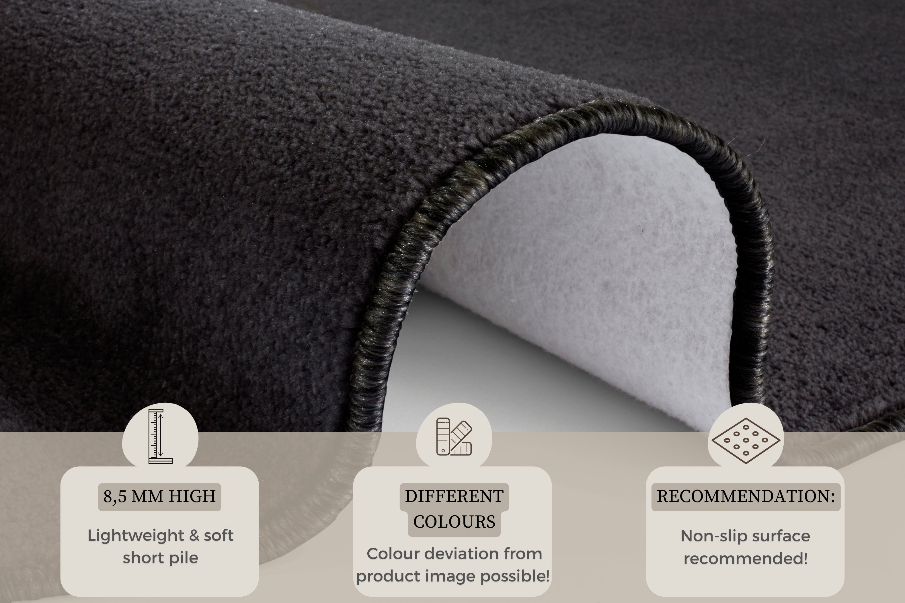 Dette stilrene tæppe er utrolig nemt at rengøre og passer perfekt til gulvvarme, hvilket gør det til et praktisk valg for travle husholdninger. Den bløde fleecebagside giver ekstra komfort og beskytter dit gulv mod ridser. Det enkle, tidløse og ensfarvede design passer ind i enhver indretningsstil, og med det brede udvalg af farver og former i Nasty-kollektionen finder du nemt et tæppe, der matcher din personlige smag og ethvert rum i dit hjem.
