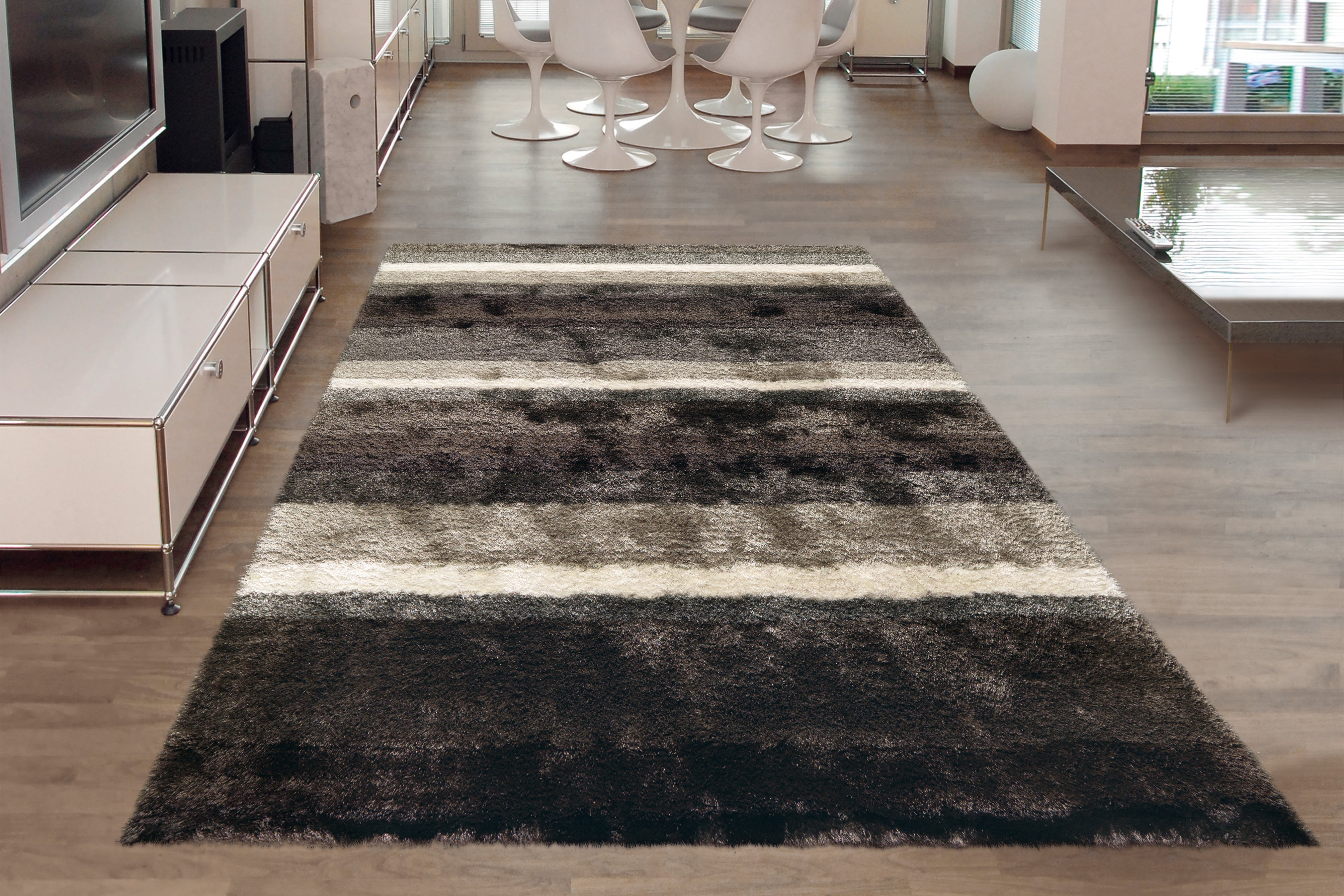 Dette højluvede tæppe imponerer med sit spændende design og harmonisk kombinerede, intense farver. De forskellige størrelser sikrer en passende løsning til enhver rumstørrelse. Tilføj nye accenter til dine opholdsrum eller forretningslokaler, og fortryll dine besøgende og kunder med sit attraktive design. Den bløde fornemmelse af det højluvede tæppe kærtegner dine fødder med hvert skridt. Forstærket af en polyester- og bomuldsbagside kan tæppet også bruges i rum med gulvvarme. Tæppets overflade er ikke kun blød og varm, men også nem at pleje og holdbar – alt i alt er dette et tæppe, der får dig til at føle dig godt tilpas.