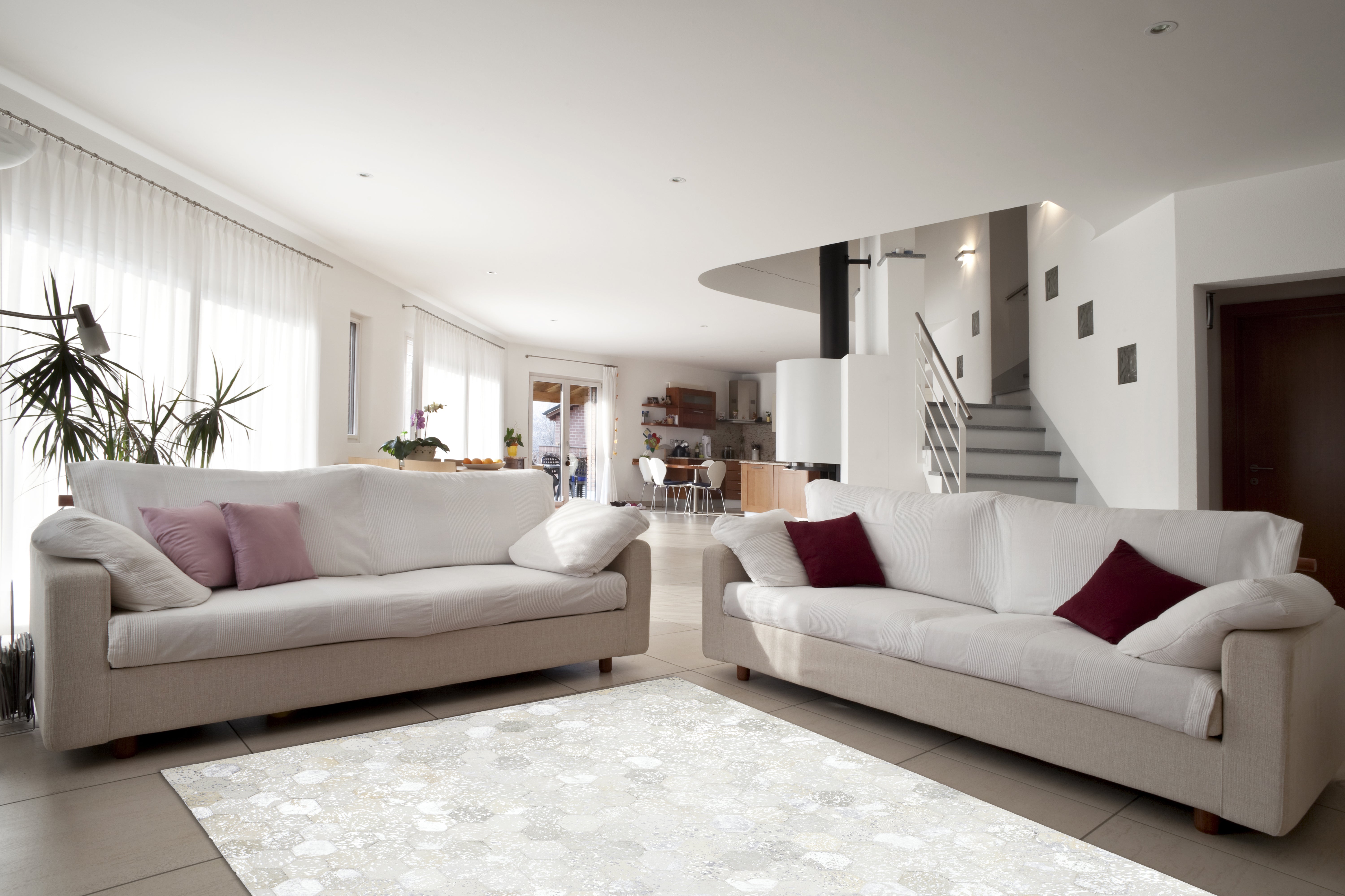 Dette smukke lædertæppe med integrerede metalliske folieapplikationer komplementerer på en dygtig måde enhver sofistikeret indretningsstil. Dette højkvalitets lædertæppe i 100% læder tilføjer et unikt præg til sine omgivelser og skaber en helt særlig atmosfære. Hvert lædertæppe er håndlavet og unikt. Brugen af førsteklasses naturmaterialer og håndværk af høj kvalitet sikrer et dynamisk udseende og gør hvert tæppe unikt. Naturprodukter kan variere i form, farve og mønster med op til 30 %. Den naturlige pels kan tabe hår over tid og ved kraftig brug. Den metalliske folie kan også skalle af under visse omstændigheder. Dette skyldes produktets naturlige natur og pelsens tekstur og er ikke en fabrikationsfejl. Gør et statement med dette lædertæppe og gør det til et blikfang i dit hjem. Det er velegnet til ethvert rum - uanset om det er stue, soveværelse, entré eller spisestue. Det moderne, delikate diamantmønster giver produktet et helt særligt præg og passer godt til forskellige møbler. Naturfibertæpper fanger fnug og er derfor særligt velegnede til allergikere, da de kan støvsuges med det samme. Dette ekstra komfortable lædertæppe er et allround-produkt, der imponerer med både udseende og følelse. Det slidstærke materiale skaber tæppets tunge kvalitet, hvilket gør det ekstremt holdbart og nemt at vedligeholde. Læderets varmeisolerende egenskaber giver en mærkbar velværeeffekt. Tilføj et særligt touch til dine rum, og skab din egen afslapningsoase i en række forskellige nuancer. Selv den mindste lejlighed kan personliggøres med dette vidunderlige naturlige tæppe, da det fås i forskellige størrelser.