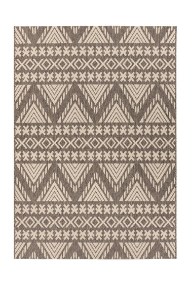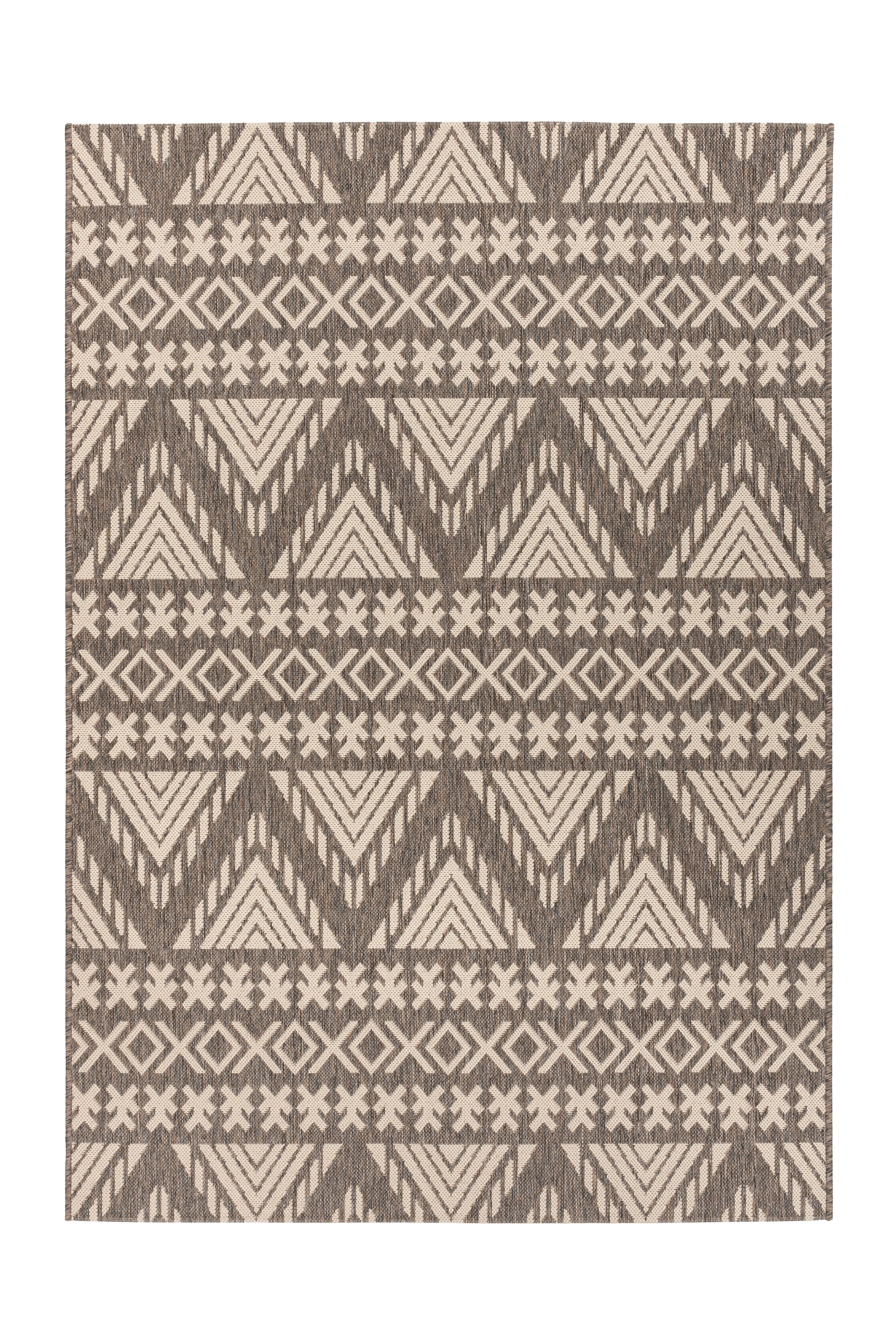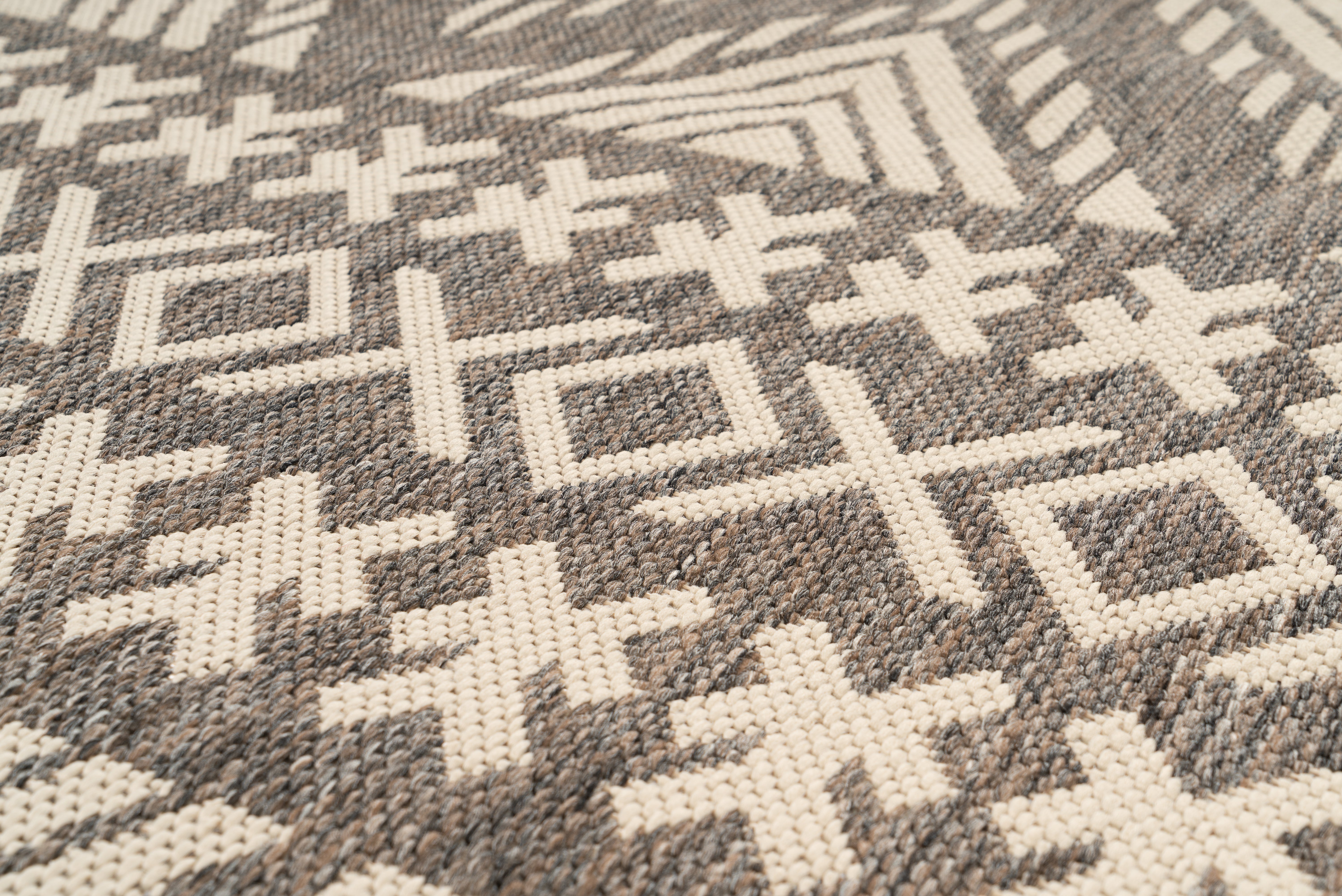 Dette lavluvede tæppe med et flettet look og trendy design er en sand trendsætter, der tilføjer middelhavsaccenter til ethvert opholdsområde. Designet understreger ethvert moderne præg. Dets naturlige karakter udstråler en unik charme.  Det naturlige look giver en ny dimension af styrke. Med sin specielle, fladvævede luv er dette lavluvede tæppe med sisal-look et alsidigt hverdagsstykke, der giver et perfekt finish til en bred vifte af boligindretning og kan bruges indendørs og udendørs. Tæppet til indendørs/udendørs brug tåler nemt hård brug. De diskret nuancerede farver tilpasser sig ethvert miljø. Tæppet kan bruges som blikfang i stuen, som tæppe i gangen eller som blikfang på terrassen eller altanen. Den robuste luv står i direkte forhold til dets geometriske mønster og understreger tydeligt den stærke karakter af dette lavluvede tæppe. Fugt har ingen chance. Fordelene er åbenlyse: overkommelige priser, ultramoderne, holdbare og nemme at vedligeholde!