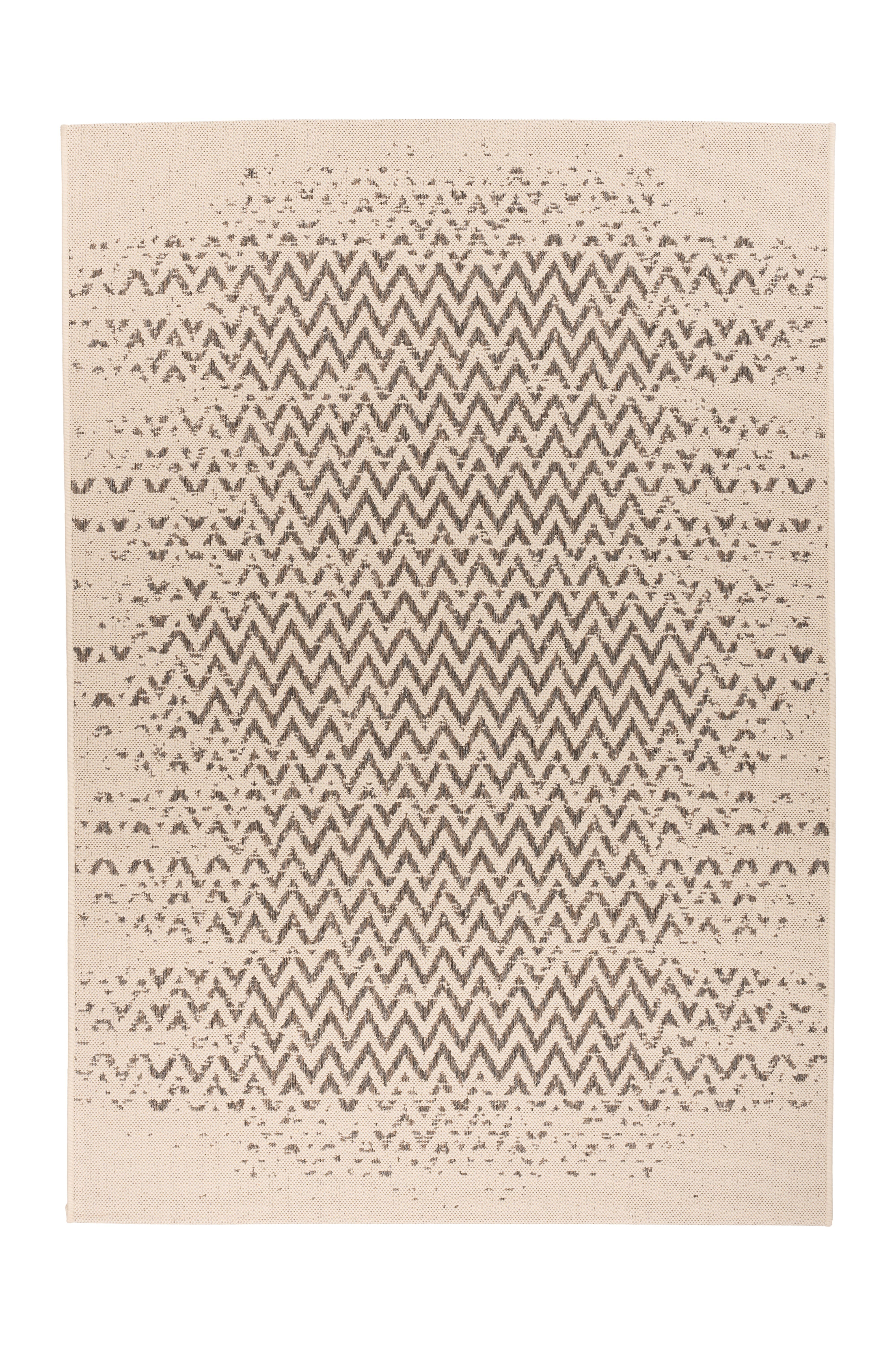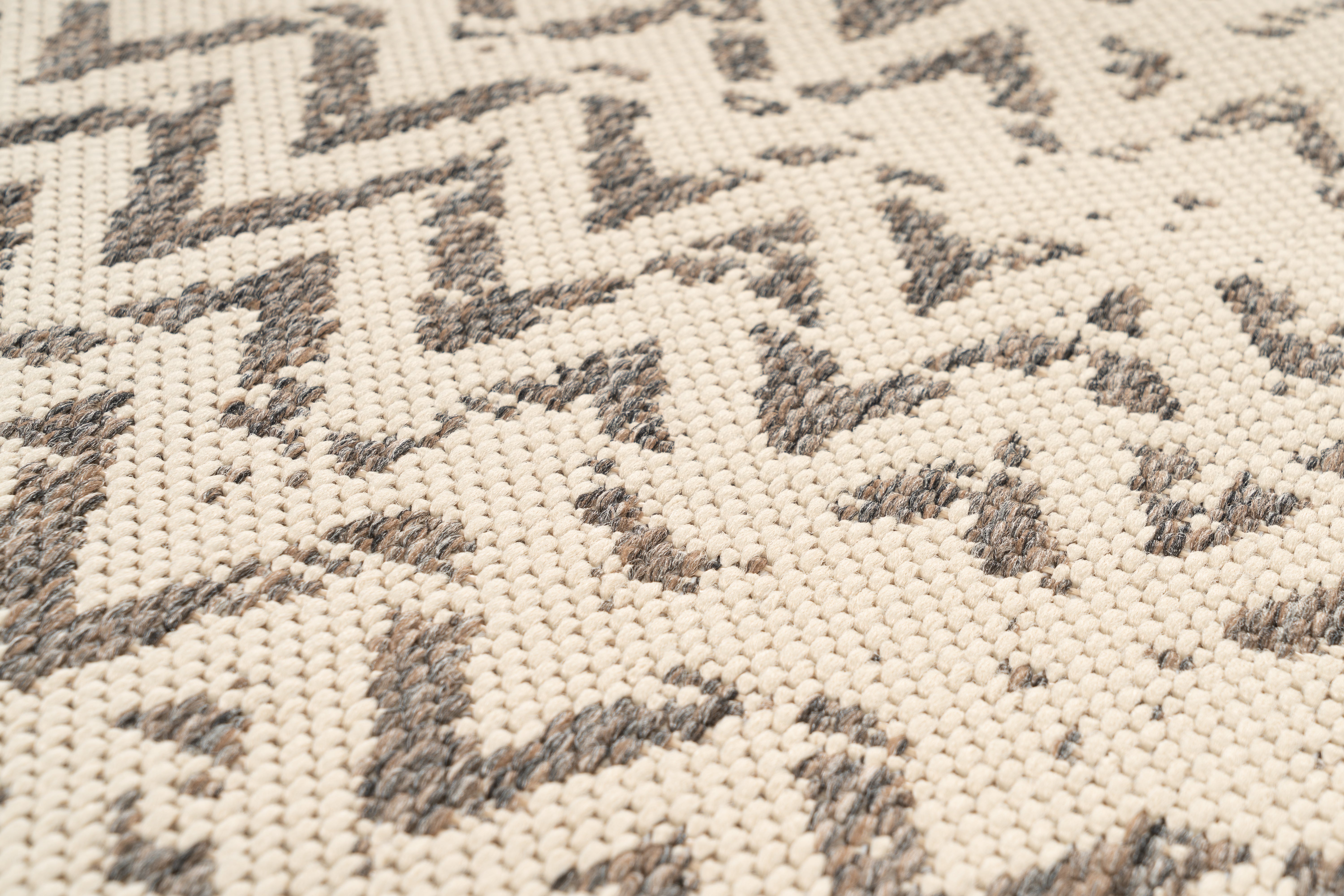 Dette lavluvede tæppe med et flettet look og trendy design er en sand trendsætter, der tilføjer middelhavsaccenter til ethvert opholdsområde. Designet understreger ethvert moderne præg. Dets naturlige karakter udstråler en unik charme.  Det naturlige look giver en ny dimension af styrke. Med sin specielle, fladvævede luv er dette lavluvede tæppe med sisal-look et alsidigt hverdagsstykke, der giver et perfekt finish til en bred vifte af boligindretning og kan bruges indendørs og udendørs. Tæppet til indendørs/udendørs brug tåler nemt hård brug. De diskret nuancerede farver tilpasser sig ethvert miljø. Tæppet kan bruges som blikfang i stuen, som tæppe i gangen eller som blikfang på terrassen eller altanen. Den robuste luv står i direkte forhold til dets geometriske mønster og understreger tydeligt den stærke karakter af dette lavluvede tæppe. Fugt har ingen chance. Fordelene er åbenlyse: overkommelige priser, ultramoderne, holdbare og nemme at vedligeholde!