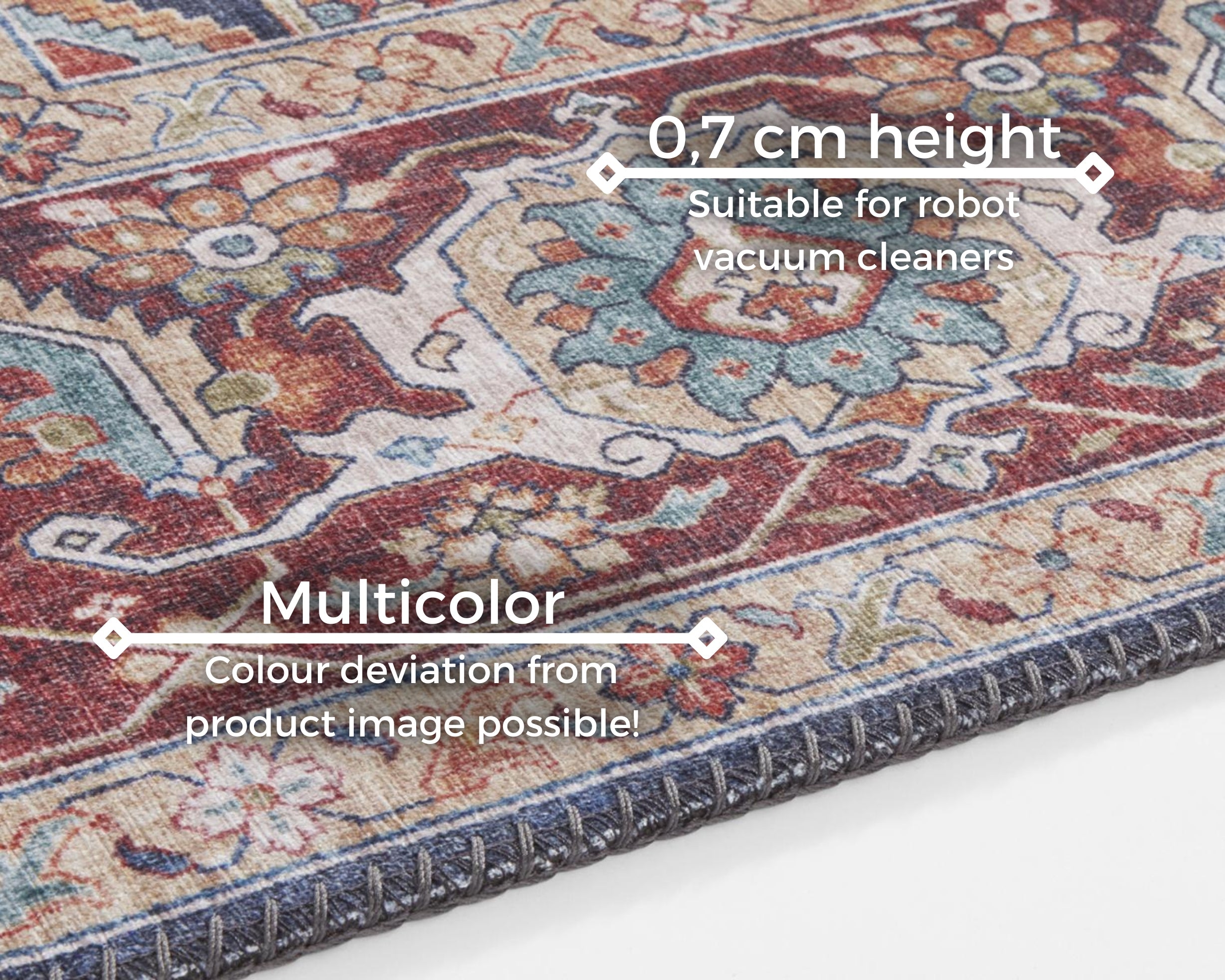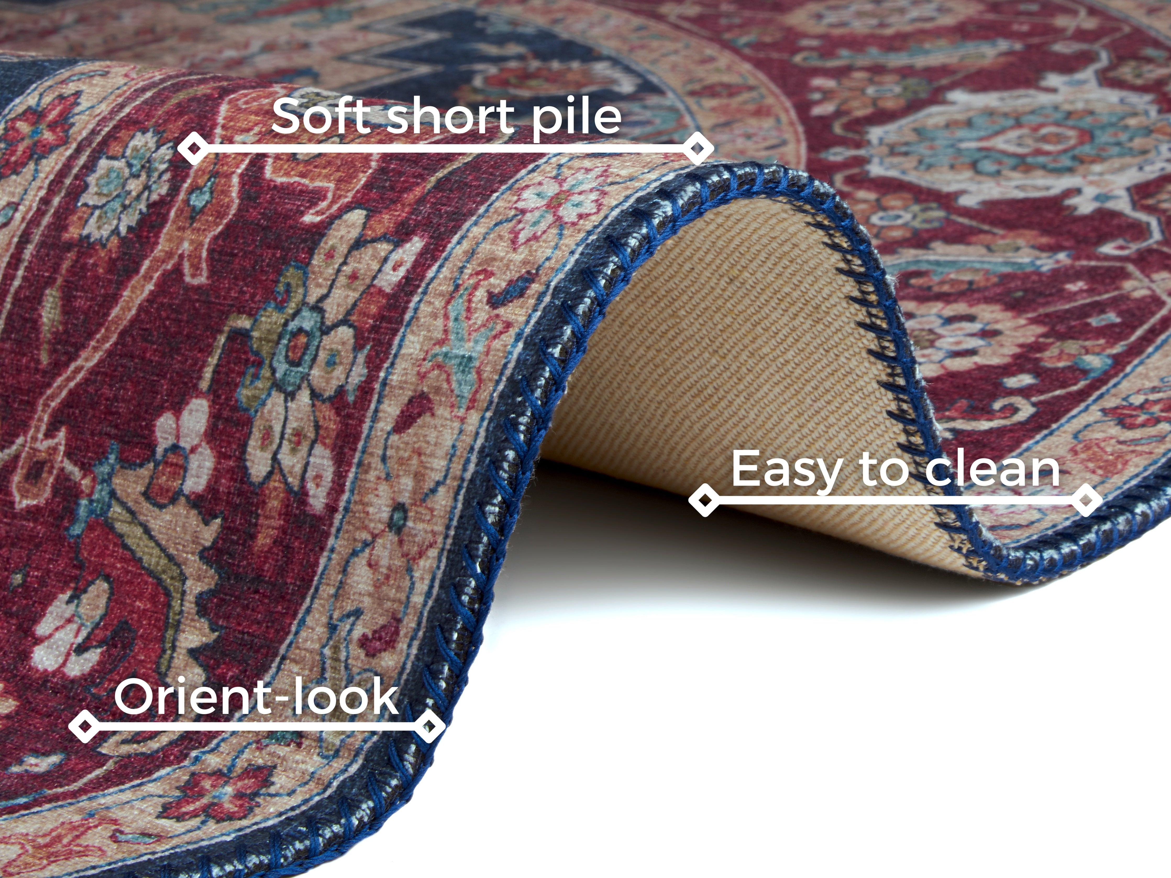 Asmar-tæppet er mere end bare smukt; det er også praktisk og slidstærkt. Den bløde og letplejede fladvævning gør det ideelt til travle hjem, mens bagsiden i bomuld giver ekstra komfort og stabilitet. Tæppet er egnet til alle gulvtyper, inklusive gulvvarme, så du kan nyde dets bløde fornemmelse overalt i dit hjem. Den detaljerede orientalske mønster giver tæppet en unik karakter, der vil imponere dine gæster.