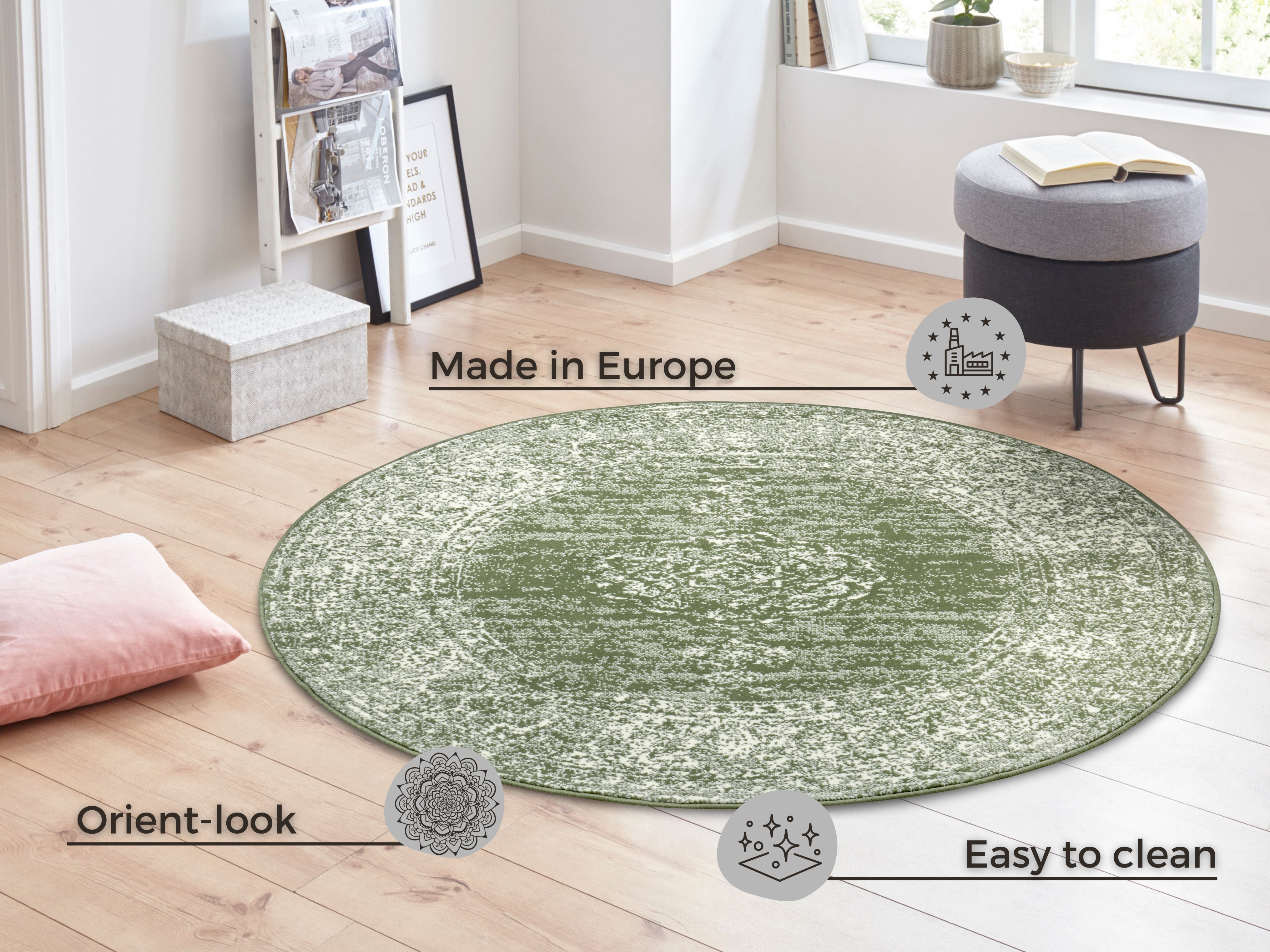 Gloria-tæppets charmerende orientalske design i moderne farvekombinationer gør det alsidigt og anvendeligt i ethvert rum. Det er velegnet til alle gulvtyper, inklusive gulvvarme, så du kan nyde dets blødhed og varme året rundt. Den robuste jutebagside giver tæppet stabilitet og forhindrer det i at glide, mens den slidstærke konstruktion sikrer lang holdbarhed. Tæppets syntetiske fibre gør det yderst modstandsdygtigt over for slid og pletter.