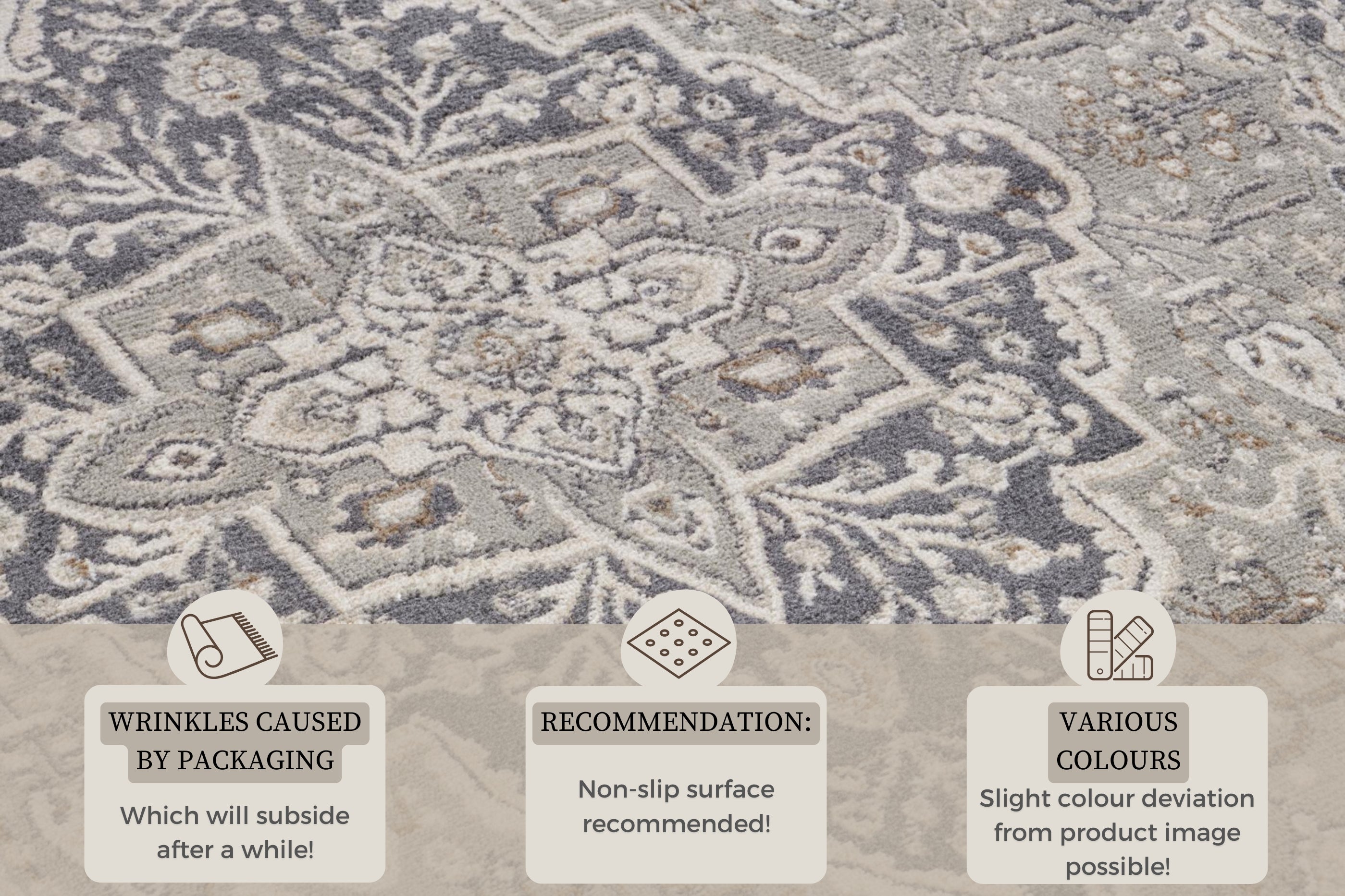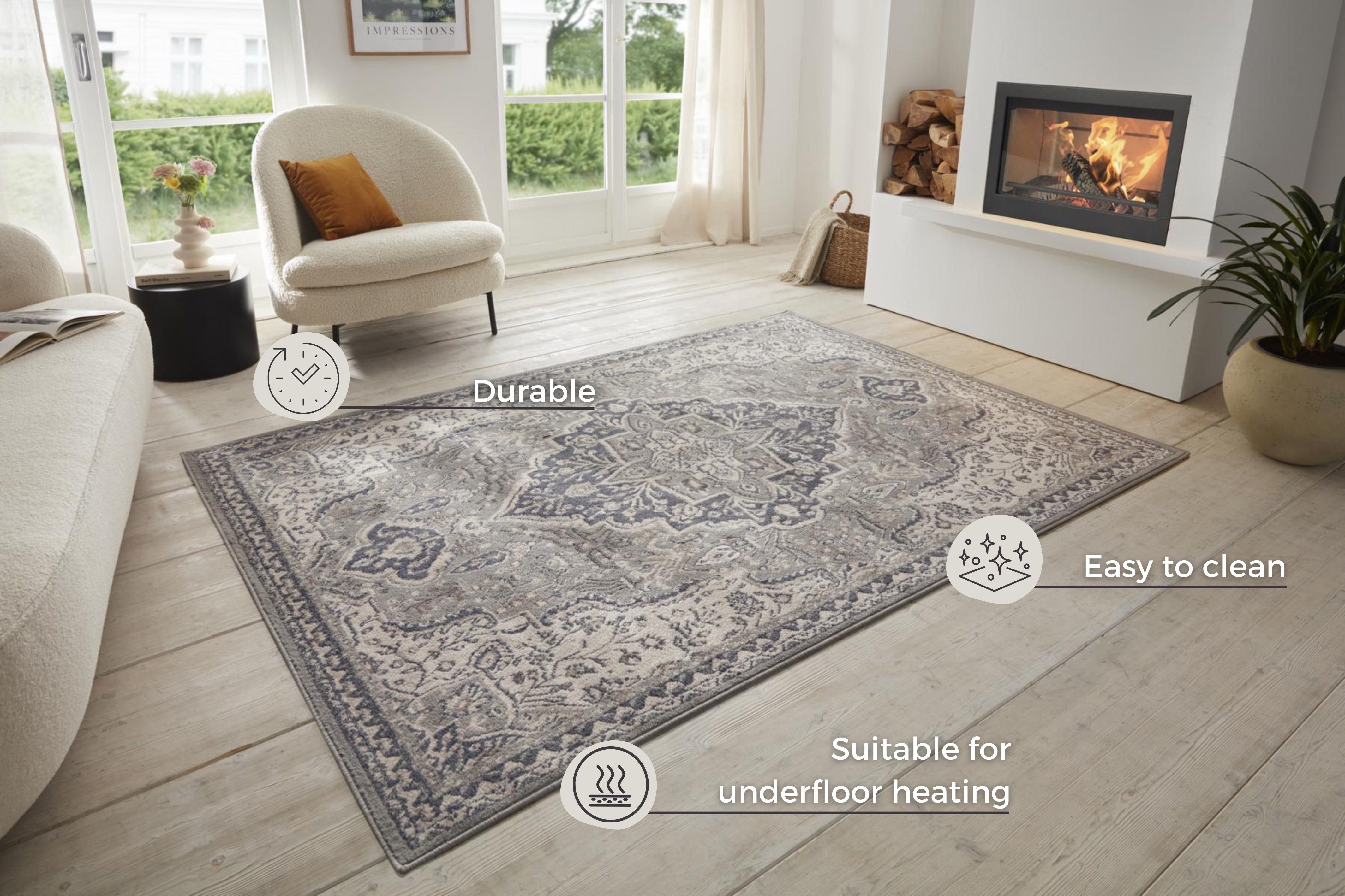 Tilføj et strejf af klassisk elegance til dit hjem med Terrain-tæppet (105604 Grå/Creme) fra Hanse Home. Dette smukke tæppe, fremstillet af 100% slidstærkt polypropylen, skaber en varm og indbydende atmosfære i ethvert rum med sit afdæmpede grå/creme farvespil og det tidløse orientalske mønster.