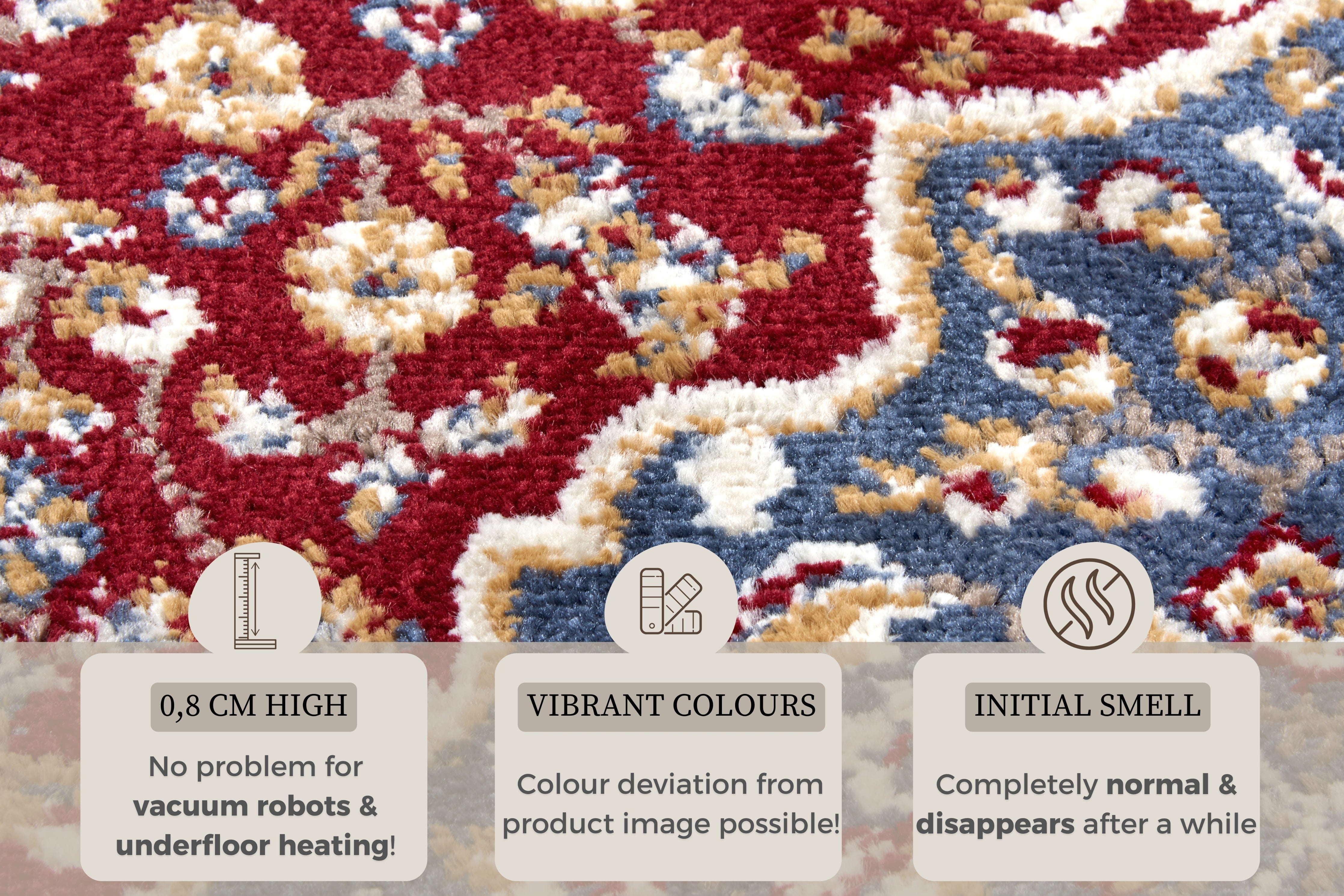 Tilføj et strejf af orientalsk elegance til dit hjem med Luxor-tæppet i en smuk rød farve. Vævet i 100% slidstærkt polypropylen, skaber dette tæppe en varm og indbydende atmosfære i ethvert rum.