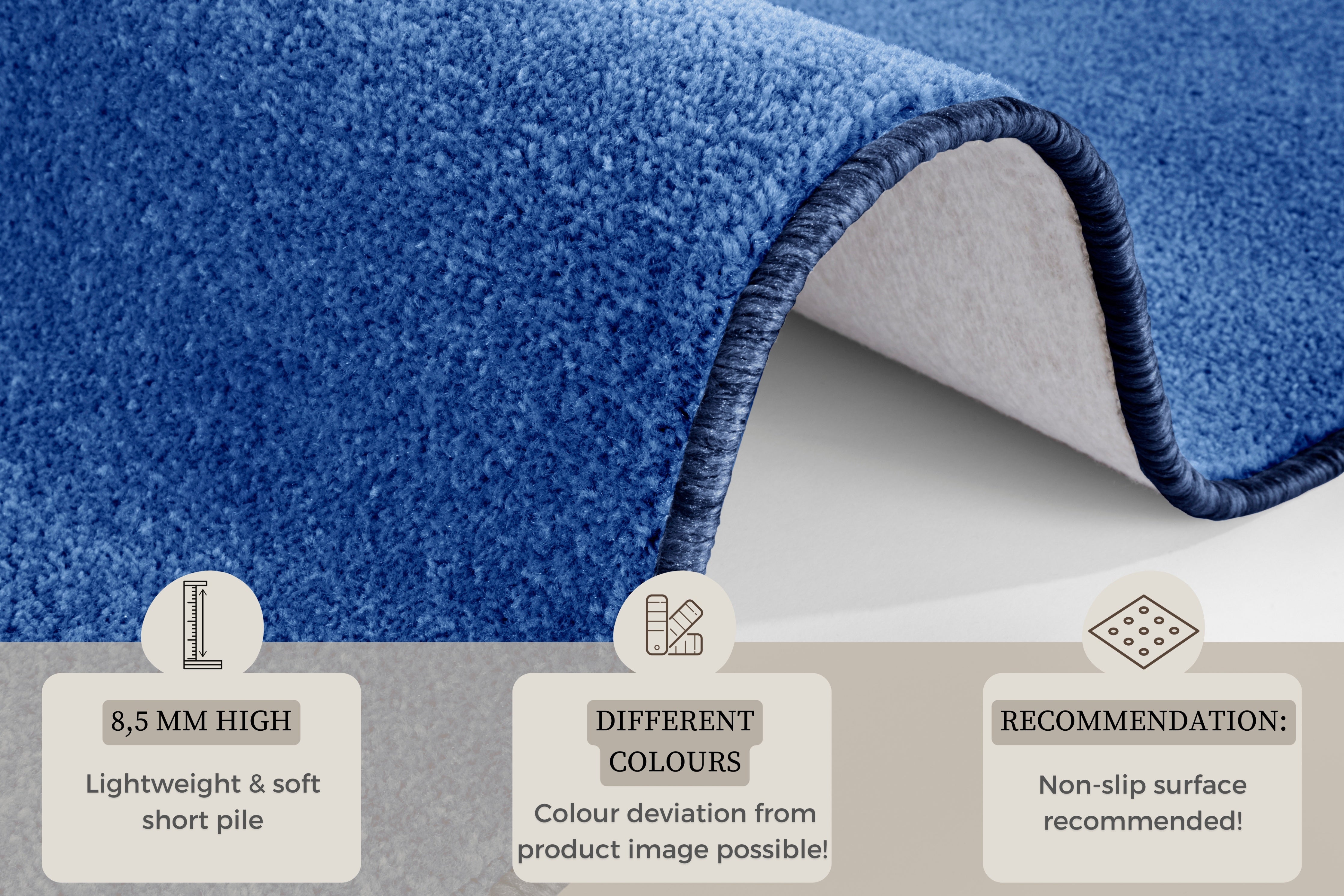 Nasty - 101153 i en smuk blå farve er et stilrent og tidløst tæppe i 100% polypropylen, der tilføjer et strejf af ro og elegance til ethvert rum. Den ensfarvede design giver et minimalistisk udtryk, der passer perfekt ind i moderne indretninger.