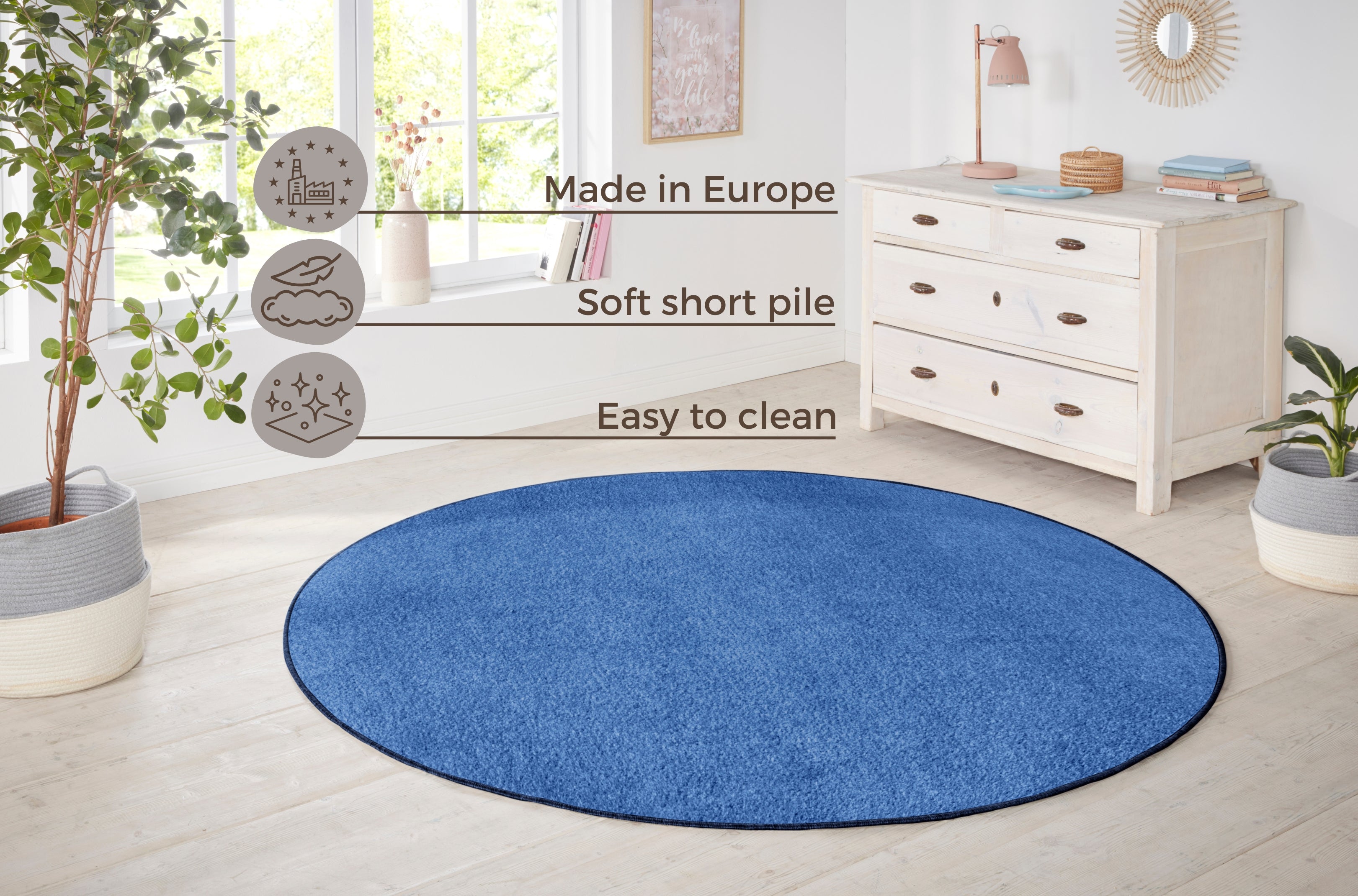 Forkæl dit hjem med det stilrene og tidløse tæppe "Nasty" fra Hanse Home. Med sin smukke blå farve og fremstilling i 100% polypropylen, tilføjer dette runde tæppe en beroligende og elegant atmosfære til ethvert rum.