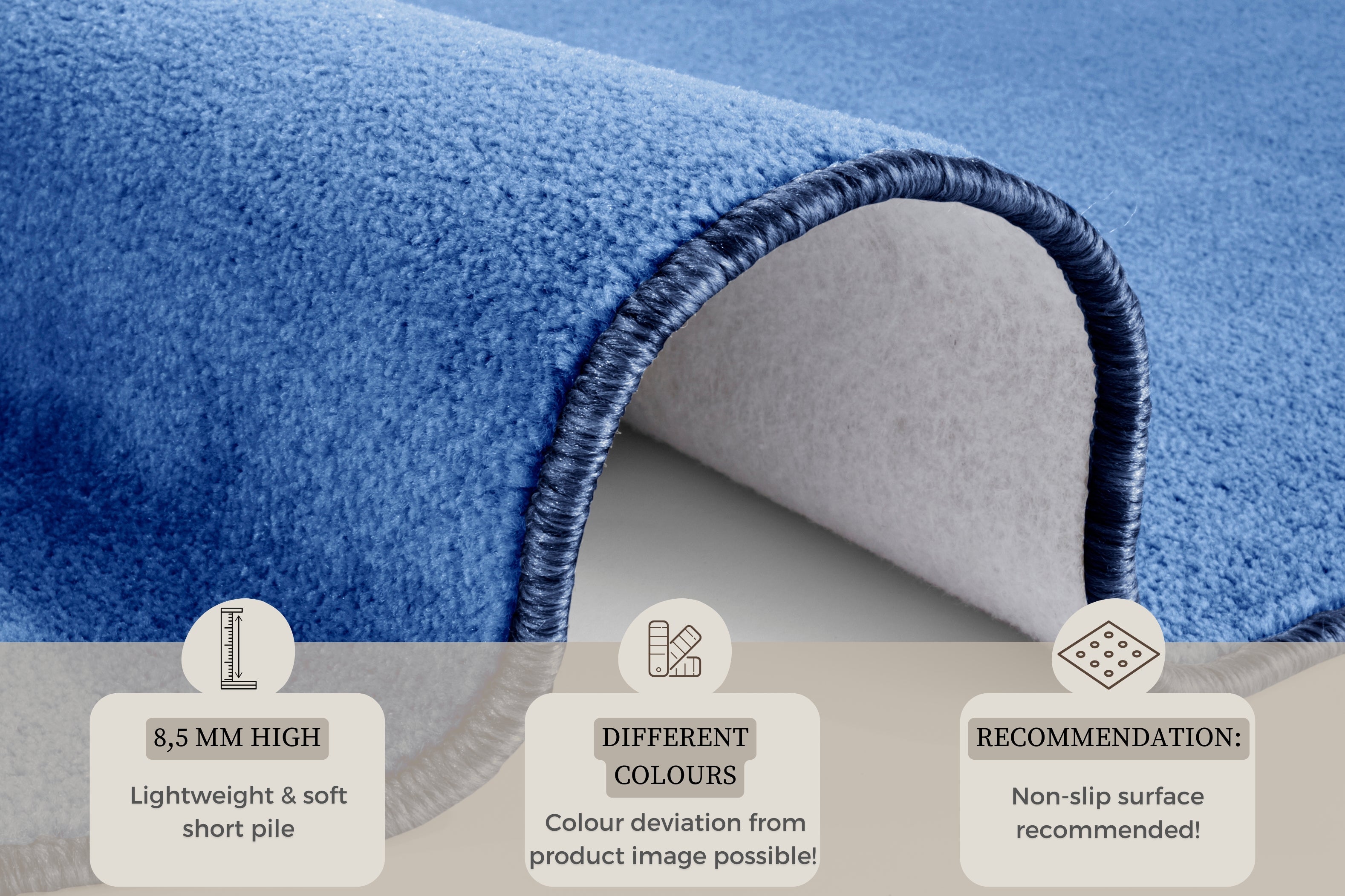 Oplev den bløde komfort med en luvhøjde på 0.85 mm, der giver tæppet en behagelig følelse under fødderne. For at holde dit Nasty-tæppe rent og pænt anbefales rengøring med tæppeskum eller shampoo.
