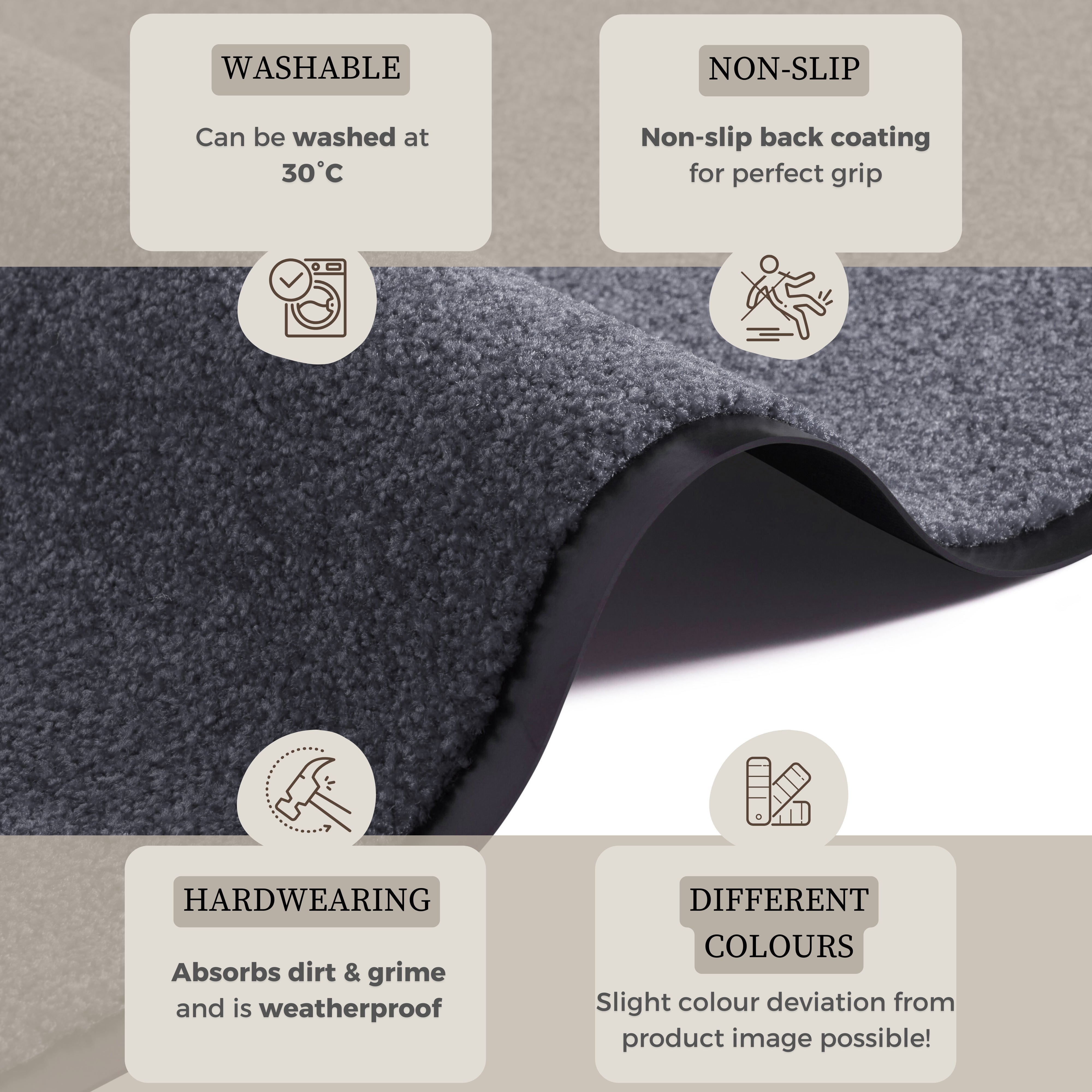 Wash & Clean måtten er designet til at modstå vind og vejr. Den er særdeles vejrbestandig og yderst absorberende, hvilket gør den perfekt til områder med høj trafik. Den skridsikre bagside i nitrilgummi sørger for, at måtten ligger stabilt på plads og forhindrer uheld. Måtten er utrolig nem at rengøre – en simpel håndvask ved 30 grader er alt, der skal til for at holde den frisk og pæn.