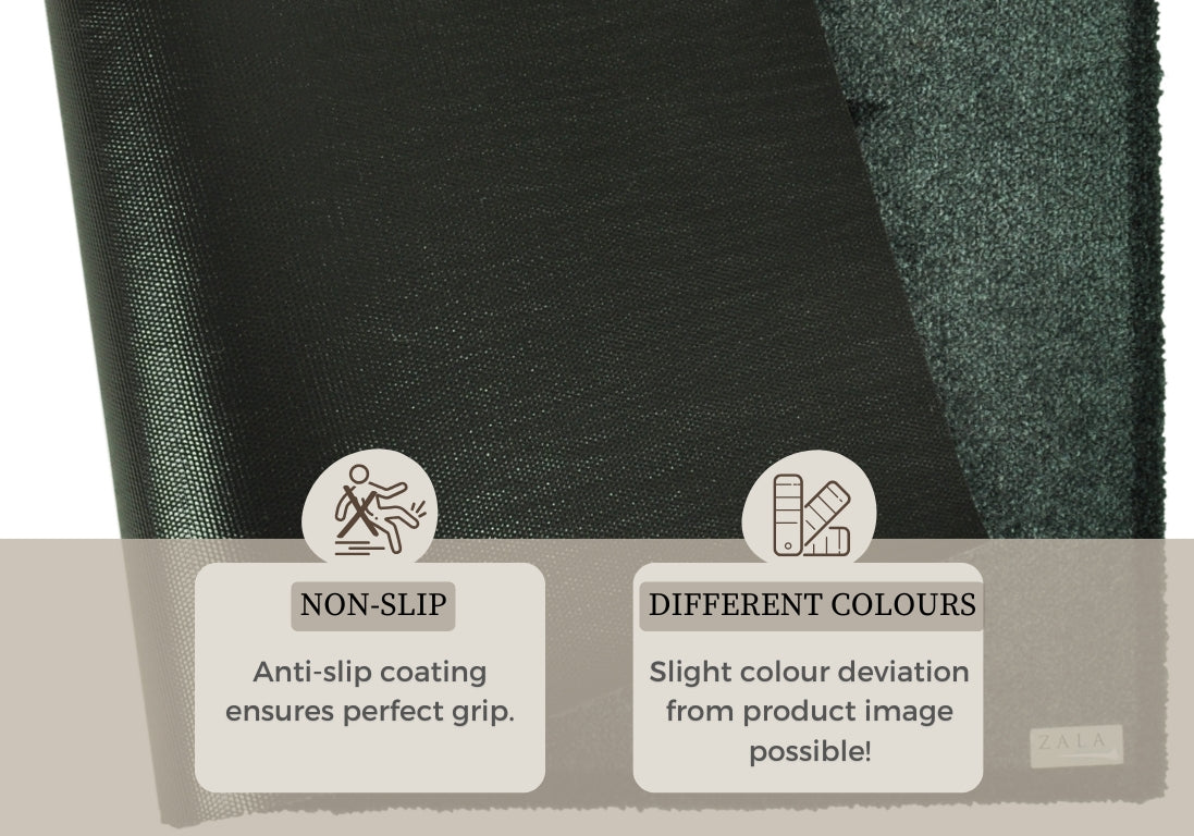 Måttens underside er belagt med nitrilgummi, hvilket giver et effektivt anti-slip greb og sikrer, at måtten bliver liggende, hvor den skal, selv på glatte gulve. Den er særdeles slidstærk og let at rengøre, hvilket gør den ideel til områder med høj trafik. Den praktiske vaskbarhed ved 30°C (håndvask) gør det nemt at holde måtten ren og frisk.