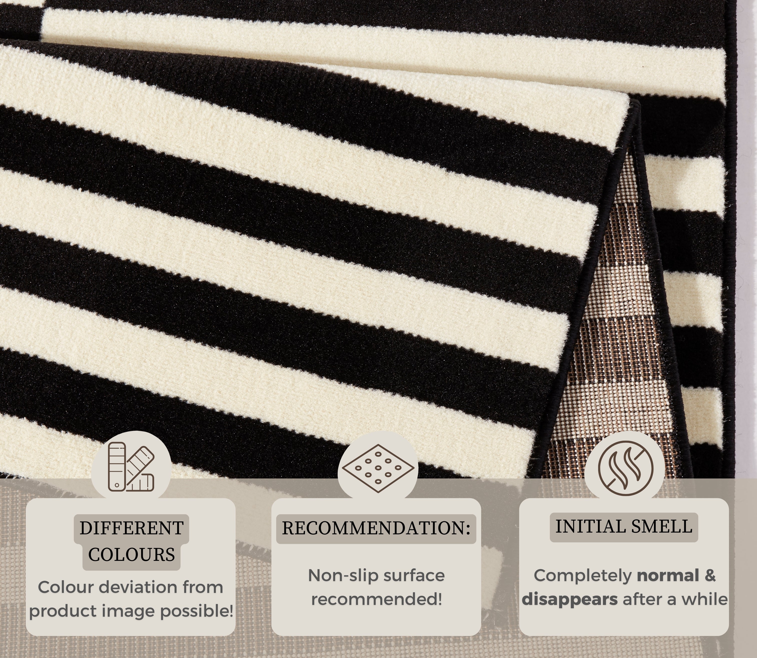 Tilføj et strejf af moderne elegance til dit hjem med Gloria - 102408 tæppet i en stilfuld sort/creme farvekombination. Vævet i 100% slidstærkt polypropylen, skaber dette tæppe en behagelig og indbydende atmosfære i ethvert rum.