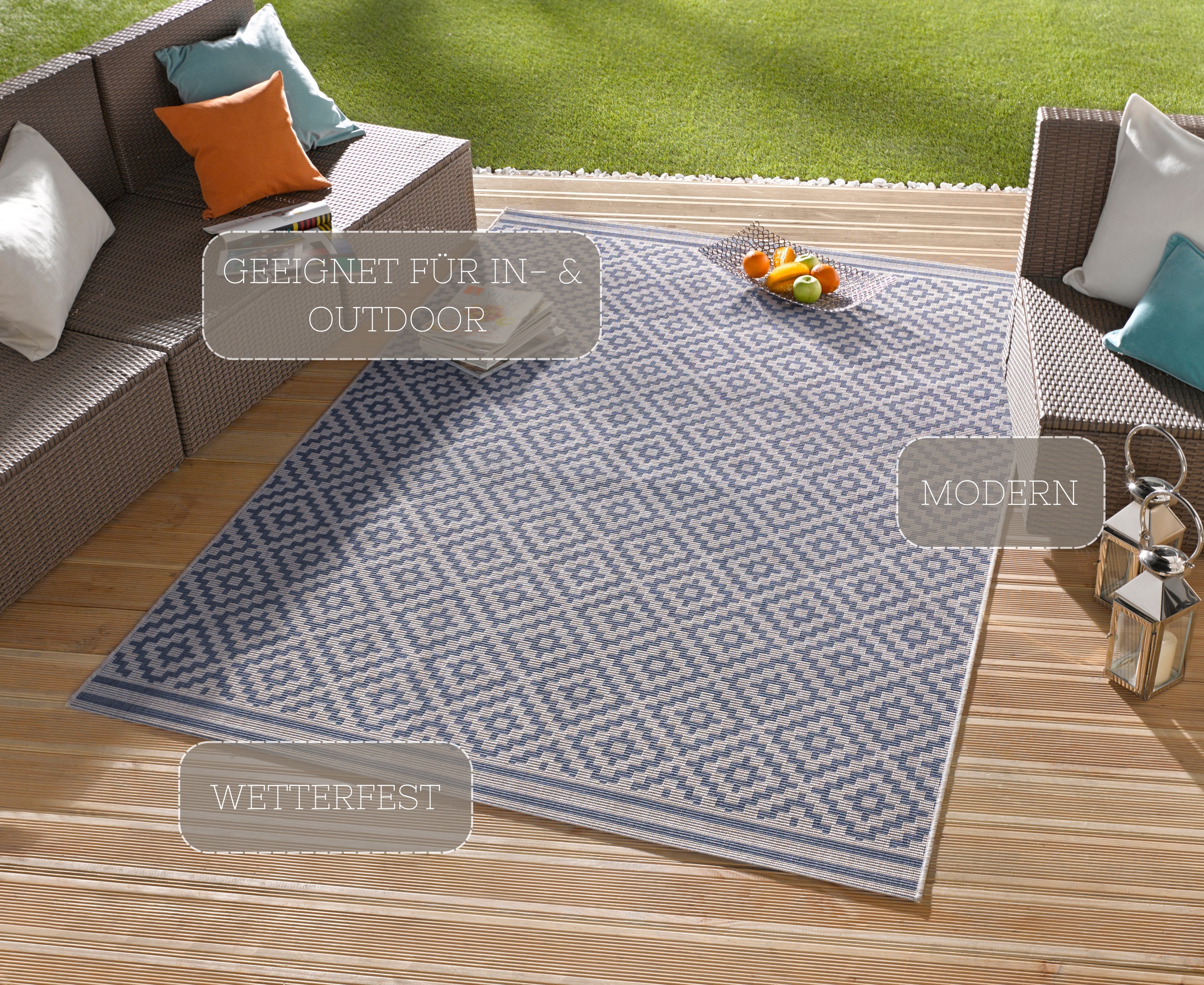 Inde&Udendørs Tæppe - Meadow - 102464 Blå/Creme