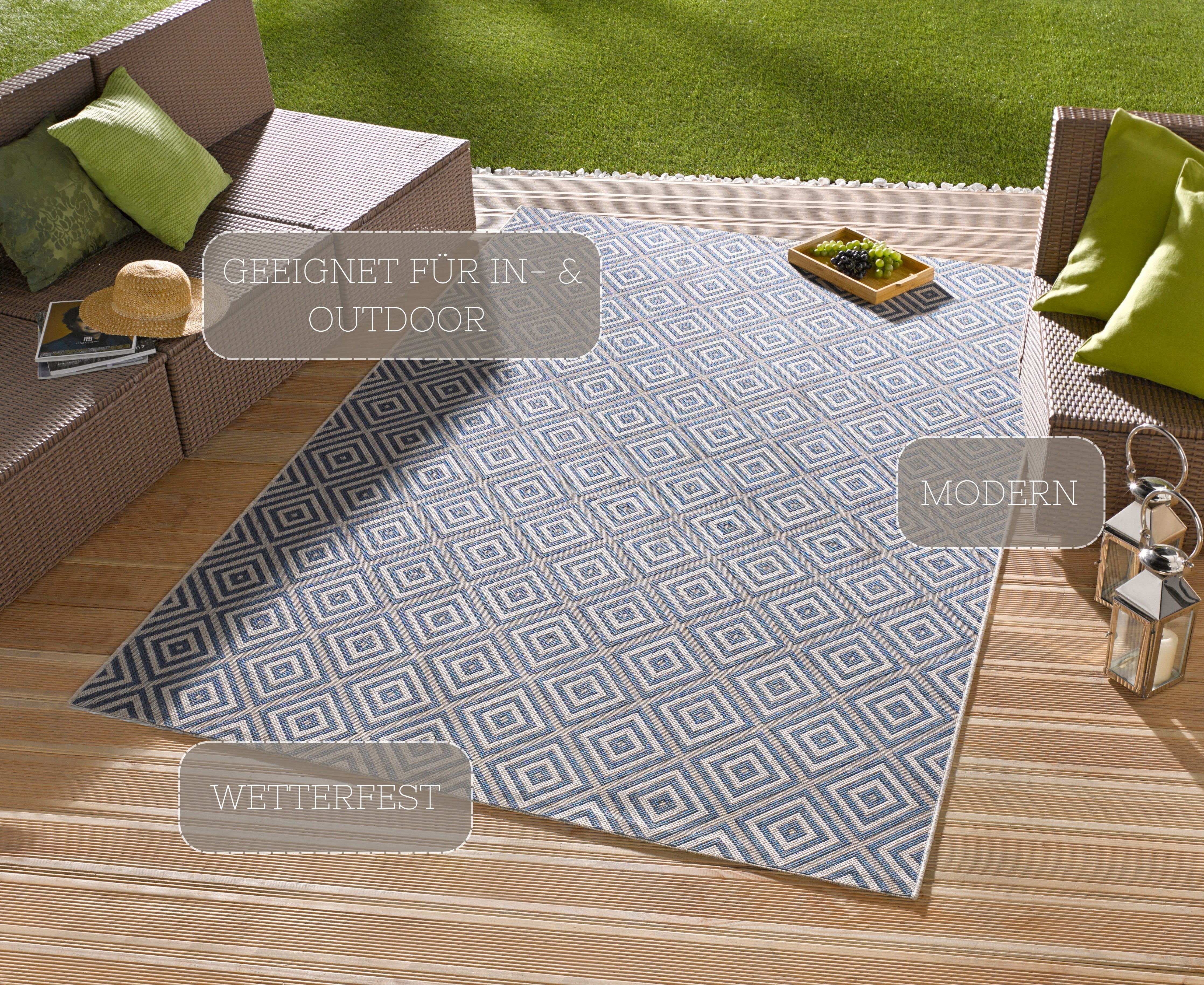 Inde&Udendørs Tæppe - Meadow - 102468 Blå