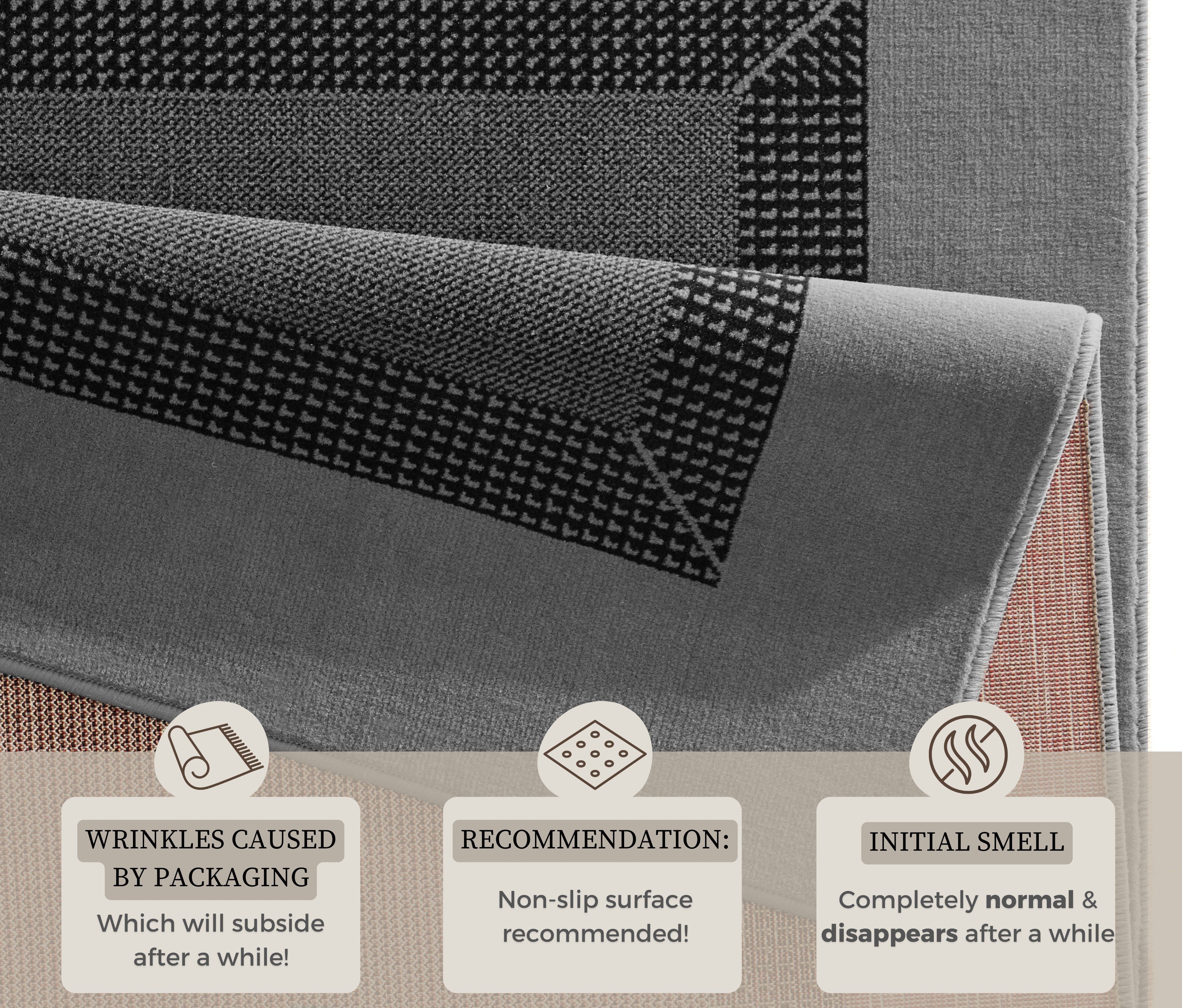 Vær opmærksom på, at nye tæpper kan have en midlertidig lugt ved udpakning, som stammer fra produktionen og indpakningen. Dette er normalt og aftager typisk inden for 1–2 uger efter udpakning, især ved god udluftning. Denne lugt betragtes ikke som en produktfejl.