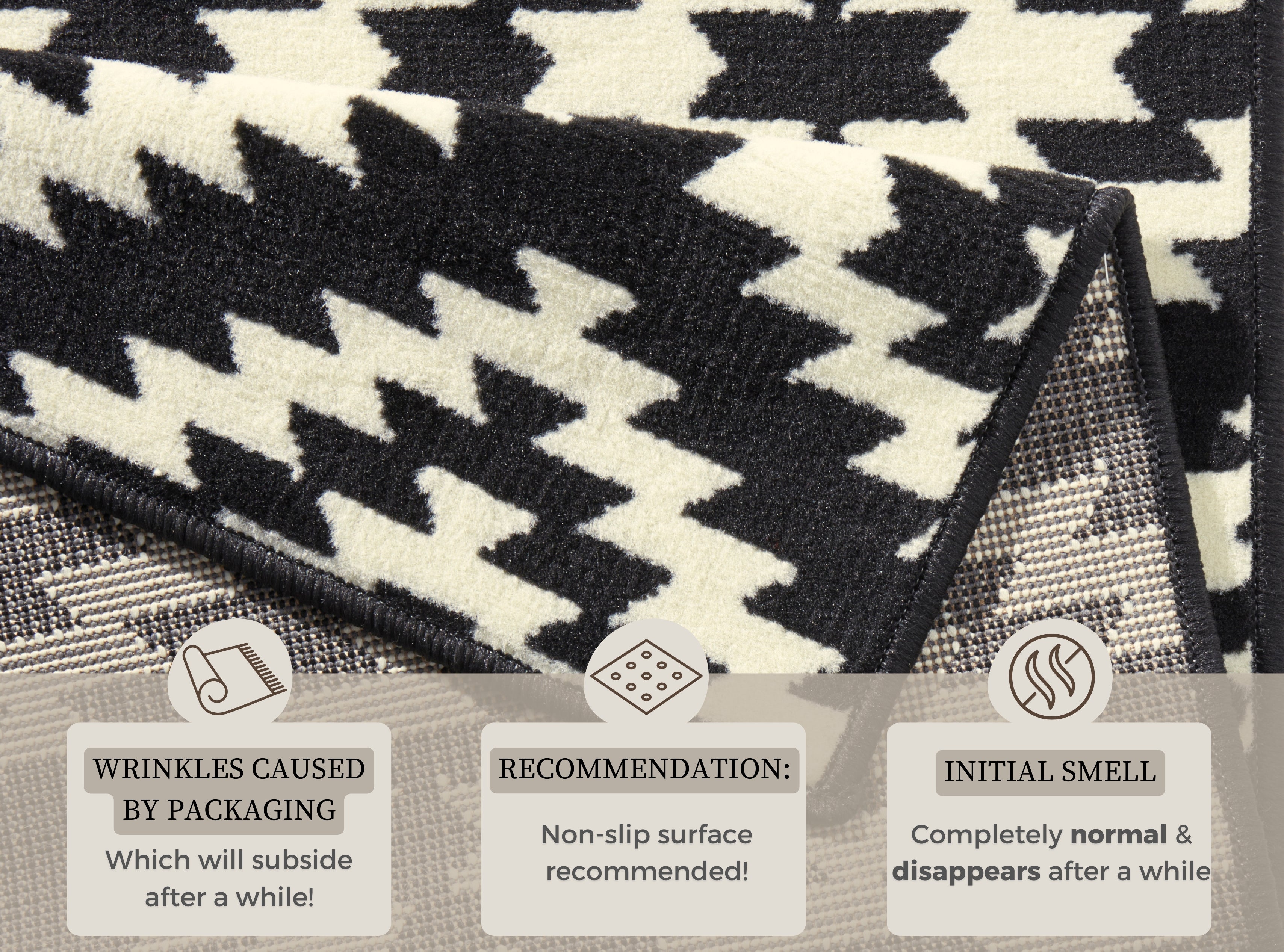 Vær opmærksom på, at nye tæpper kan have en midlertidig lugt ved udpakning, som stammer fra produktionen og indpakningen. Dette er normalt og aftager typisk inden for 1–2 uger efter udpakning, især ved god udluftning. Denne lugt betragtes ikke som en produktfejl.