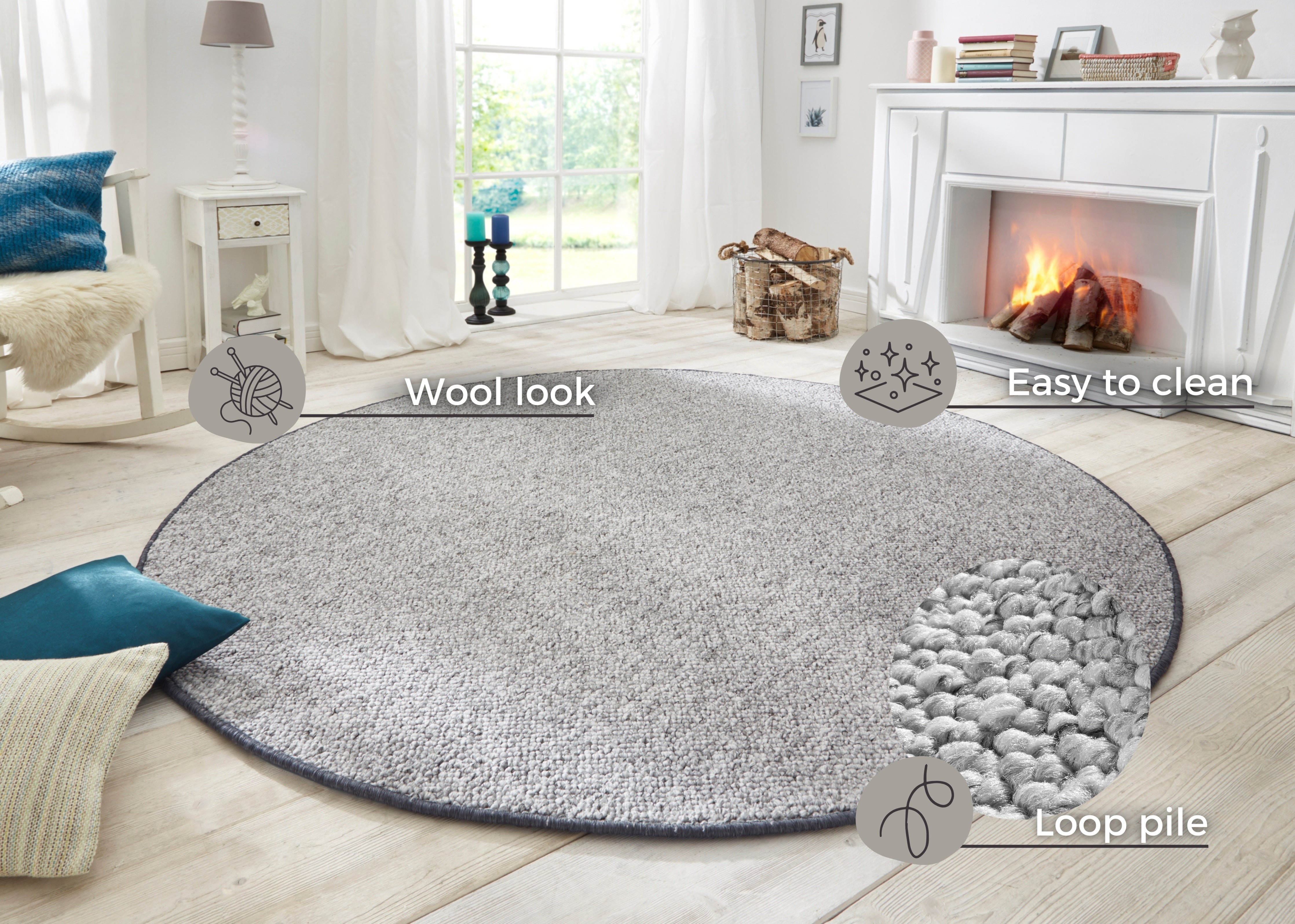 Skab en hyggelig og stilren atmosfære i dit hjem med Wolly-tæppet fra Hanse Home. Dette smukke, runde tæppe i en elegant grå farve er fremstillet af 100% polypropylen, et slidstærkt og letplejeligt materiale, der giver et blødt og behageligt underlag.
