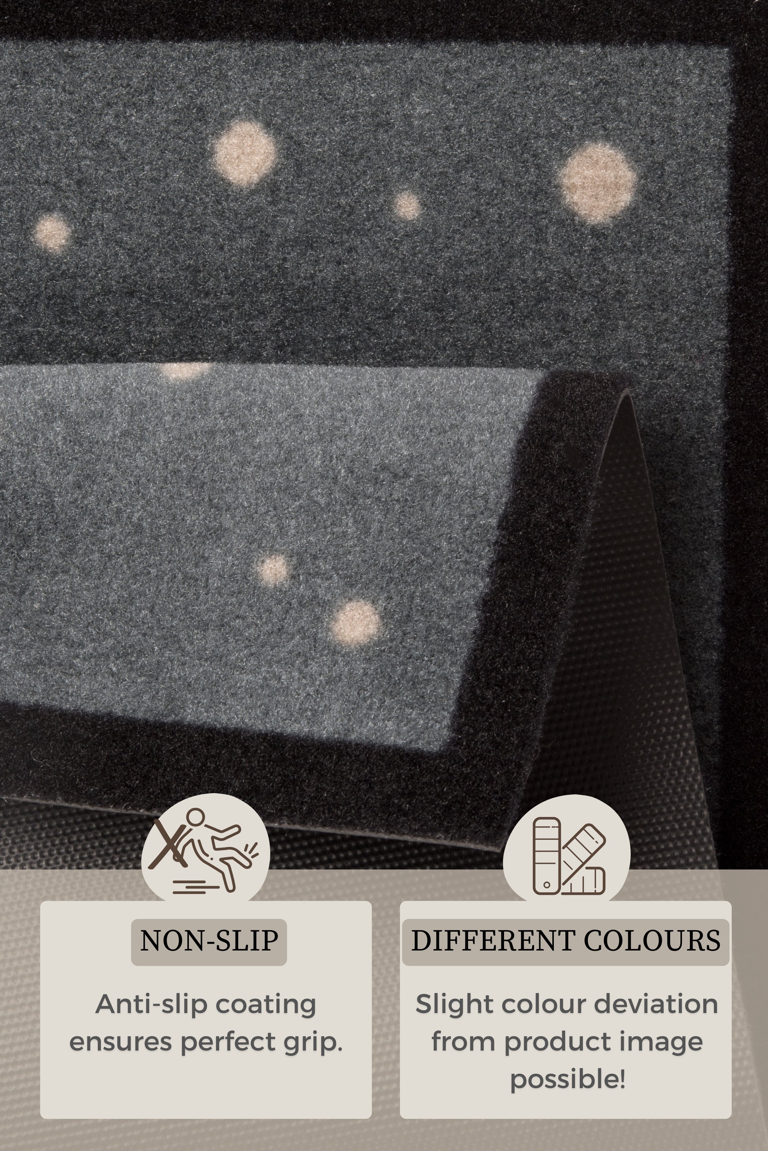 Måtten Printy er ikke kun smuk, den er også praktisk. Den skridsikre underside i nitrilgummi sørger for, at måtten bliver liggende, hvor den skal, og forhindrer uheld. Den absorberer desuden fugt effektivt, hvilket er ideelt til områder med meget trafik. Måtten er nem at rengøre og kan vaskes i hånden ved 30 grader. Den robuste konstruktion sikrer lang holdbarhed, så du kan nyde din Printy måtte i mange år.