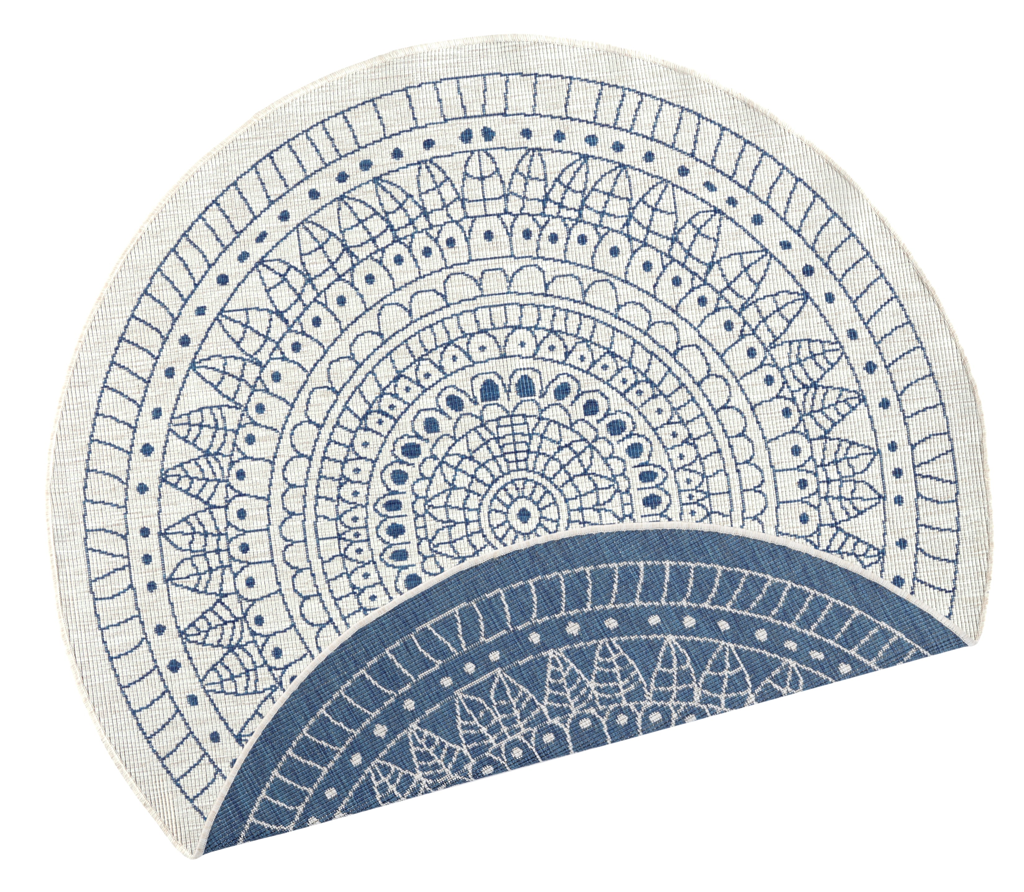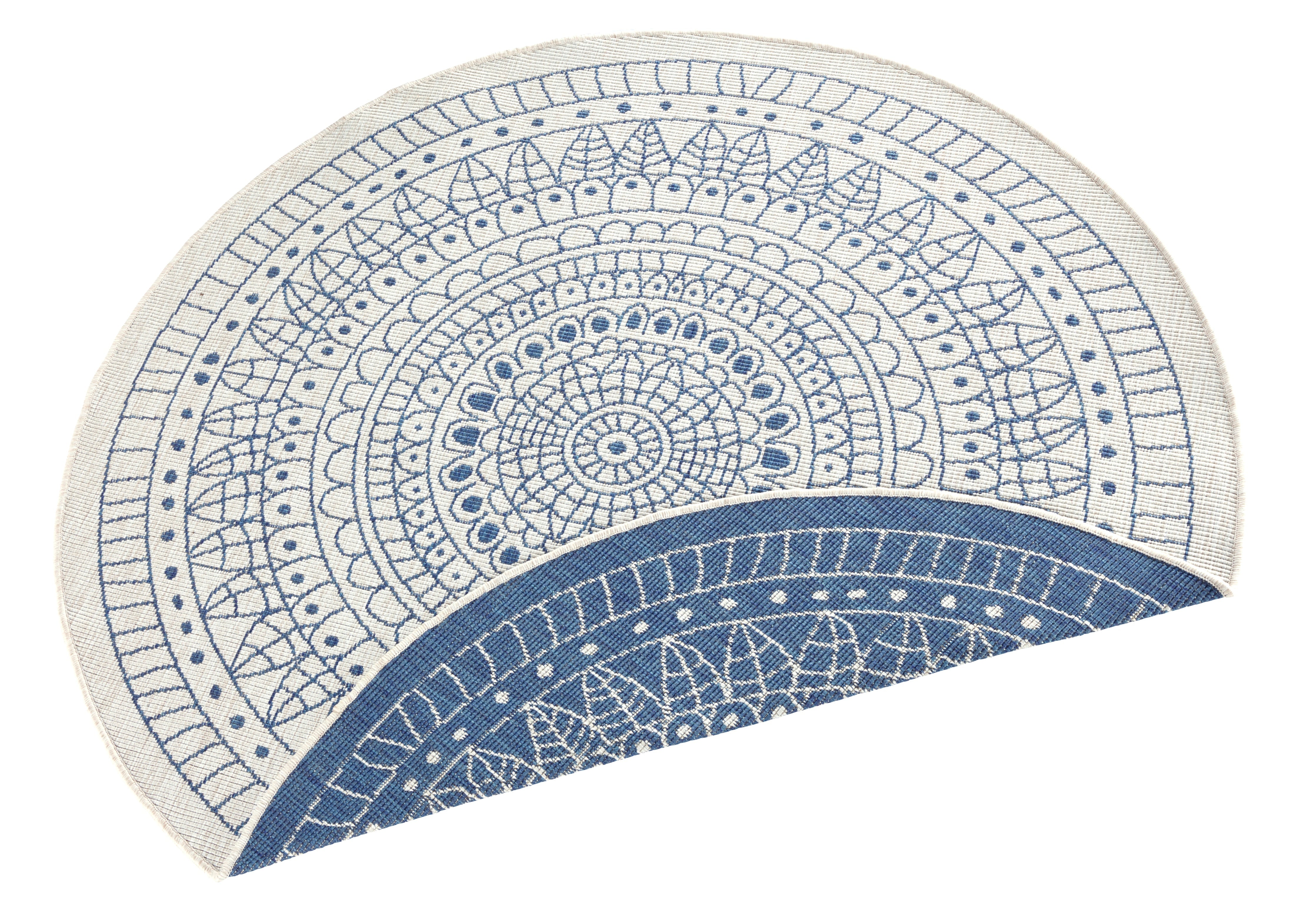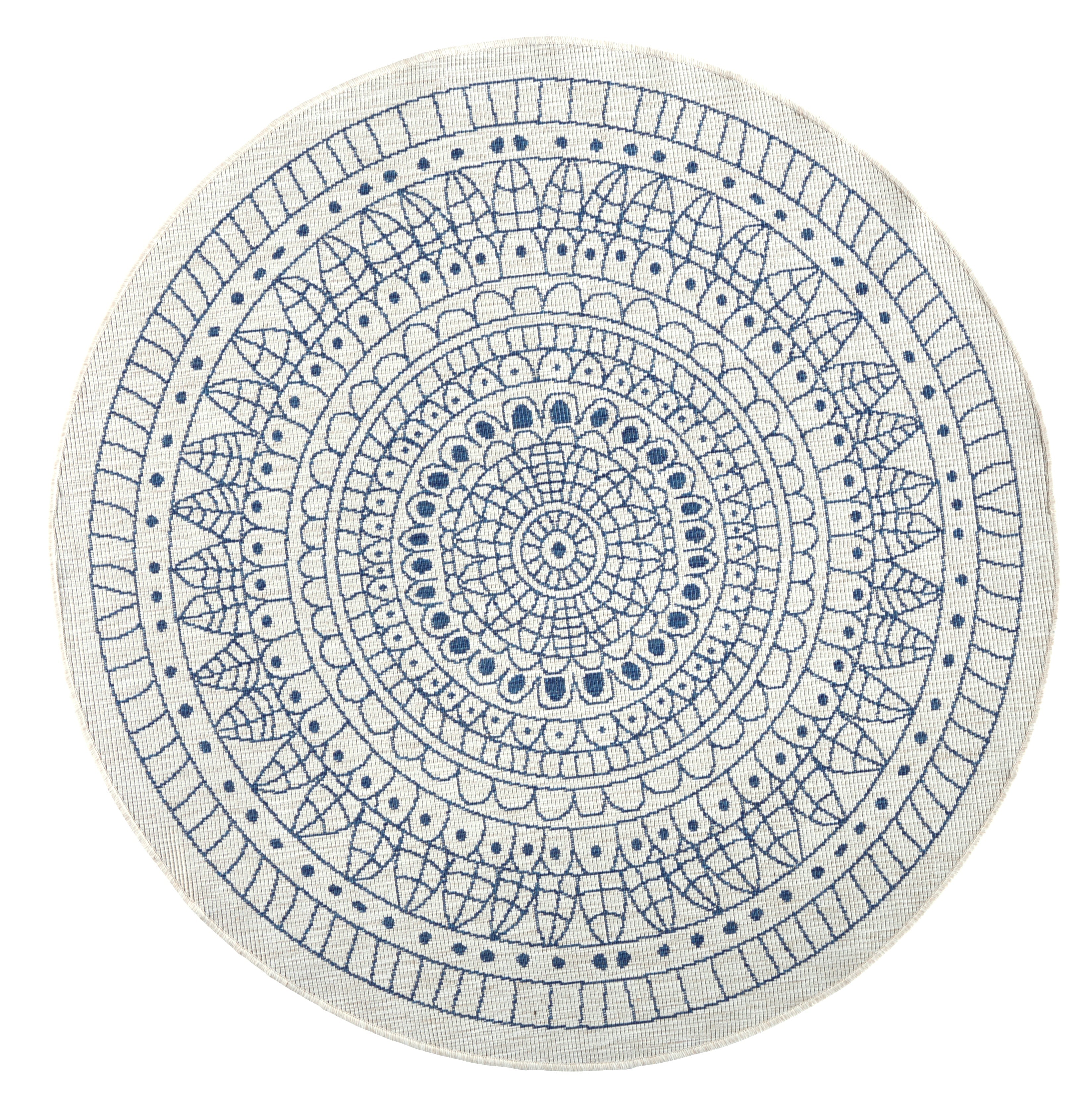 Forkæl dit hjem med det smukke og alsidige Twin tæppe i blå/creme. Dette runde tæppe, fremstillet af 100% slidstærkt polypropylen, tilføjer et strejf af elegance og hygge til ethvert rum, både inde og ude.