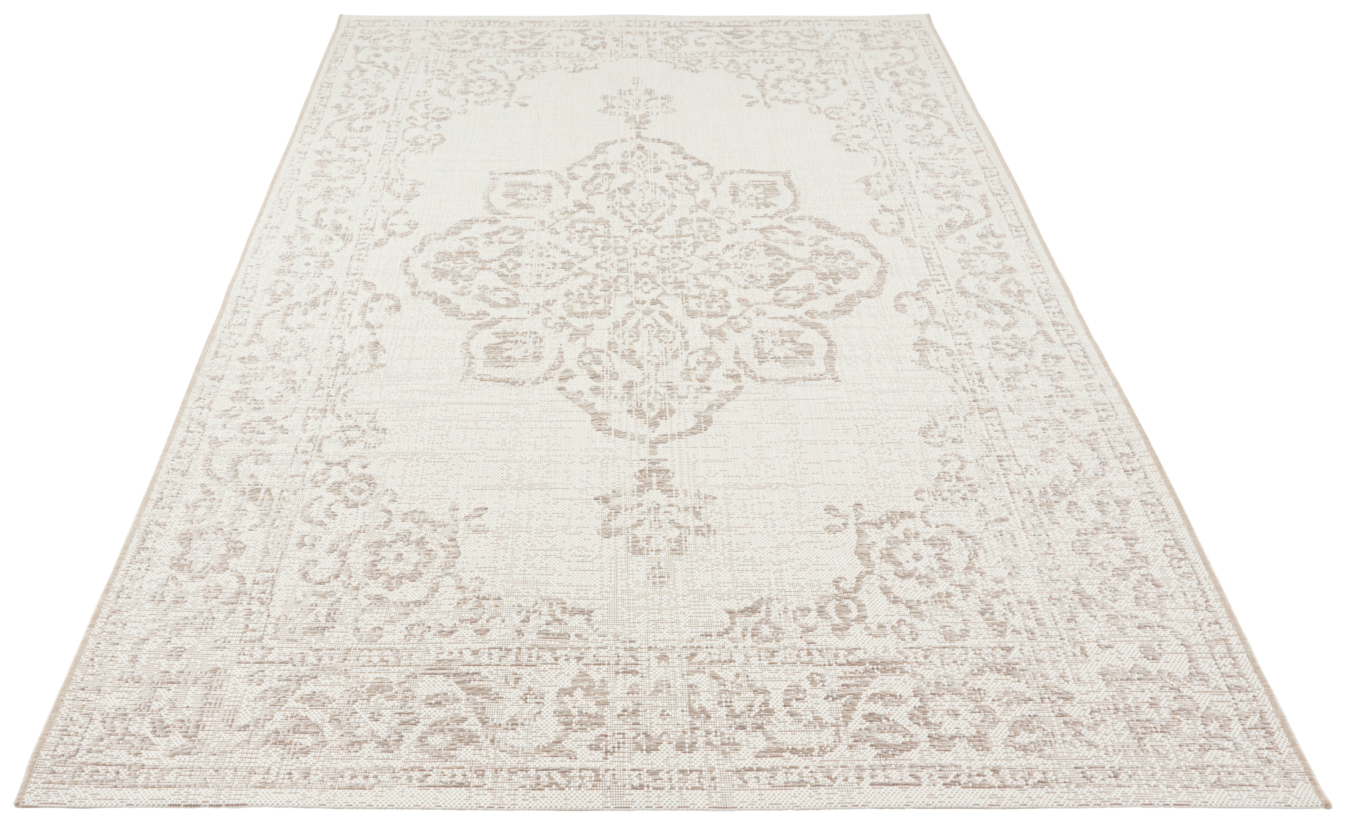 Forkæl dit hjem med det smukke og alsidige "Beach - 103854 Creme/Beige" tæppe fra Hanse Home. Vævet i 100% slidstærkt polypropylen, tilføjer dette tæppe et strejf af afslappet elegance til ethvert rum, både inde og ude, med sit orientalsk inspirerede vintage-look.