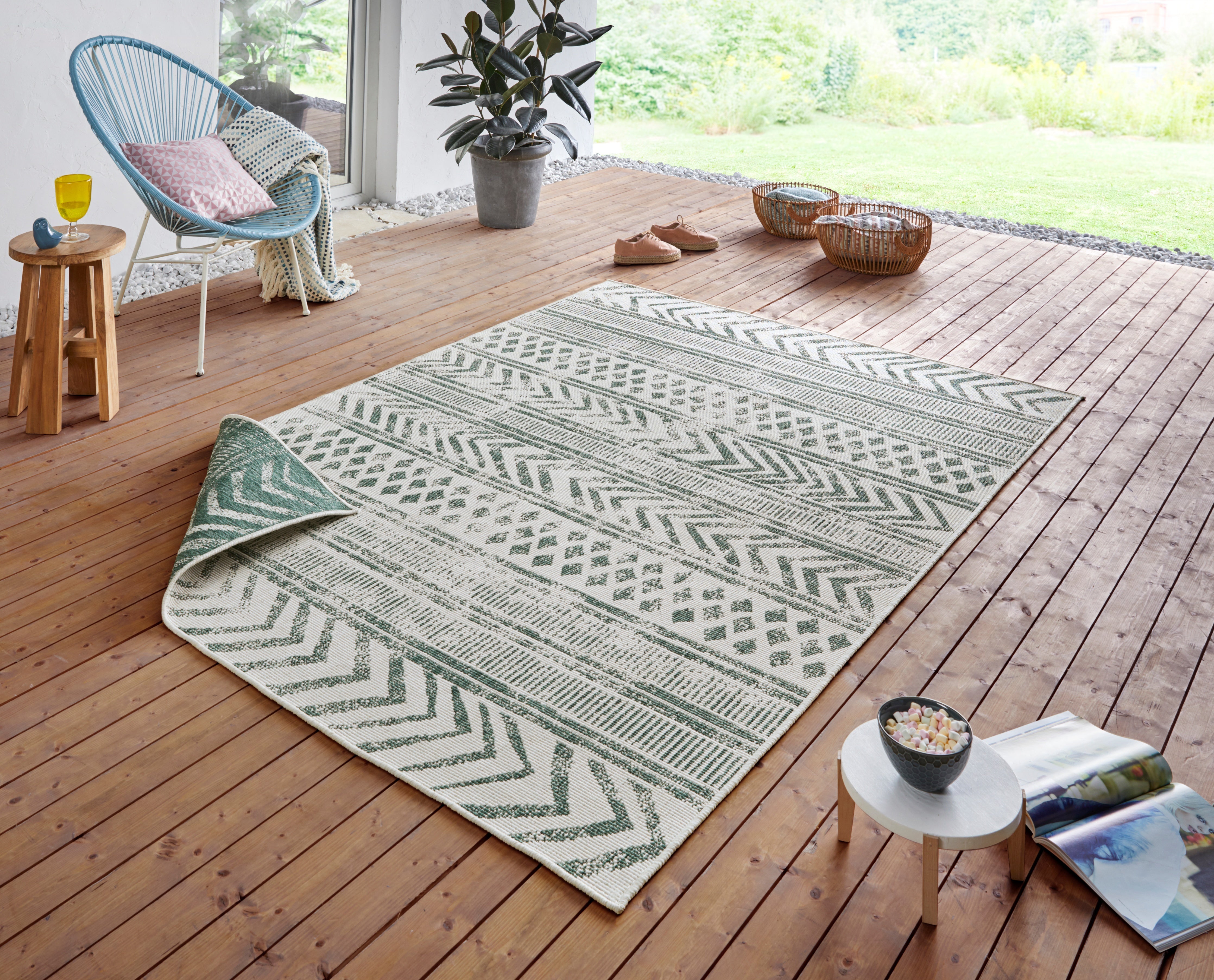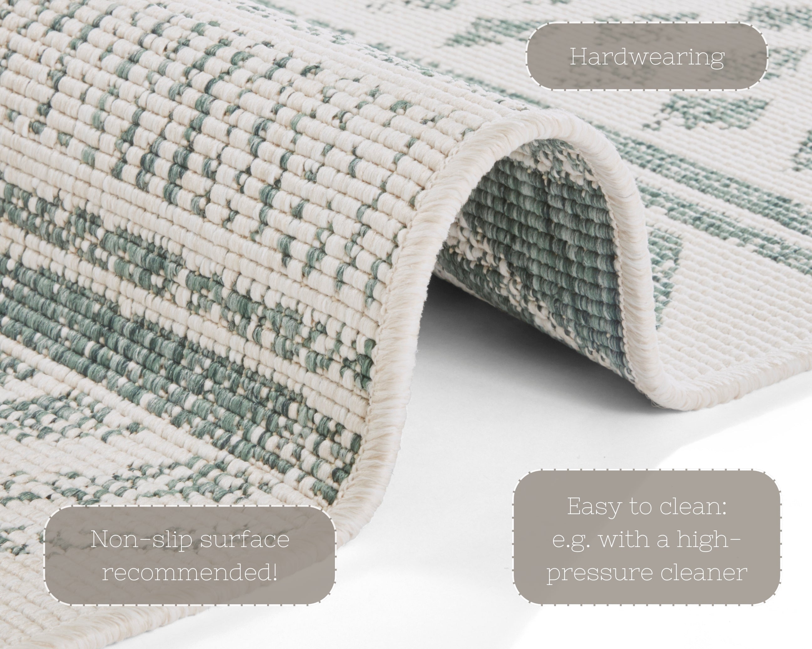 Forkæl dit hjem med det smukke og alsidige Twin Supreme - 103861 tæppe i en frisk grøn/creme farvekombination. Vævet i 100% slidstærkt polypropylen, tilføjer dette tæppe et strejf af moderne boho-stil til ethvert rum, både inde og ude.