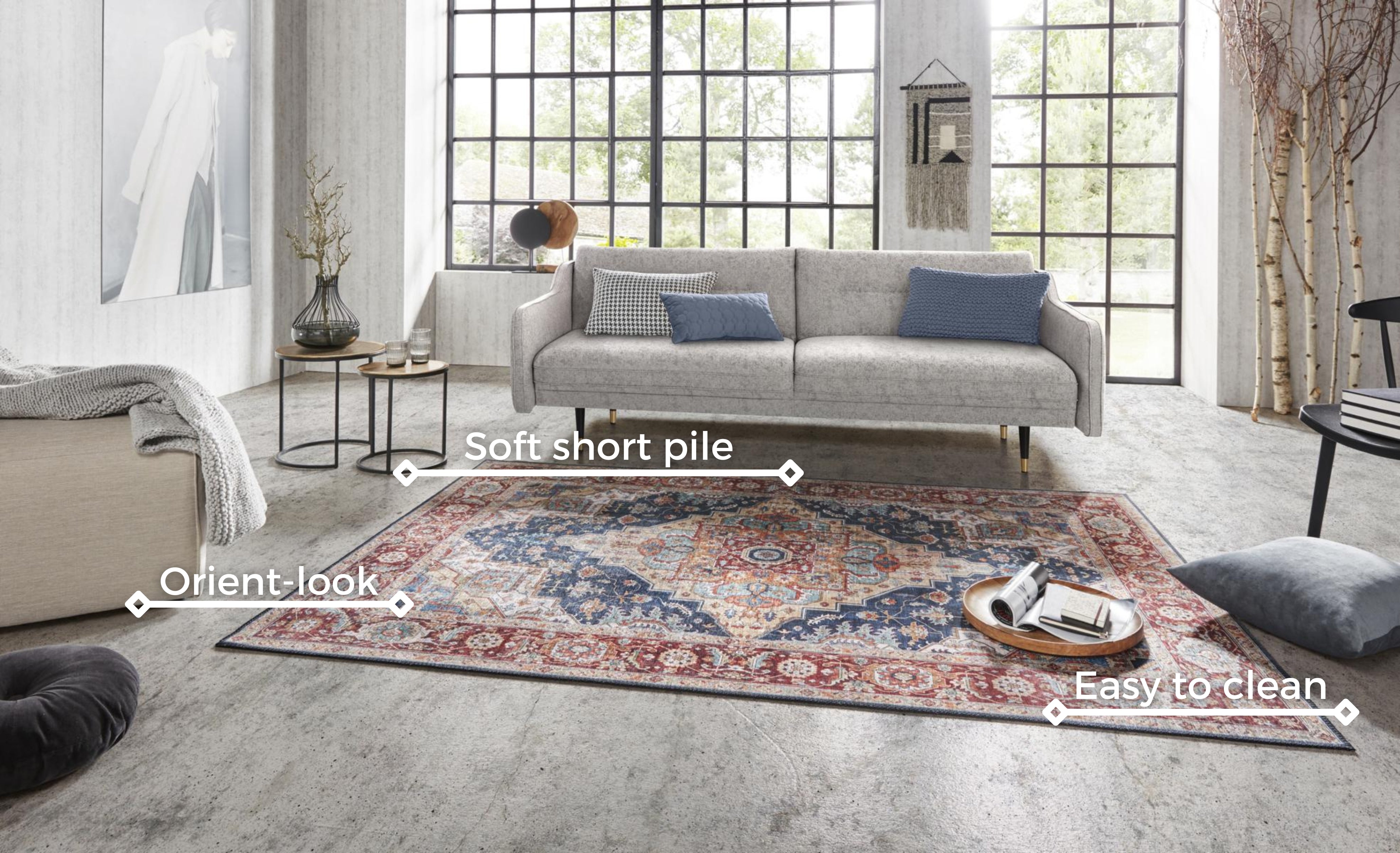 Asmar-tæppets fladvævede design er ikke kun æstetisk tiltalende, men også utrolig praktisk. Den bløde overflade er let at vedligeholde, og tæppet er egnet til alle gulvtyper, inklusive gulvvarme. Bagsiden i bomuld giver ekstra stabilitet og komfort, mens den sikrer, at tæppet ligger godt fast og ikke glider. Den tætte vævning bidrager til tæppets holdbarhed og sikrer, at det bevarer sin skønhed i mange år.