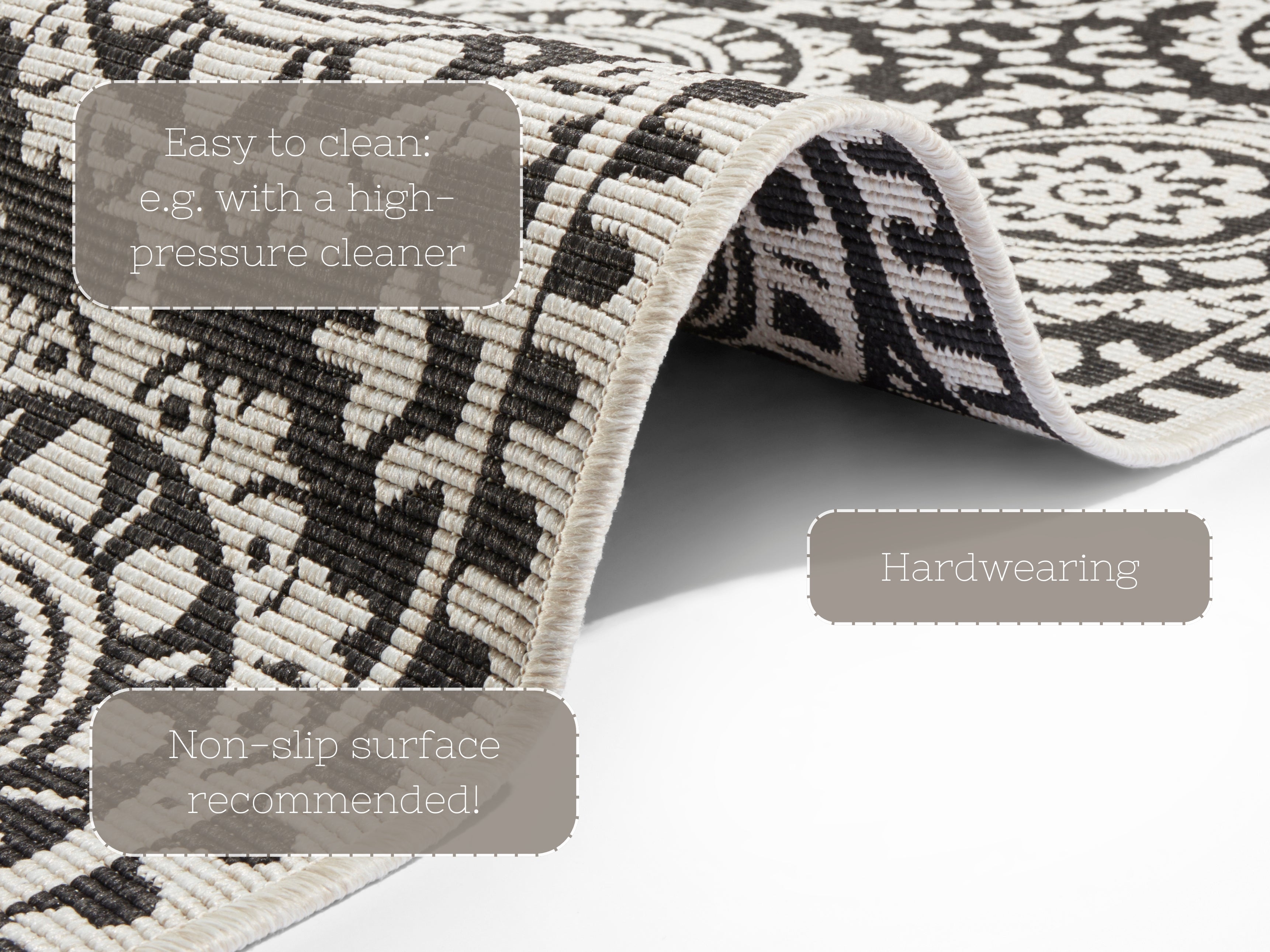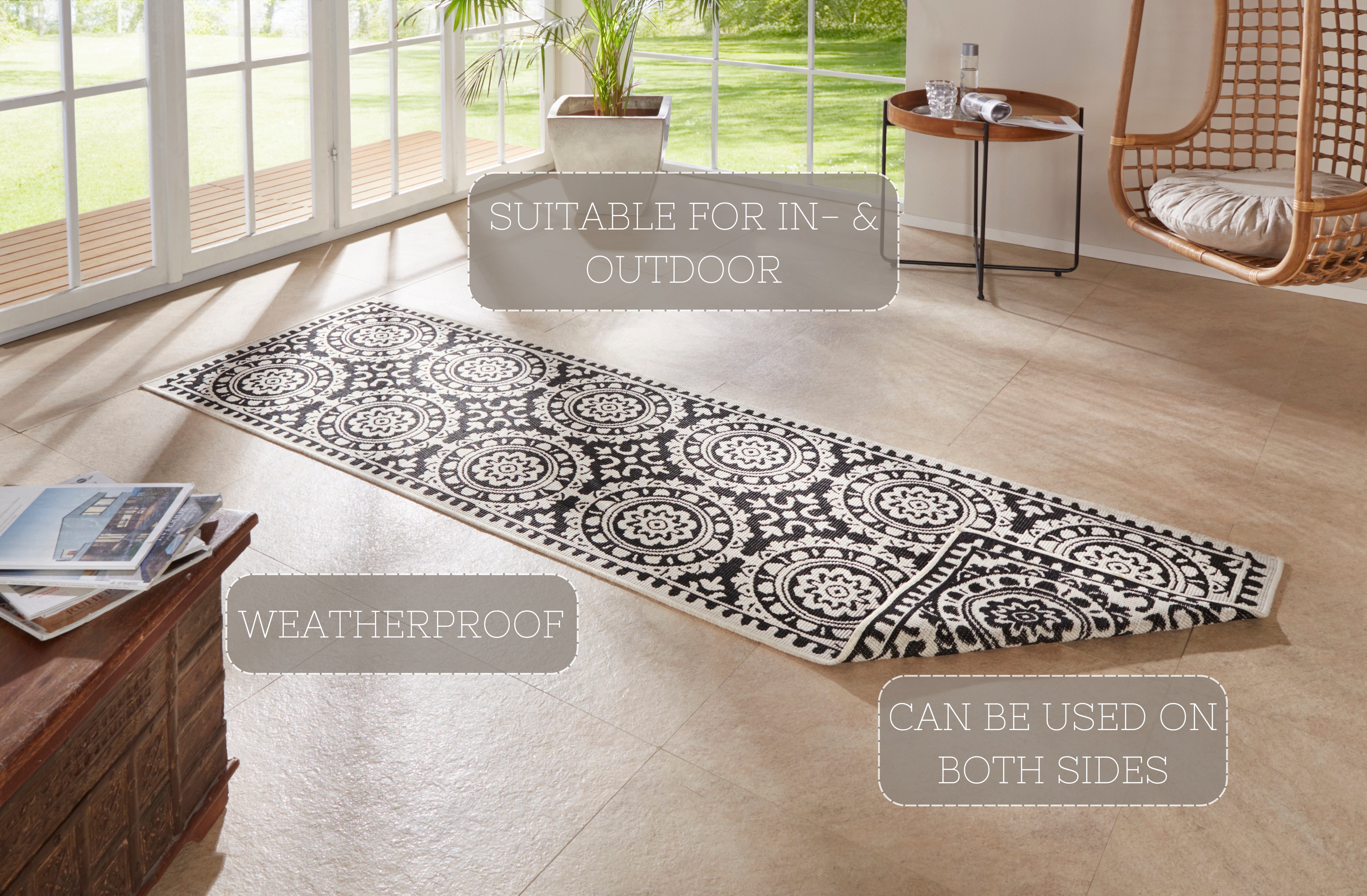 Giv dit hjem et stilfuldt løft med Twin Supreme - 104129 Sort/Creme løberen fra Hanse Home. Det smukke sort/creme farvespil og det slidstærke polypropylen-materiale skaber en moderne og indbydende atmosfære, uanset om tæppet placeres indenfor eller udenfor.