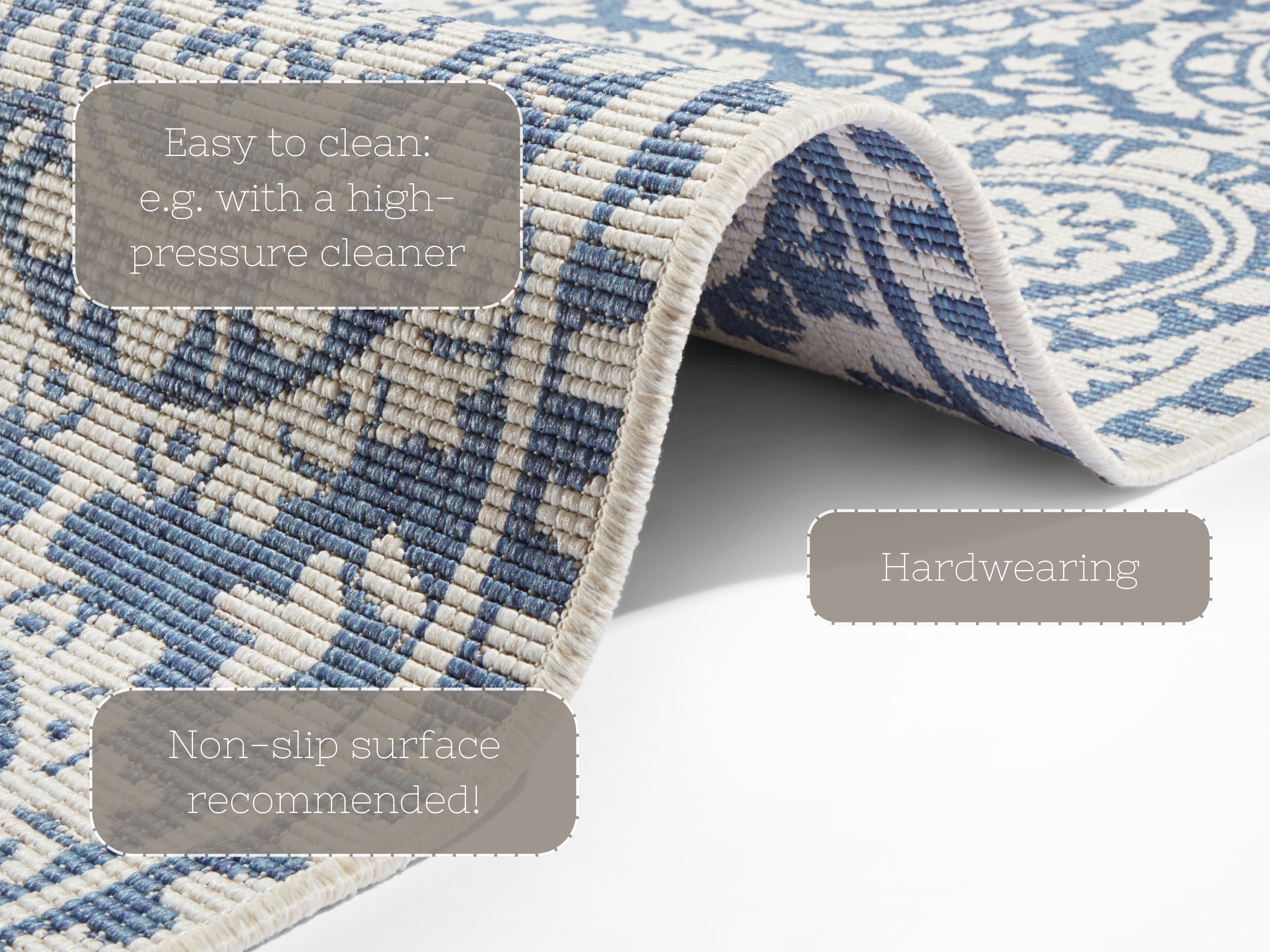 Twin Supreme - 104130 i blå/creme fra Hanse Home er et elegant og praktisk tæppe, der tilføjer et strejf af stil til ethvert rum. Vævet i 100% slidstærkt polypropylen, er dette tæppe både robust og behageligt.