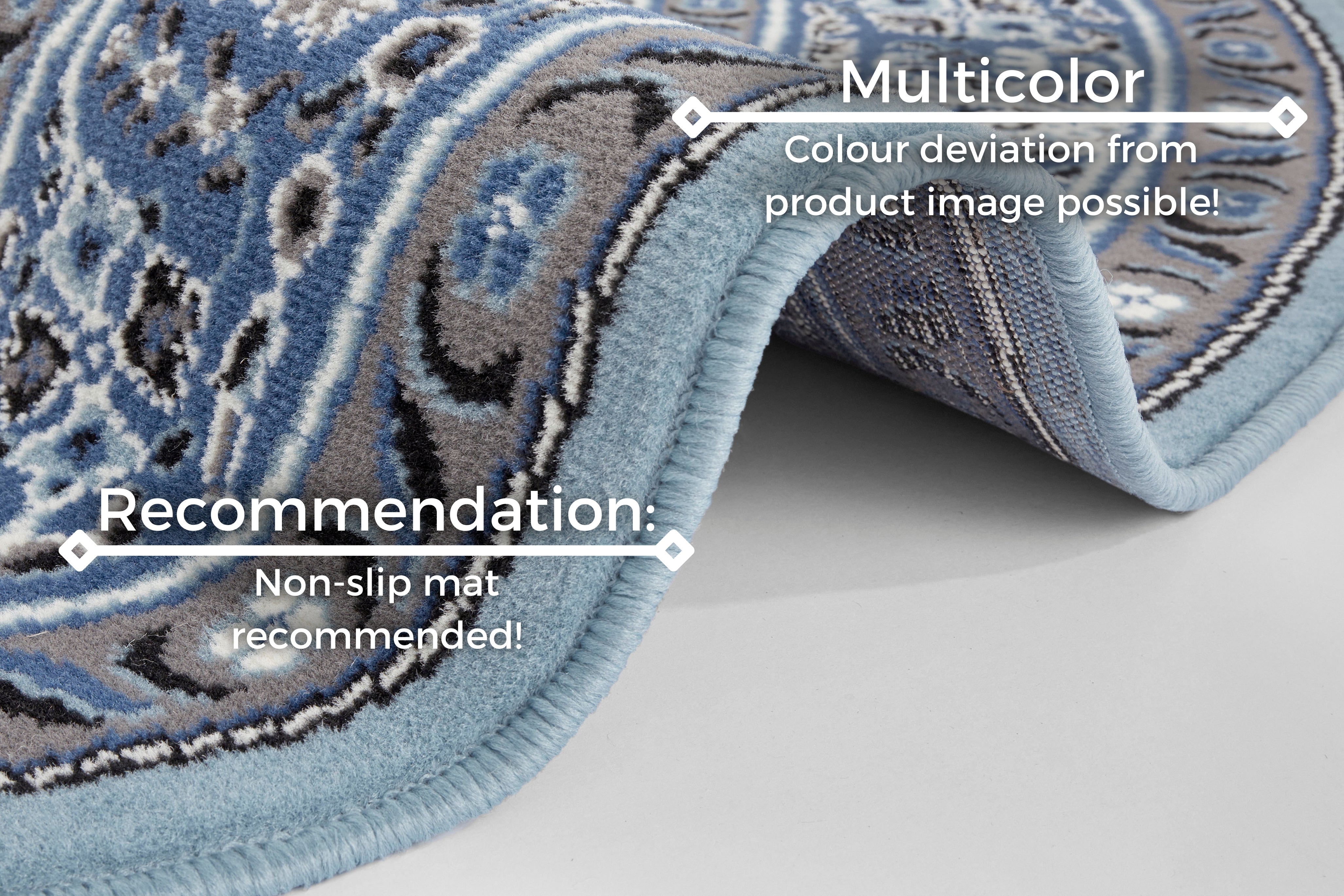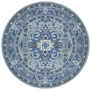 Forkæl dit hjem med et strejf af orientalsk elegance med Mirkan-tæppet i en smuk blå farve. Dette runde tæppe, fremstillet af 100% polypropylen, skaber en varm og indbydende atmosfære i ethvert rum.
